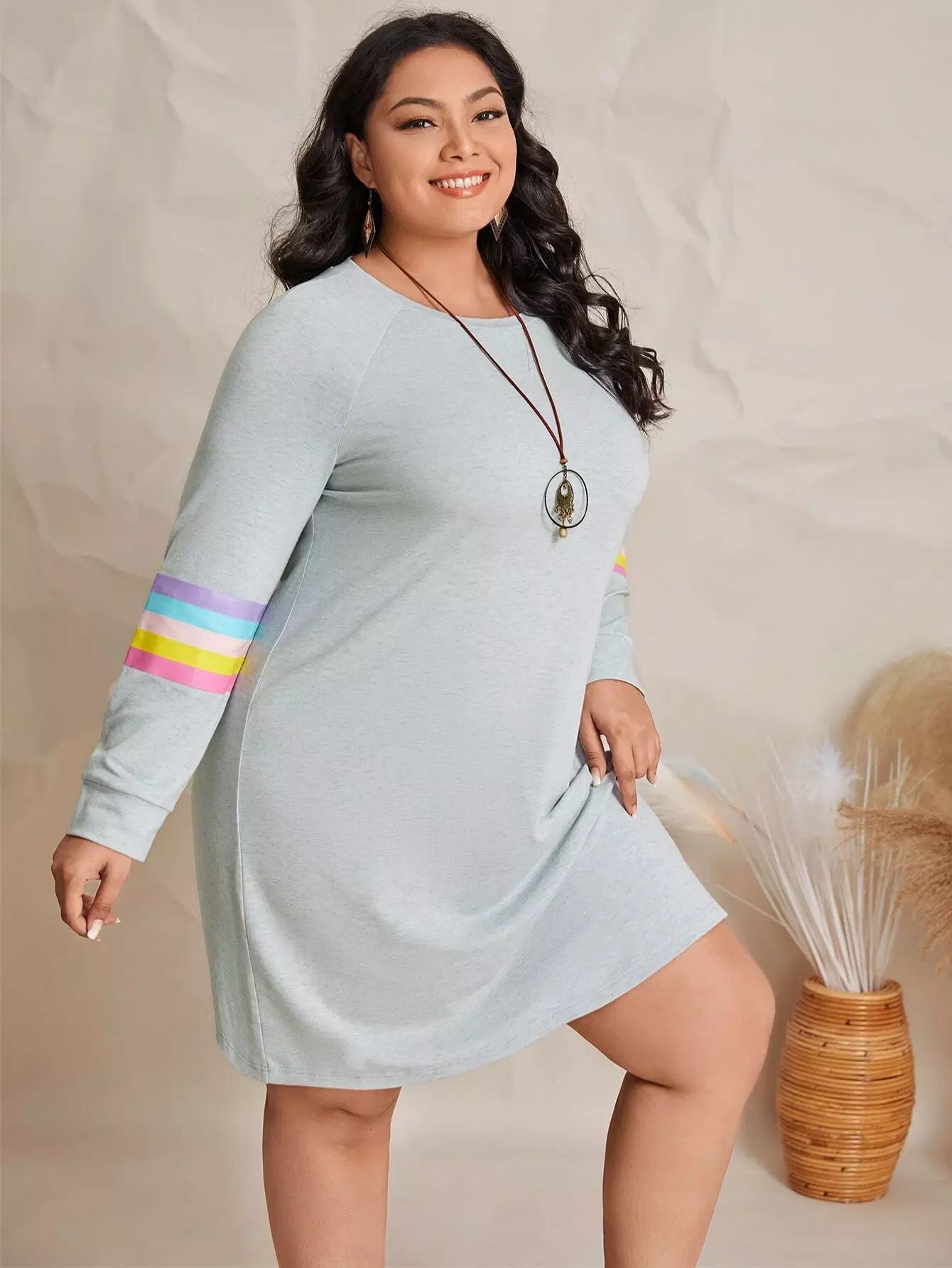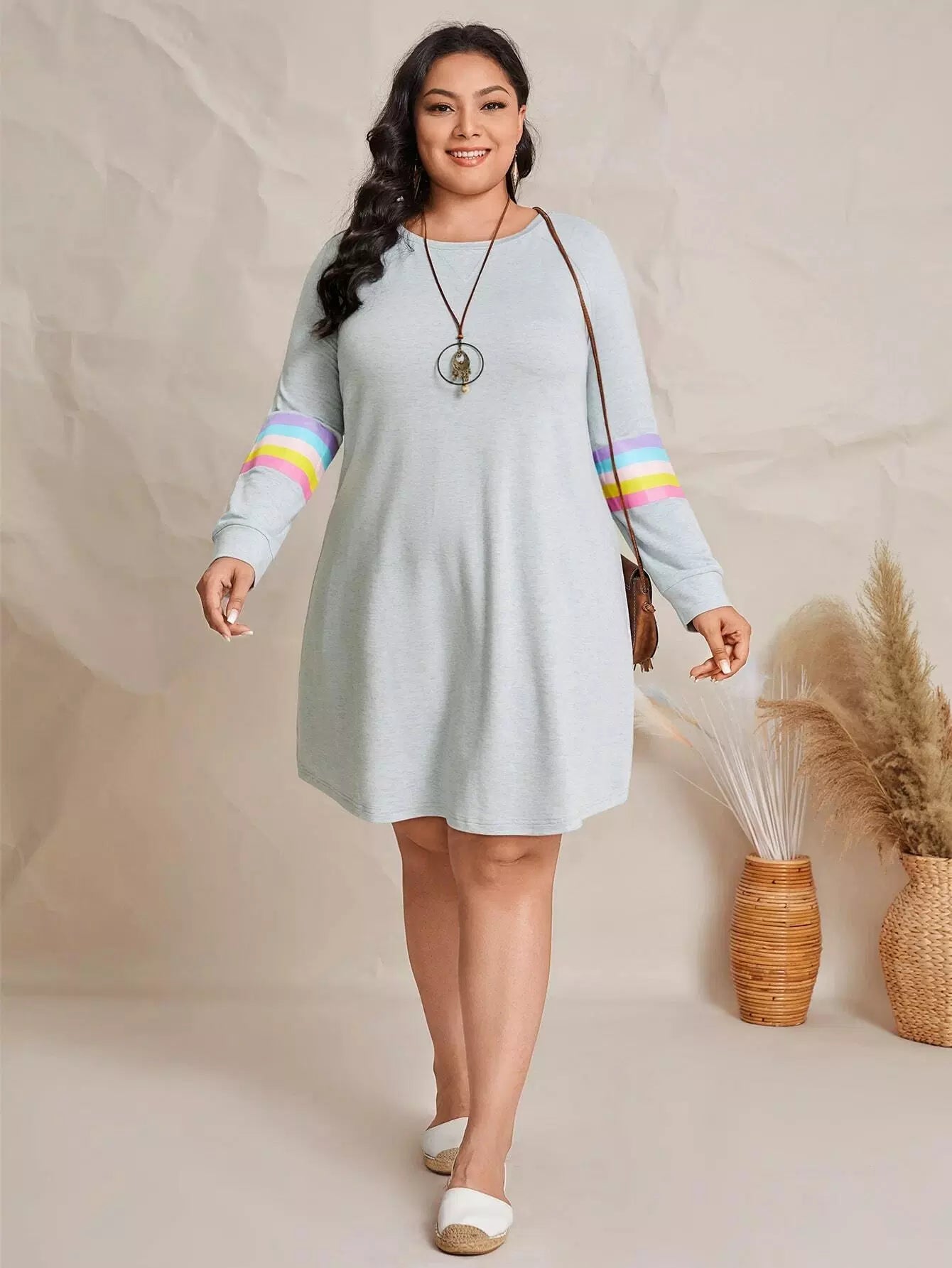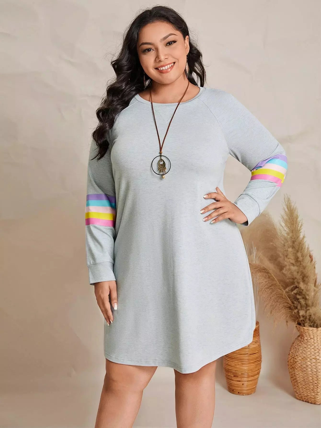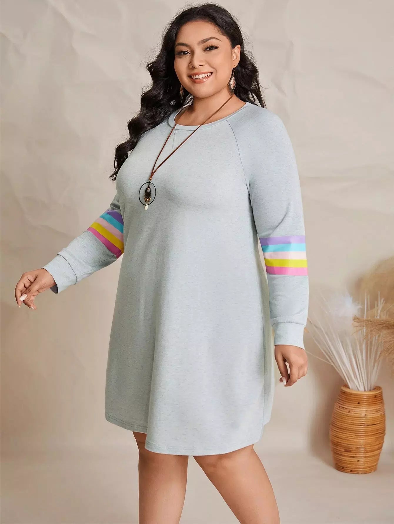 فستان سويت شيرت سويت شيرت مخطط ومزخرف