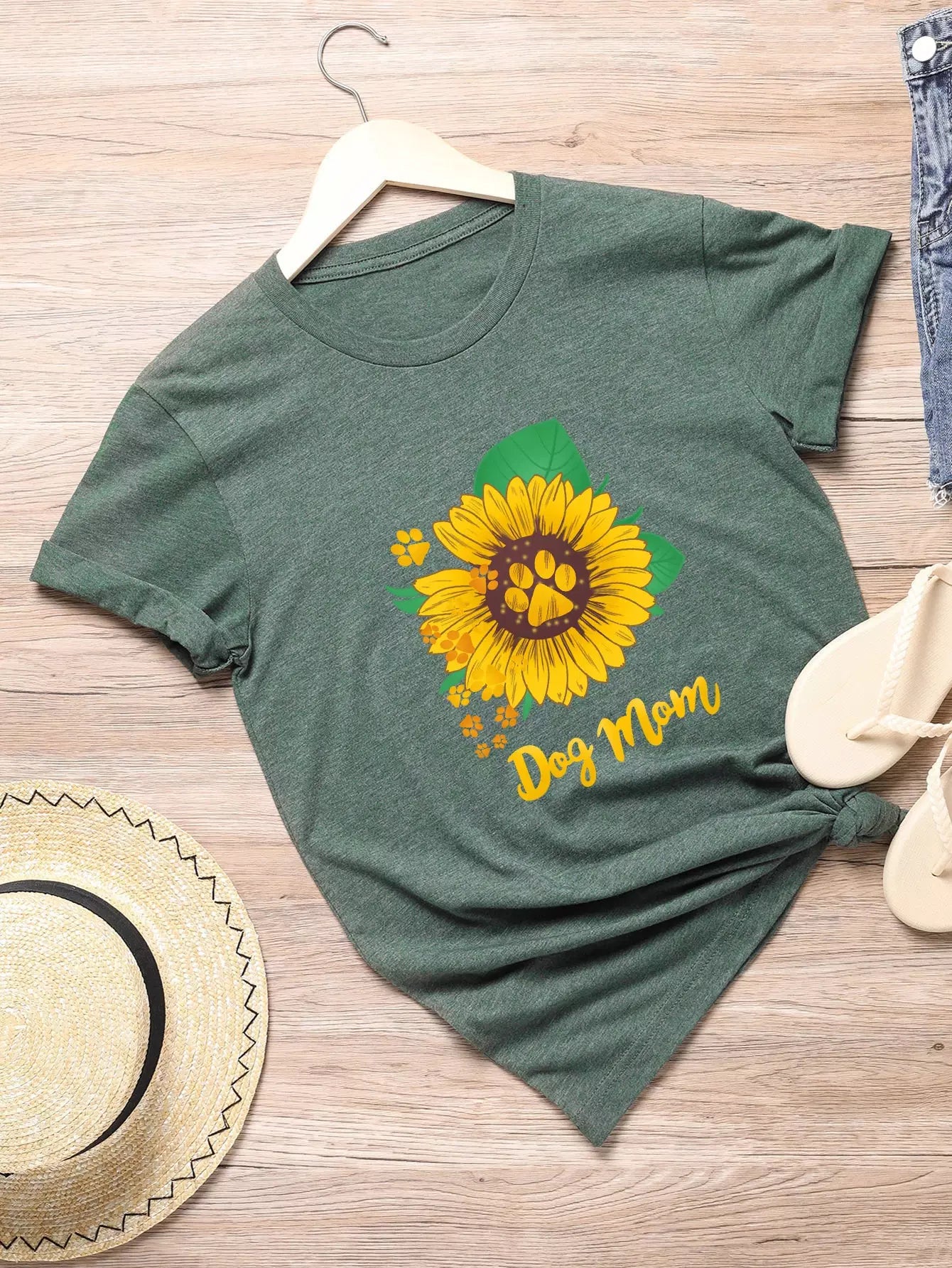 نحيف - مقاس كبير تي شيرت برسومات عباد الشمس والحروف