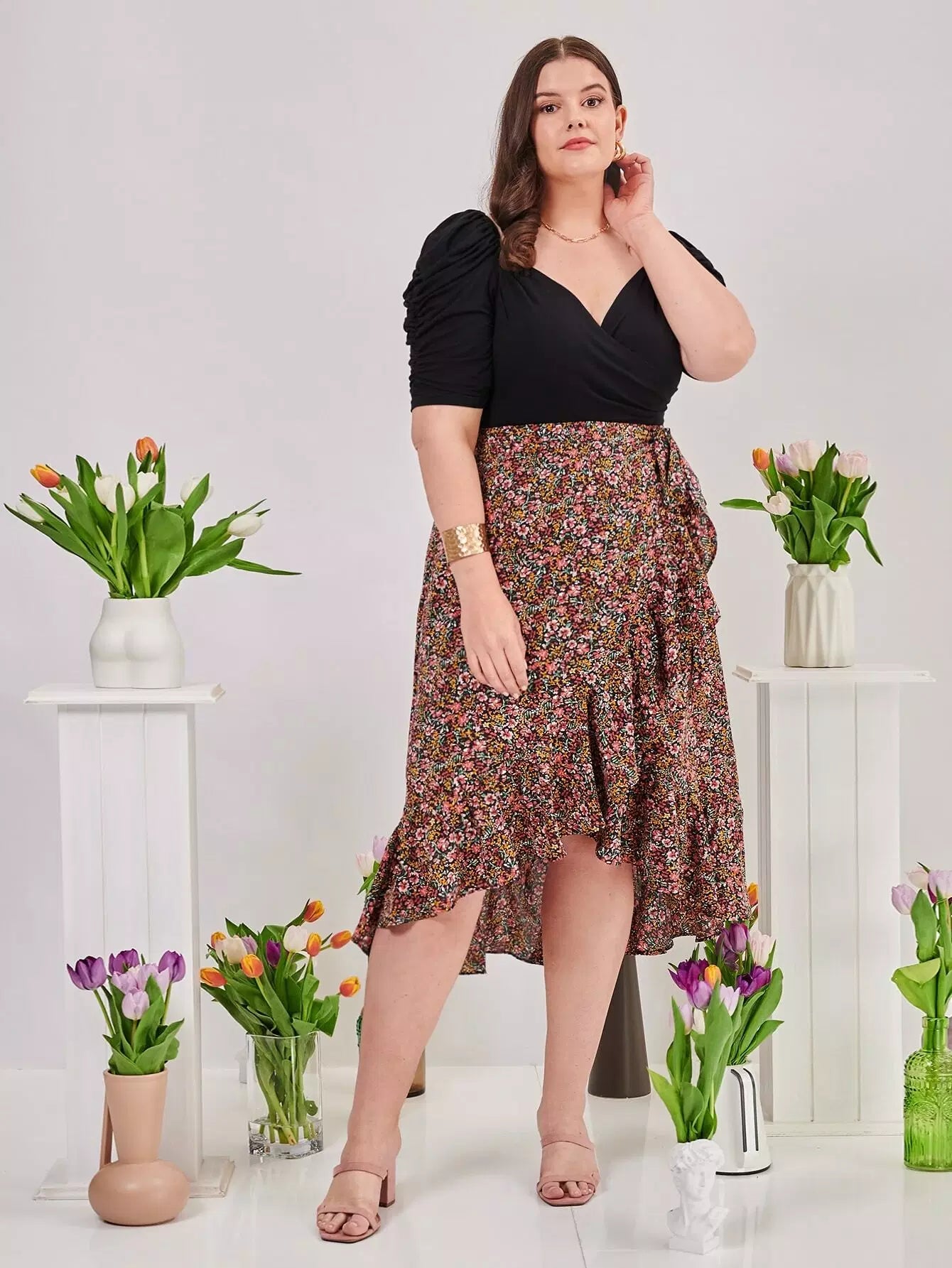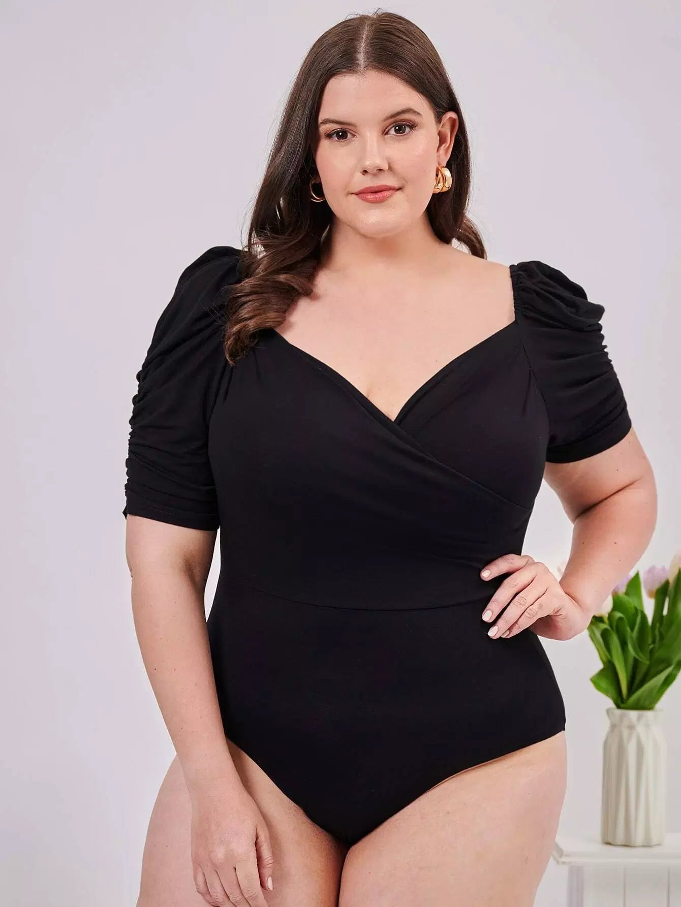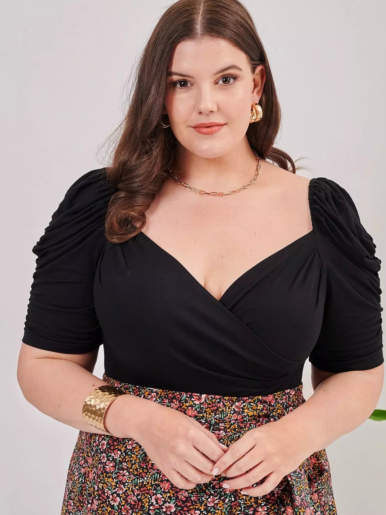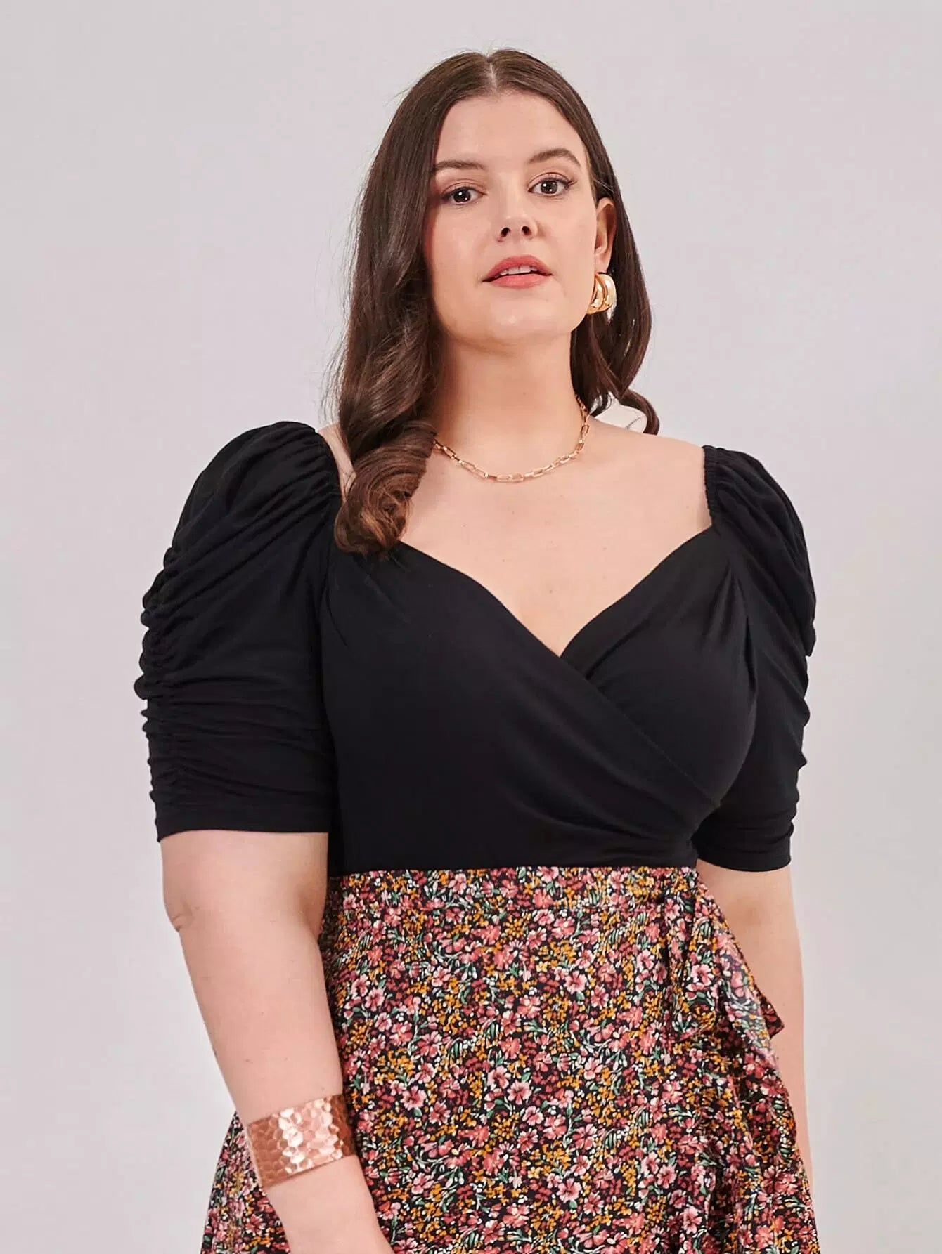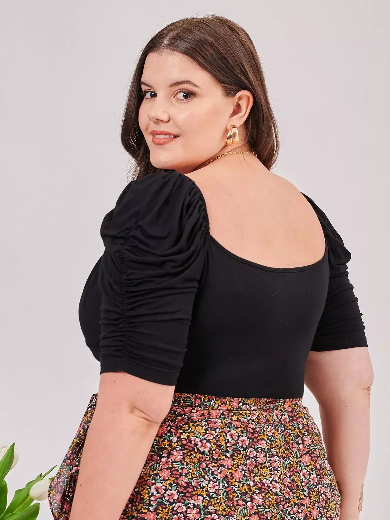 بدلة سادة برقبة كشكش برقبة زائد وأكمام مكشكشة سادة
