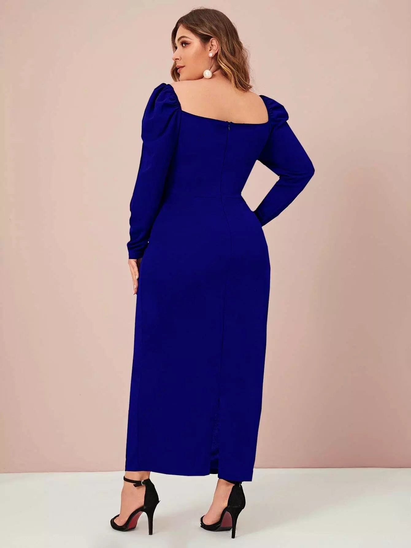 بالإضافة إلى فستان بأكمام طويلة ورقبة على شكل قلب بدون حزام