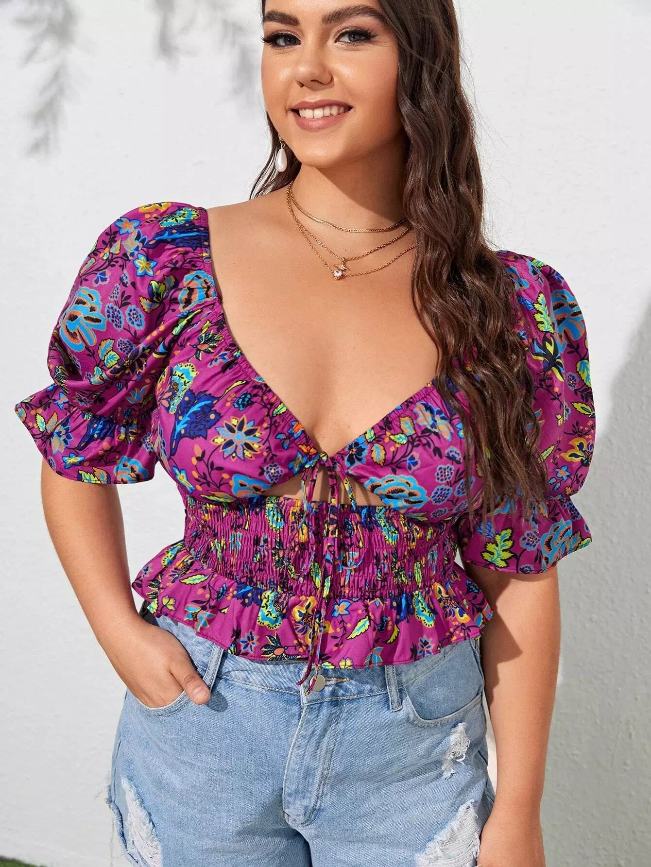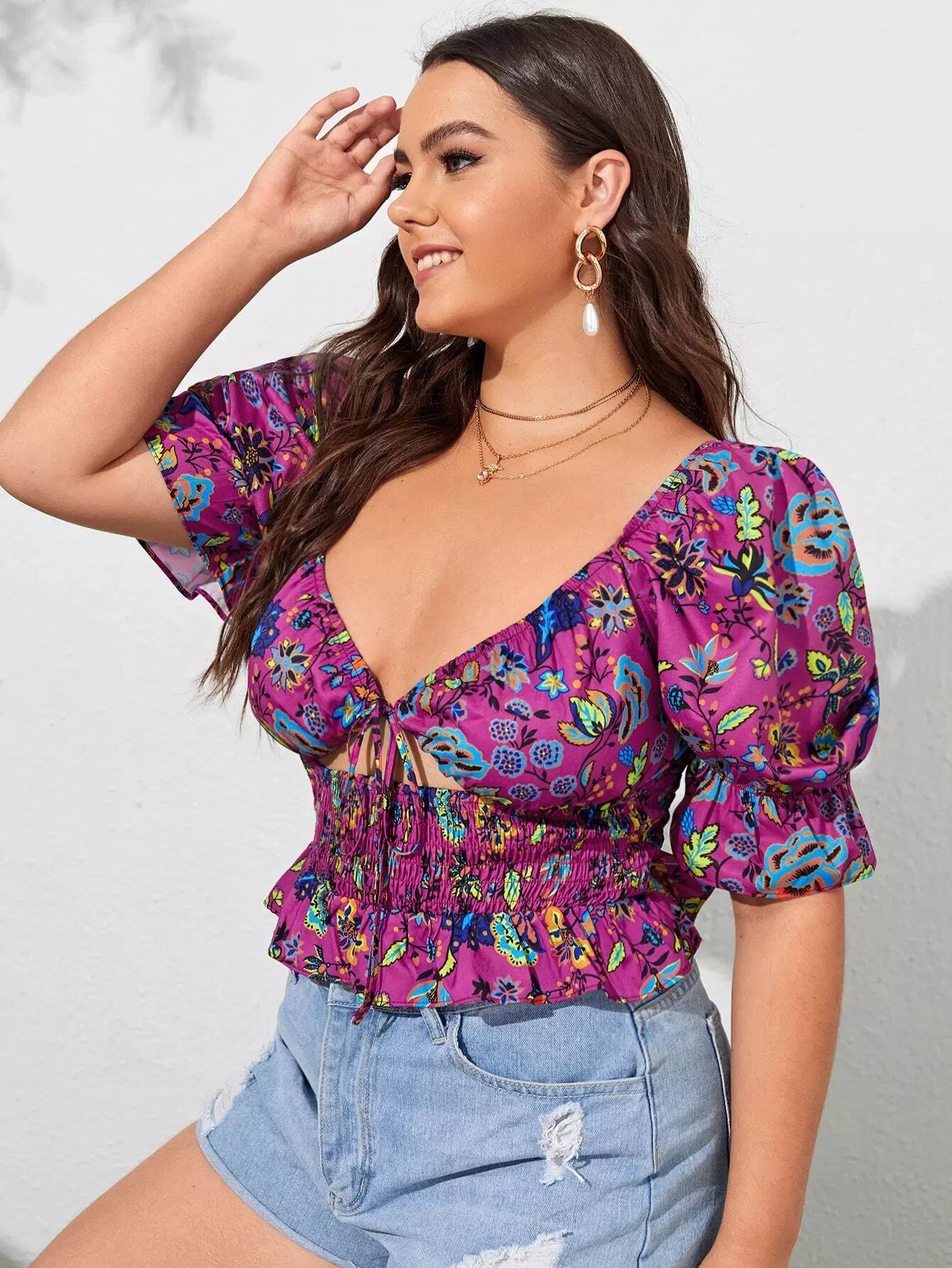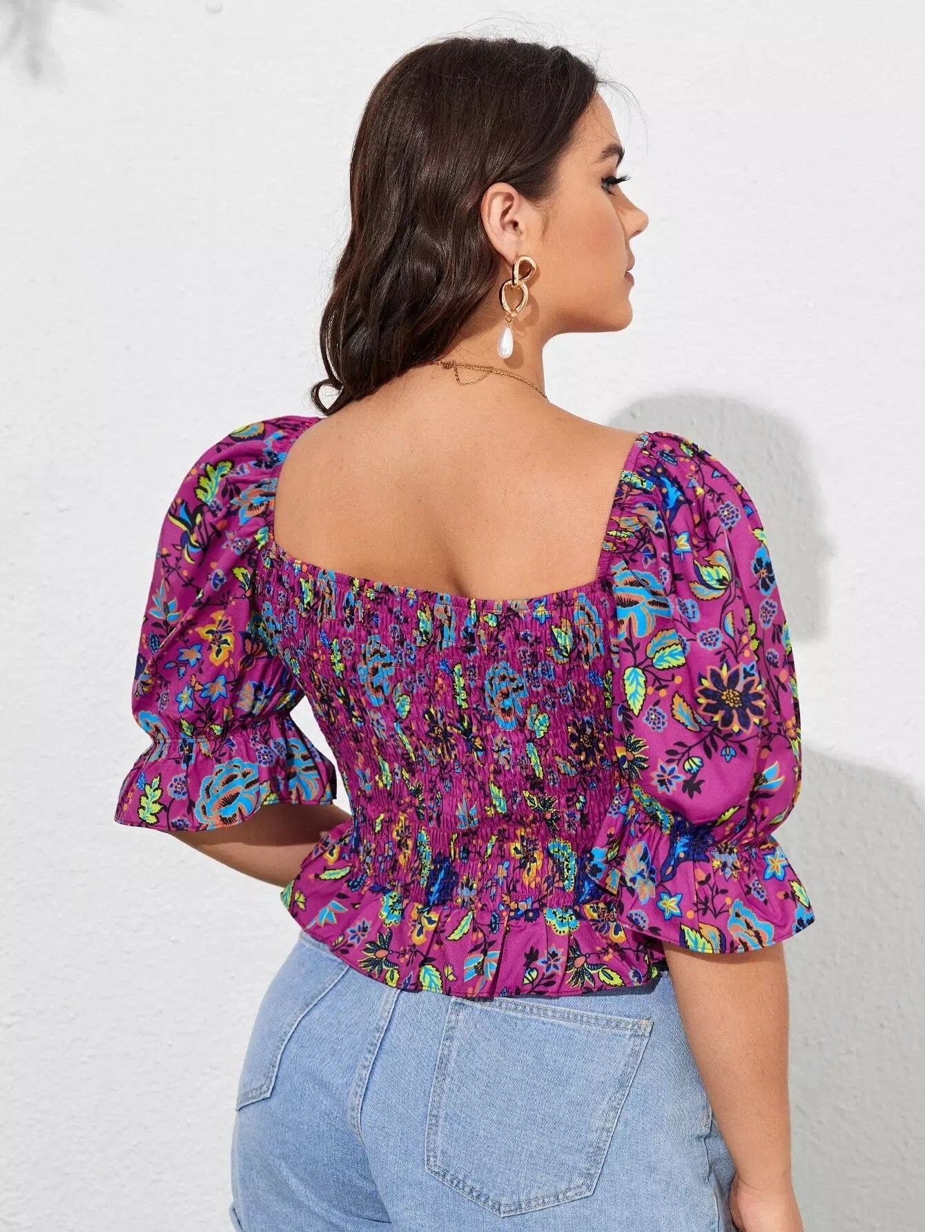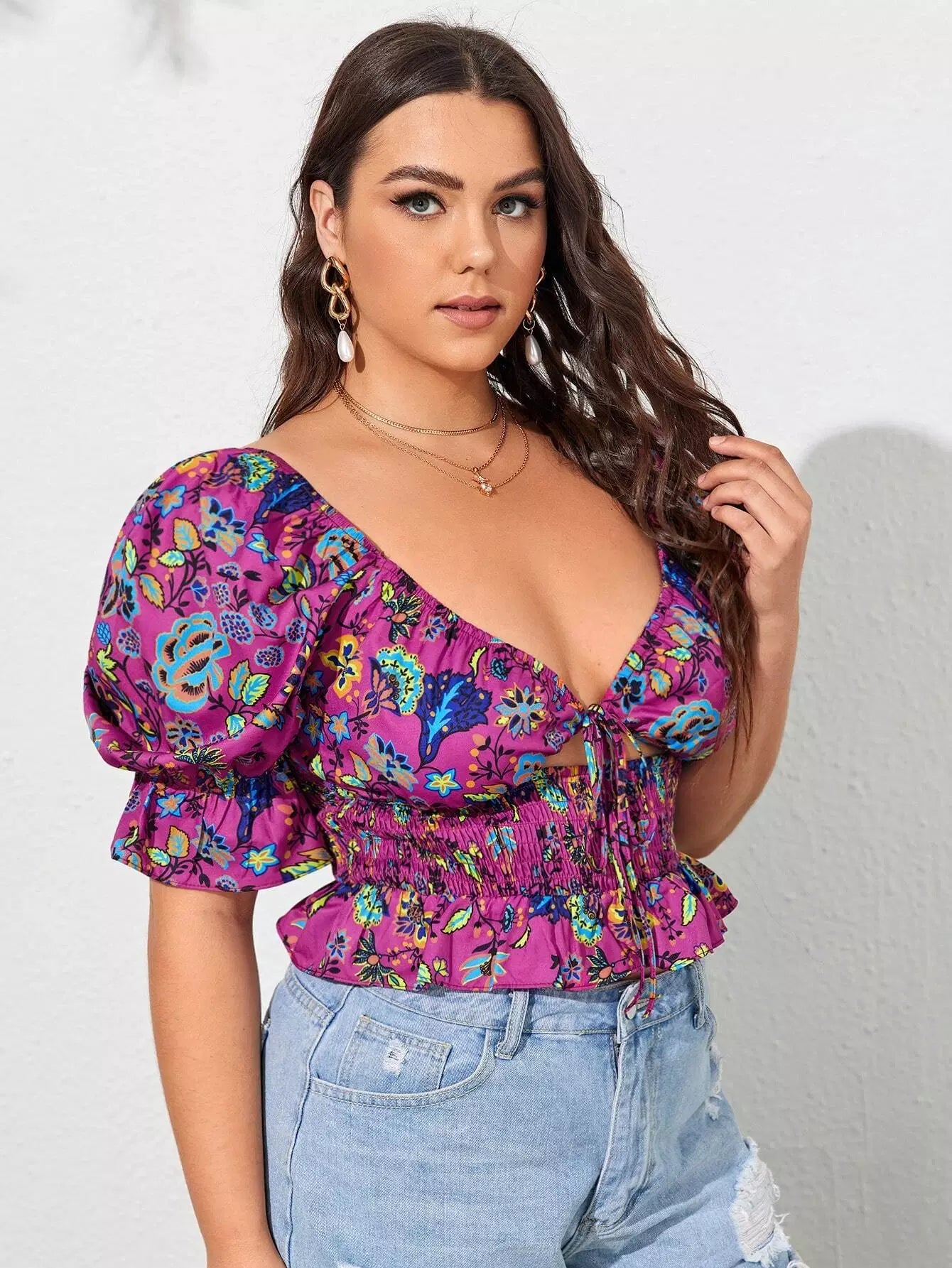بلوزة بأكمام منفوشة بأكمام منتفخة بياقة زائد برقبة منفوخة وشيرد حجاب