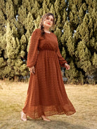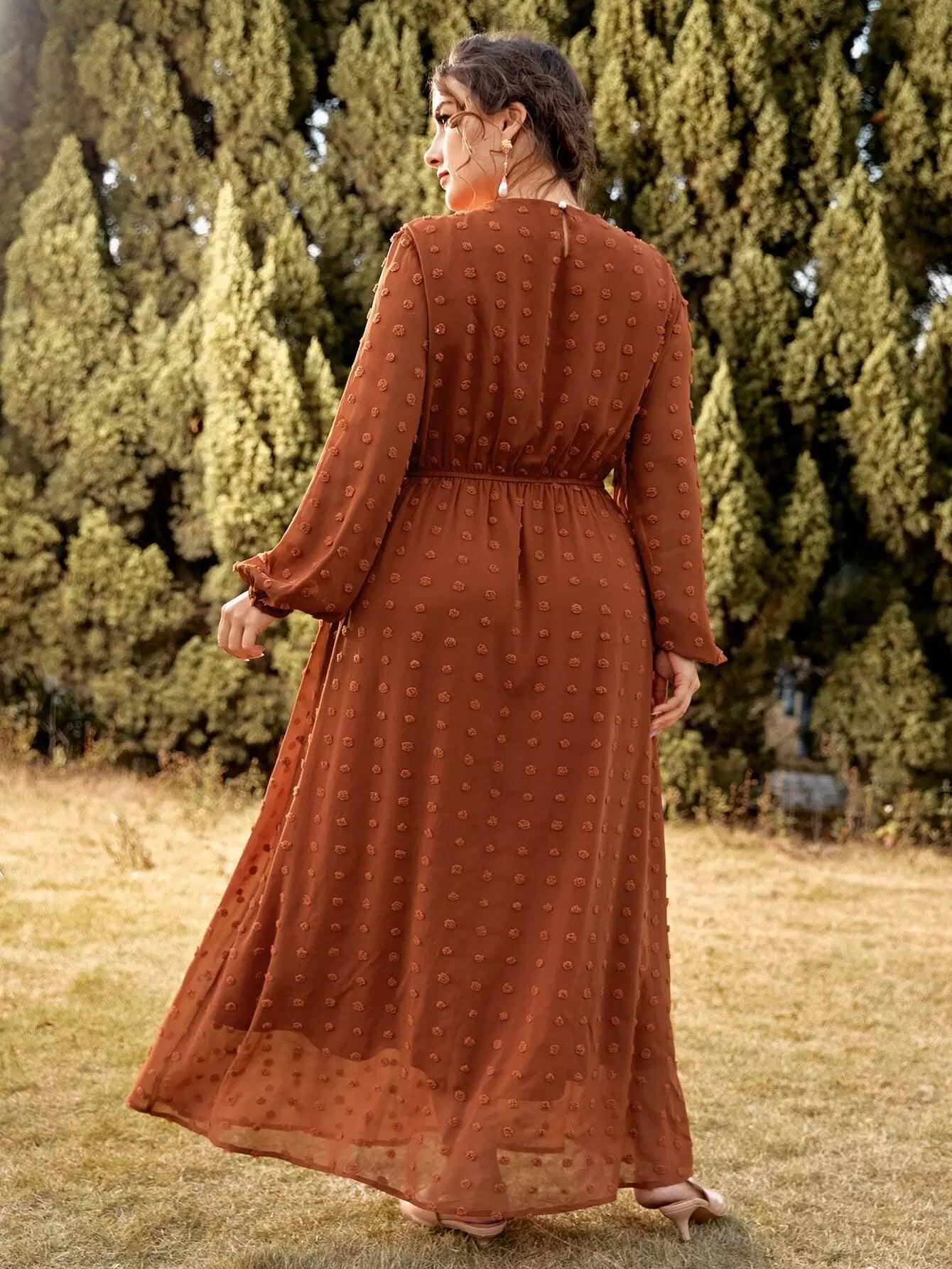 فستان قصير منقّط بأكمام منقّطة على شكل حرف A