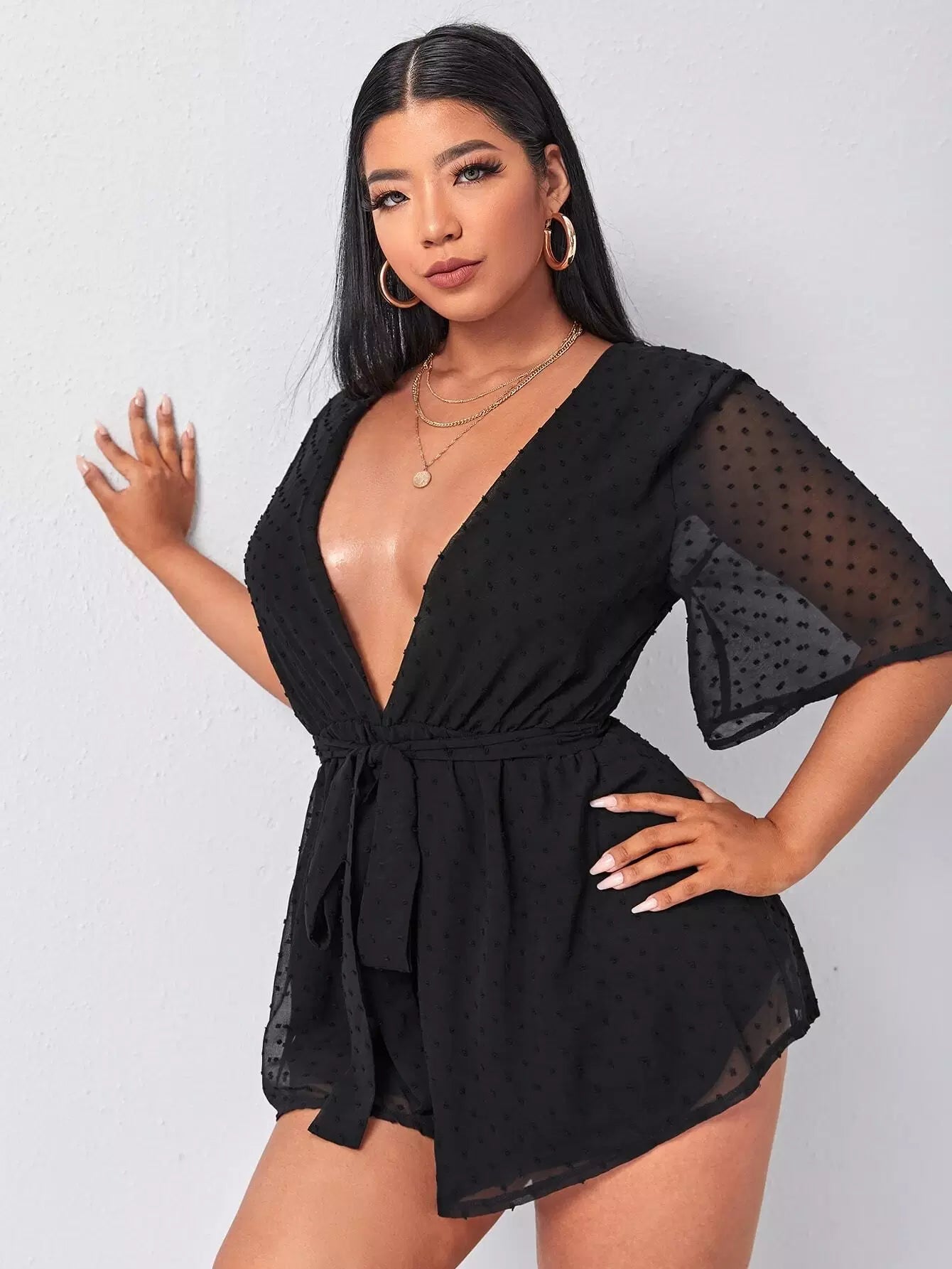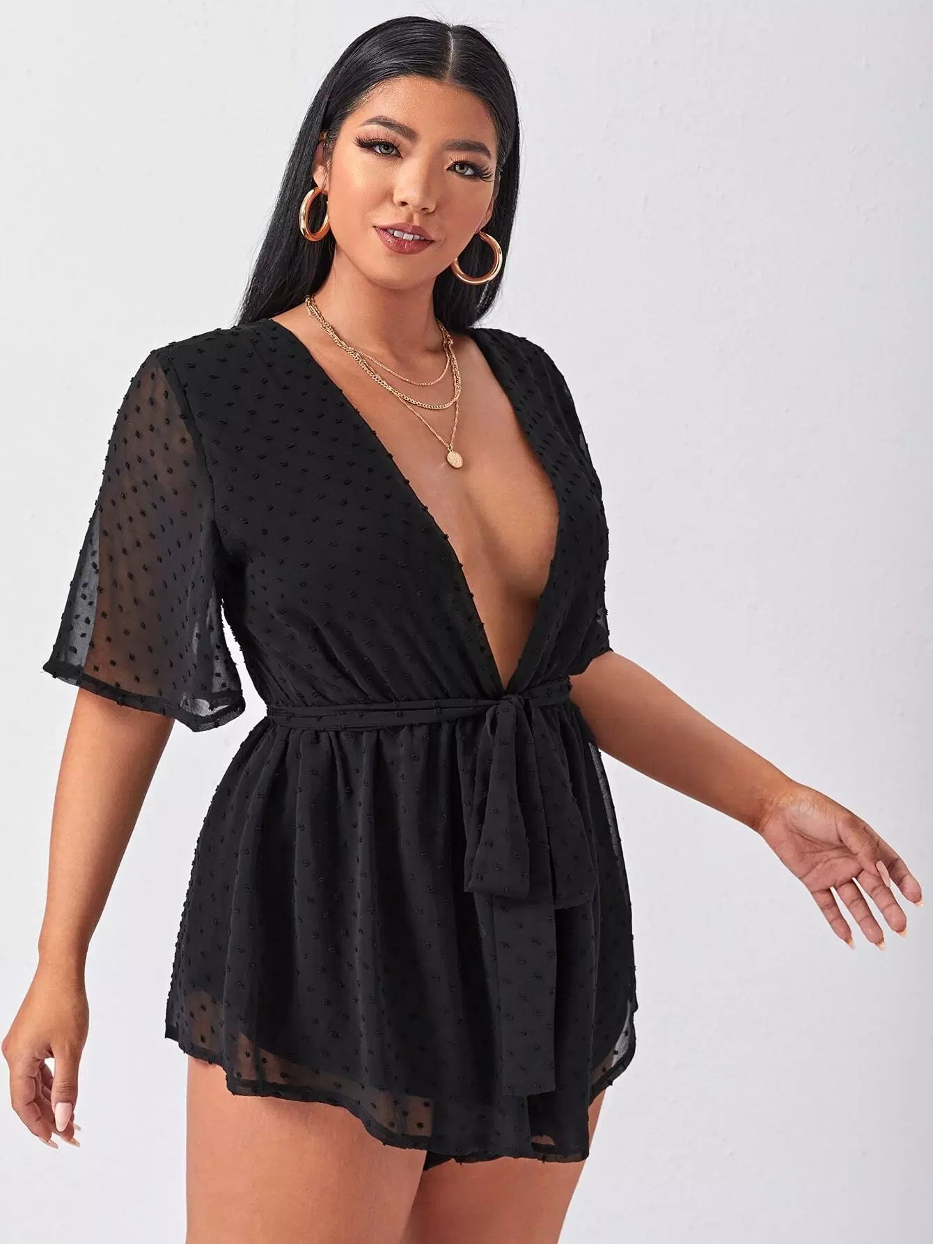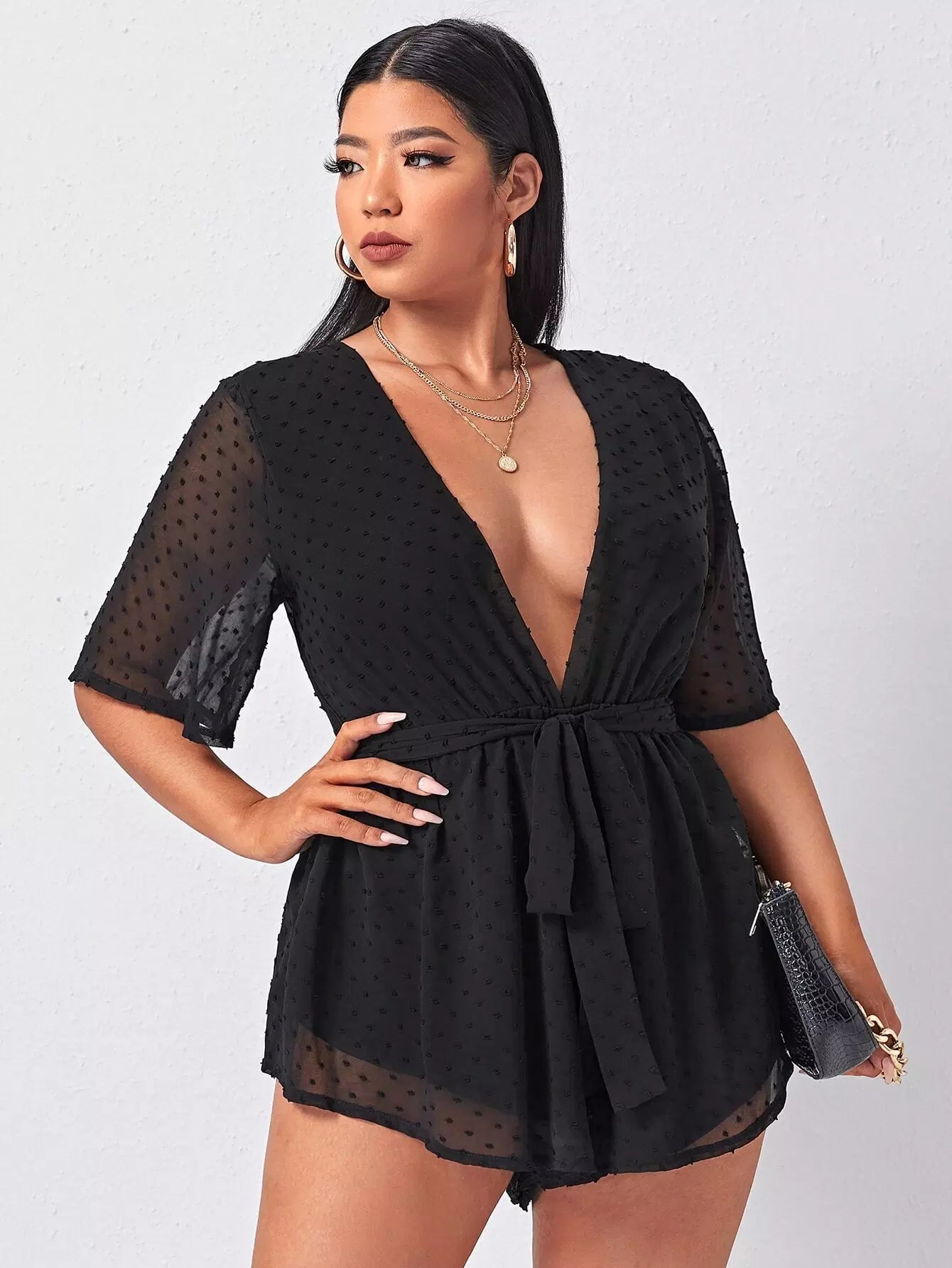 بالإضافة إلى نقطة سويسرية تغرق الرقبة رومبير الشيفون بدون حزام