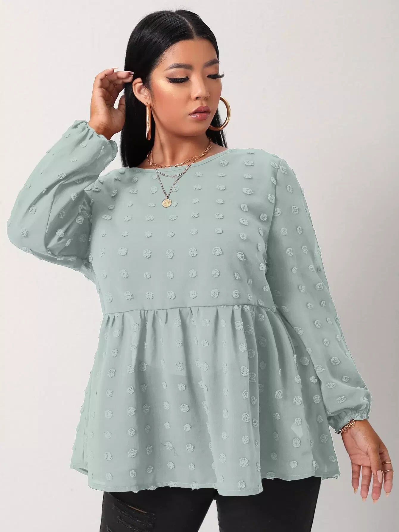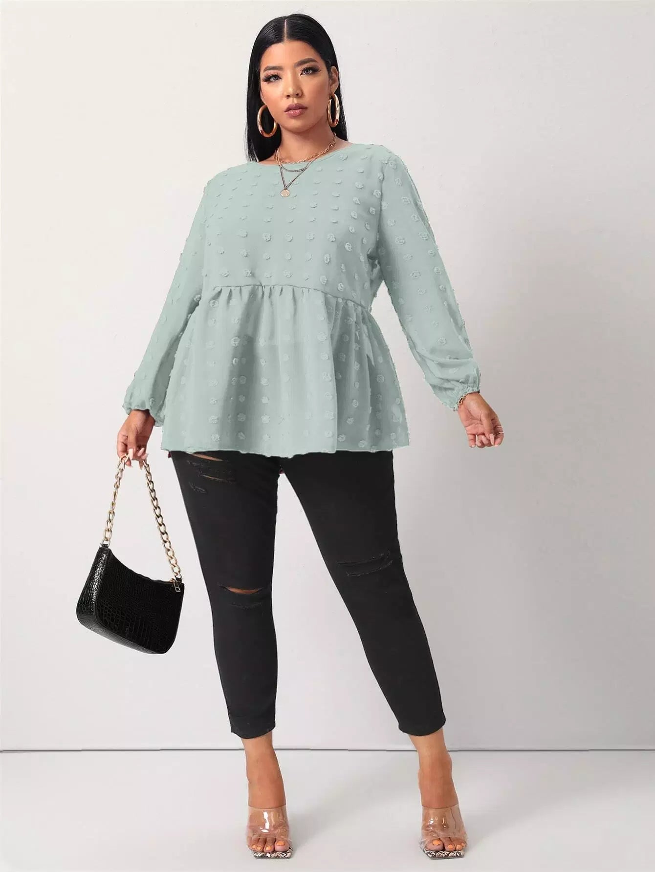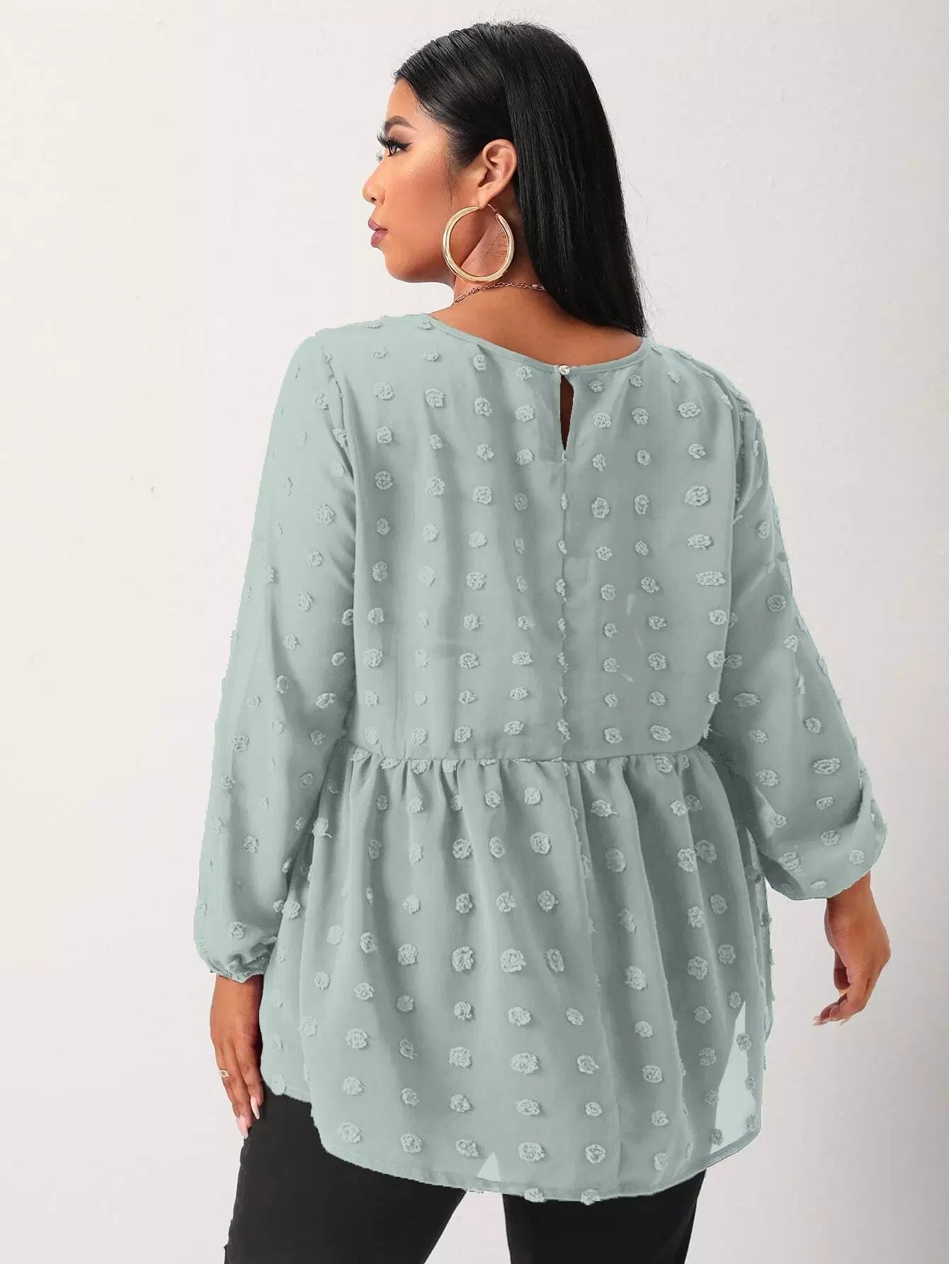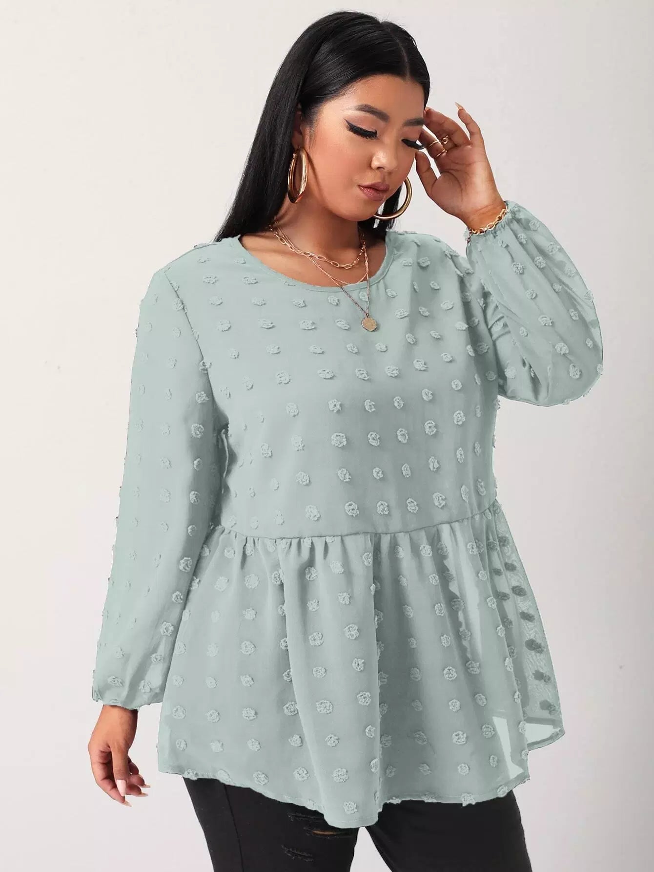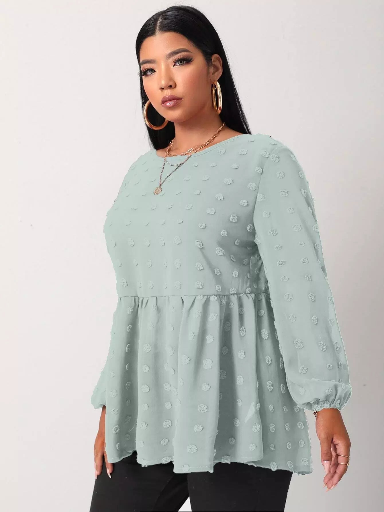 بلوزة تونيك بحافة مكشكشة منقوشة بنقشة زائد سويسرية