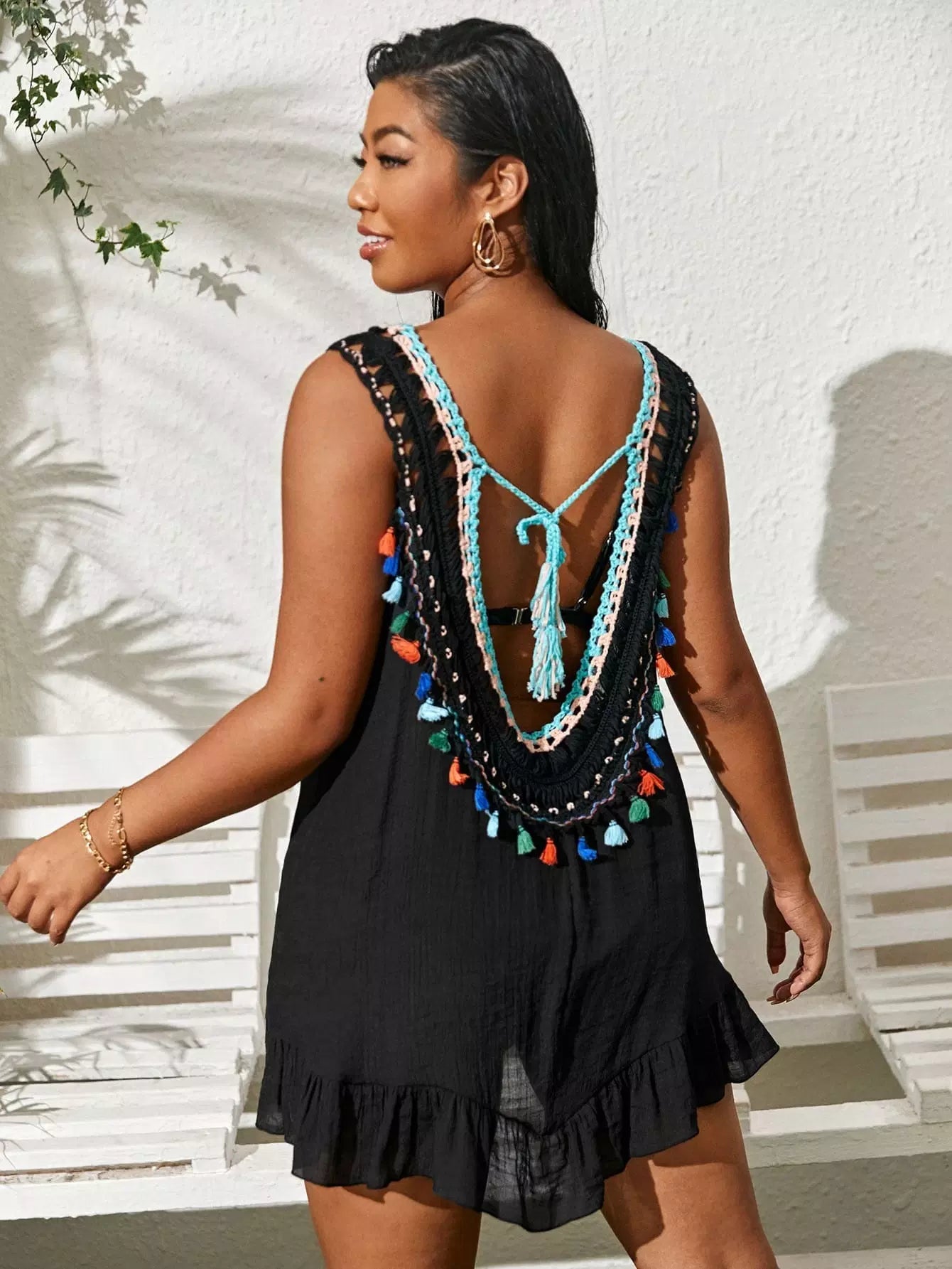 غطاء رأس مزين بشراشيب مكشكشة ذات حواف مكشكشة بلس