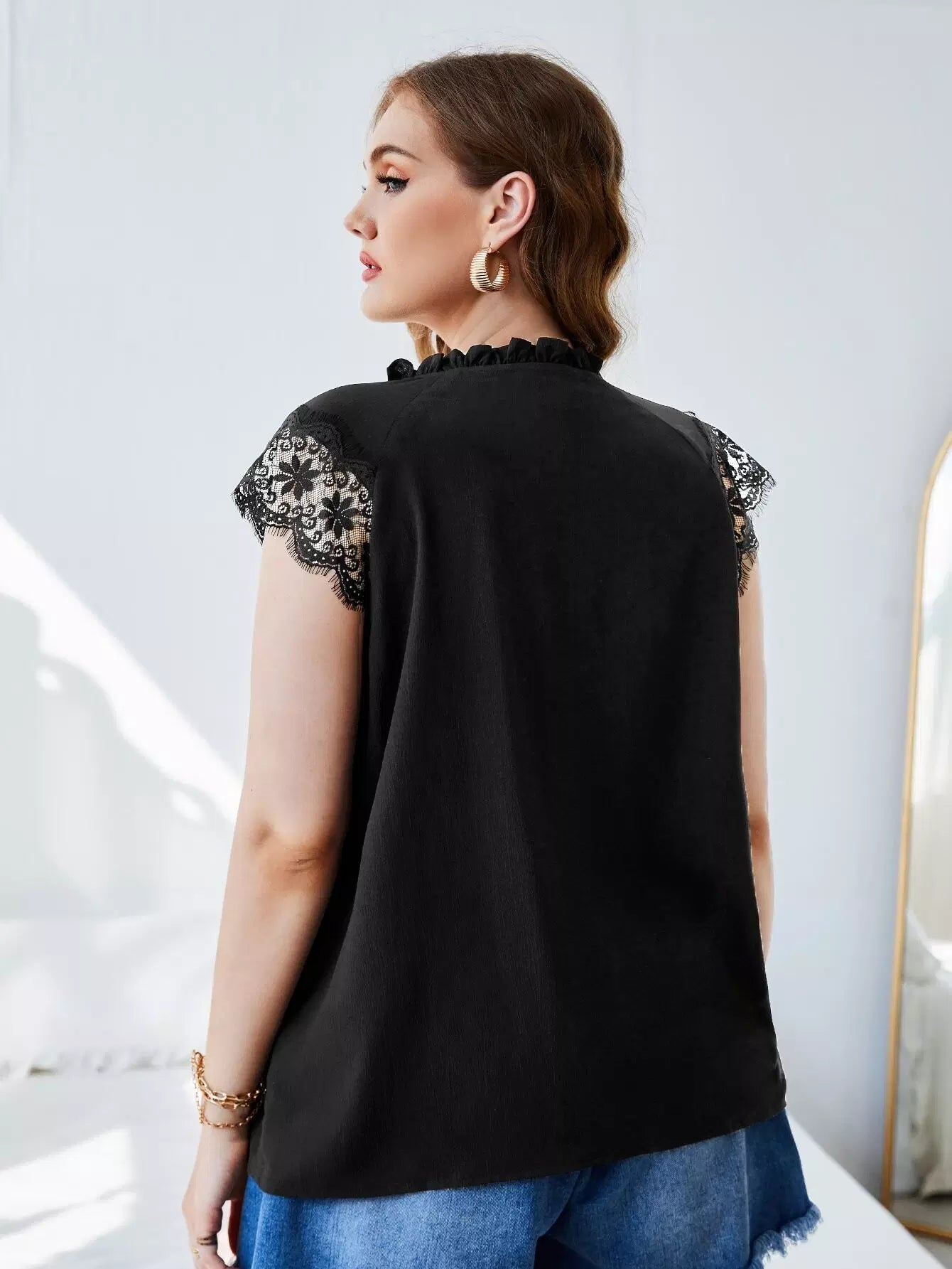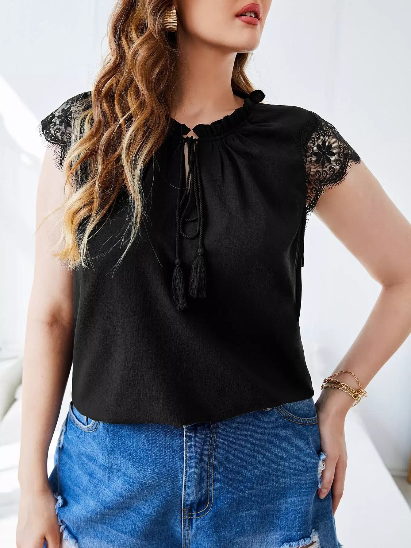 بلوزة من الدانتيل بربطة عنق من الدانتيل بلون مغاير
