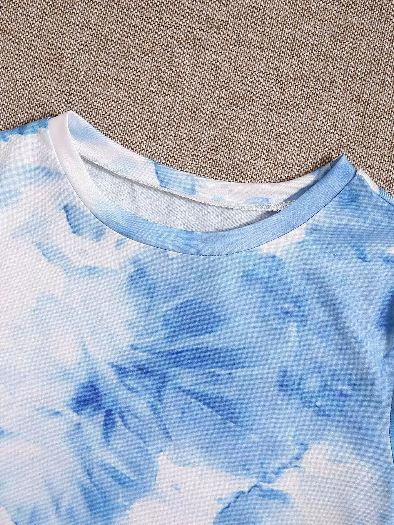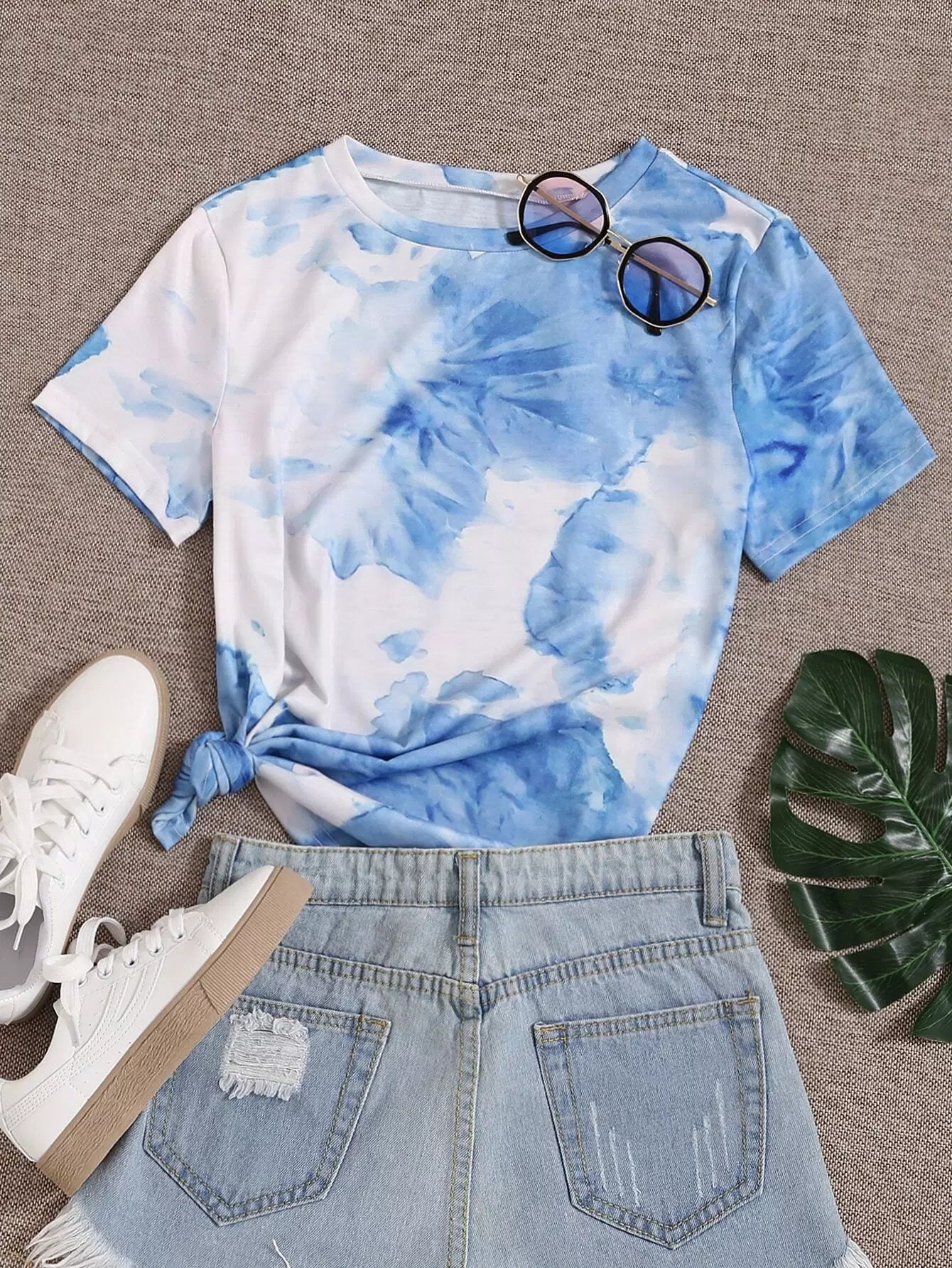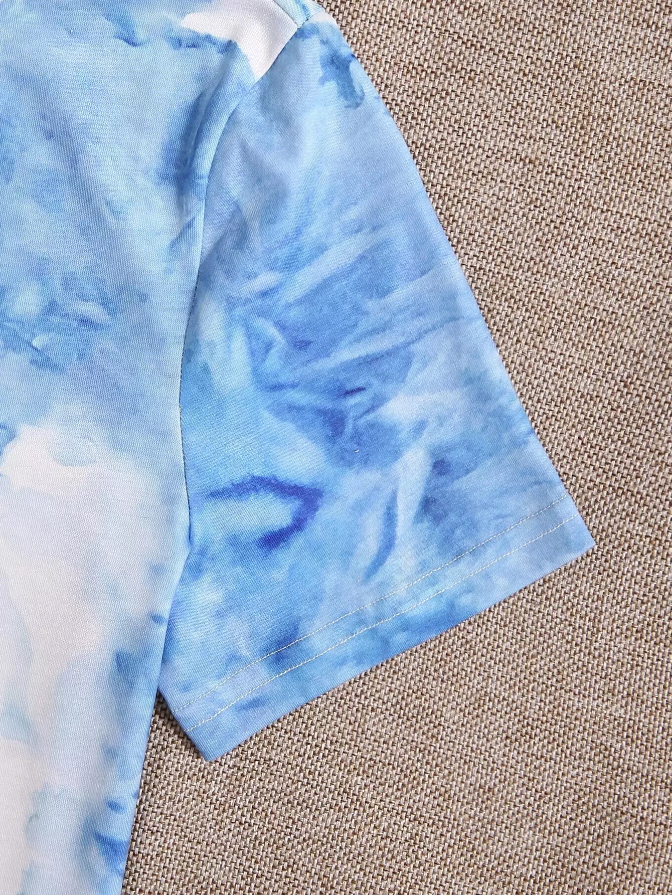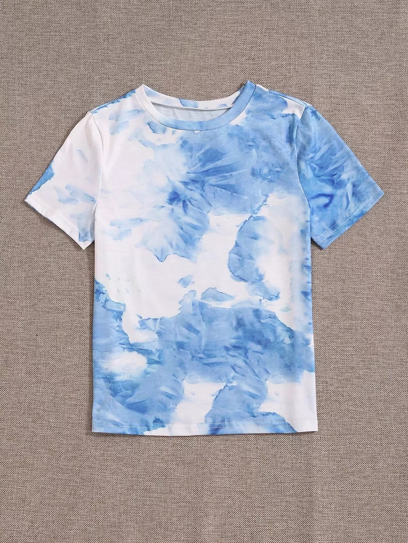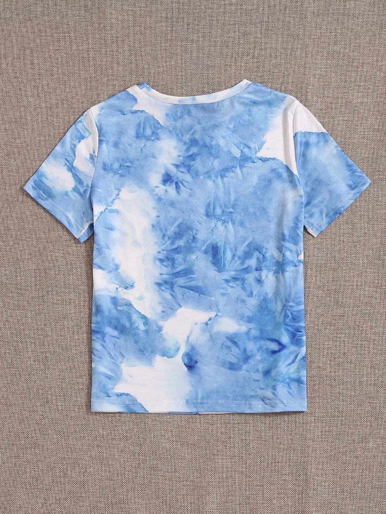 تي شيرت بأكمام قصيرة قصيرة الأكمام بصبغة زائد