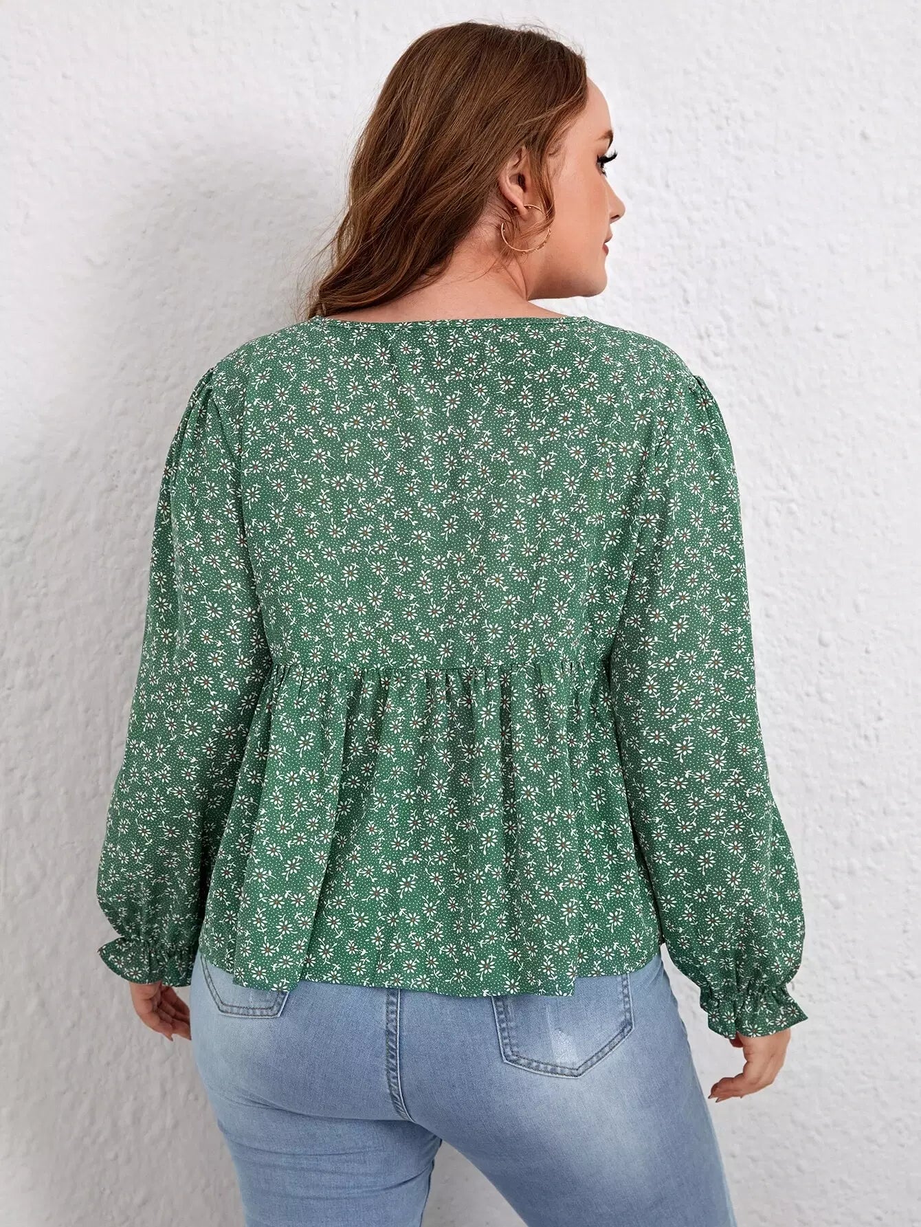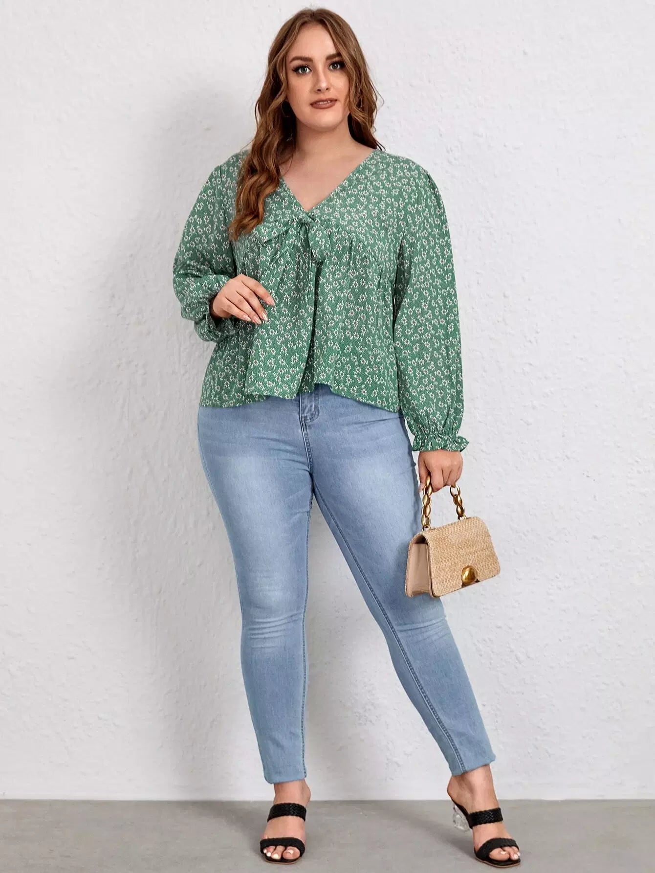 بلوزة ديتسي مزينة بالورود بربطة عنق أمامية بلس