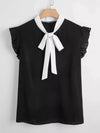 بلوزة مزينة بربطة عنق مكشكشة بياقة زائد
