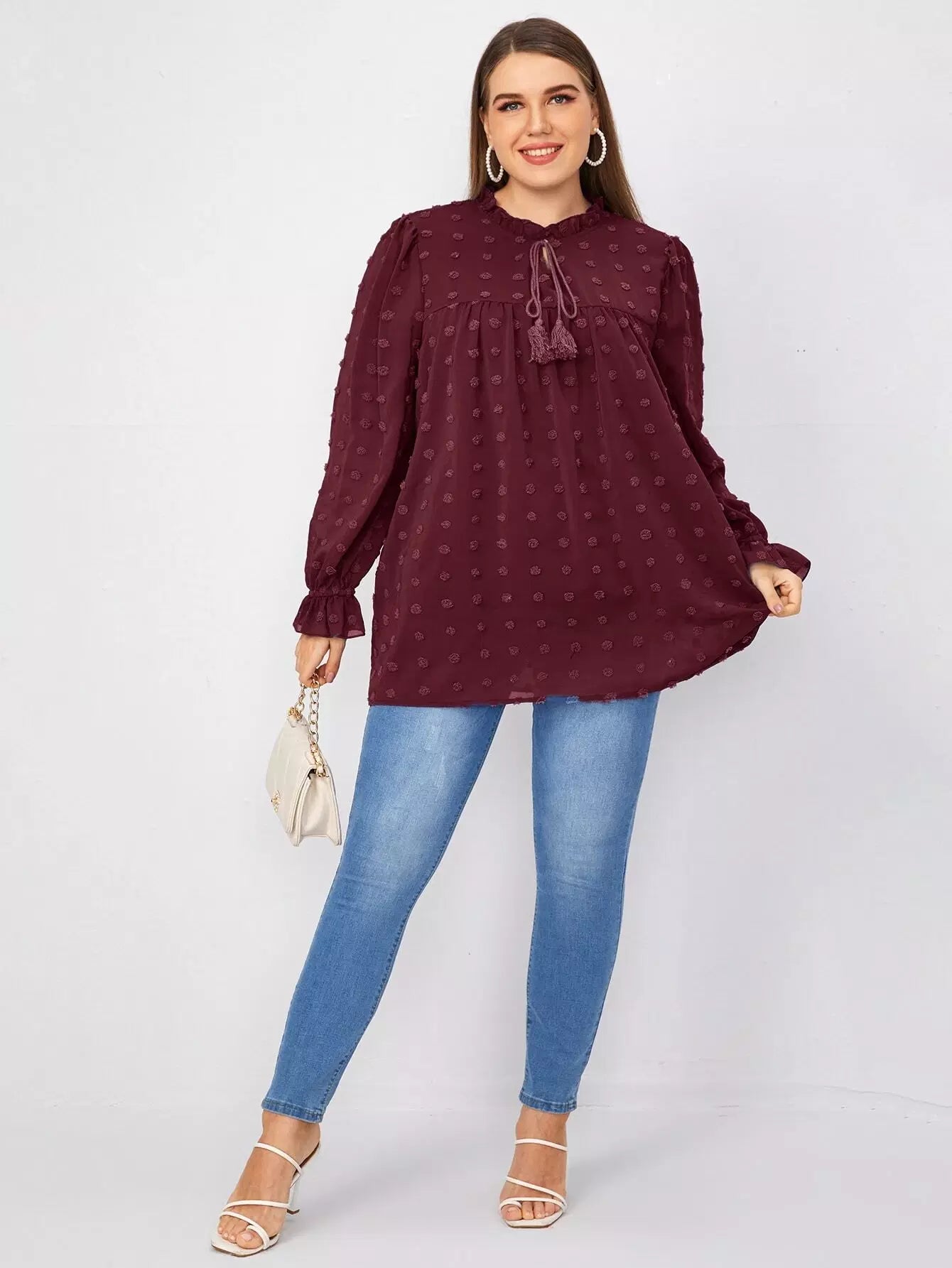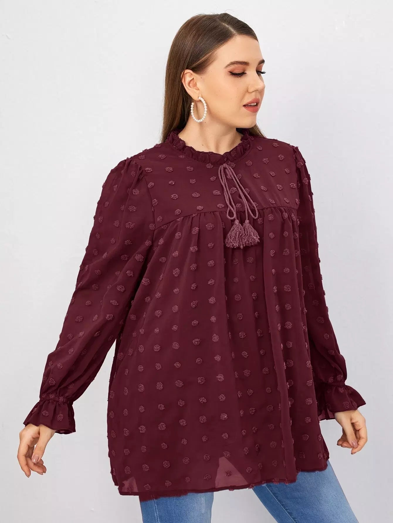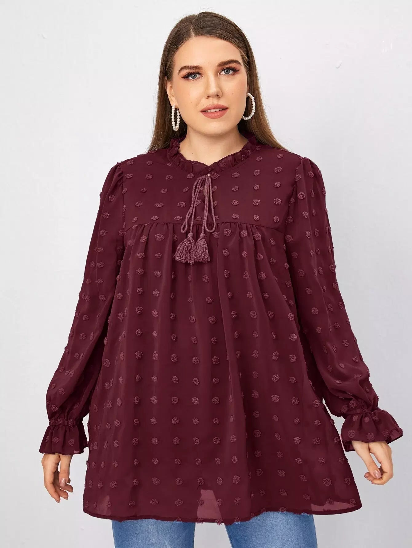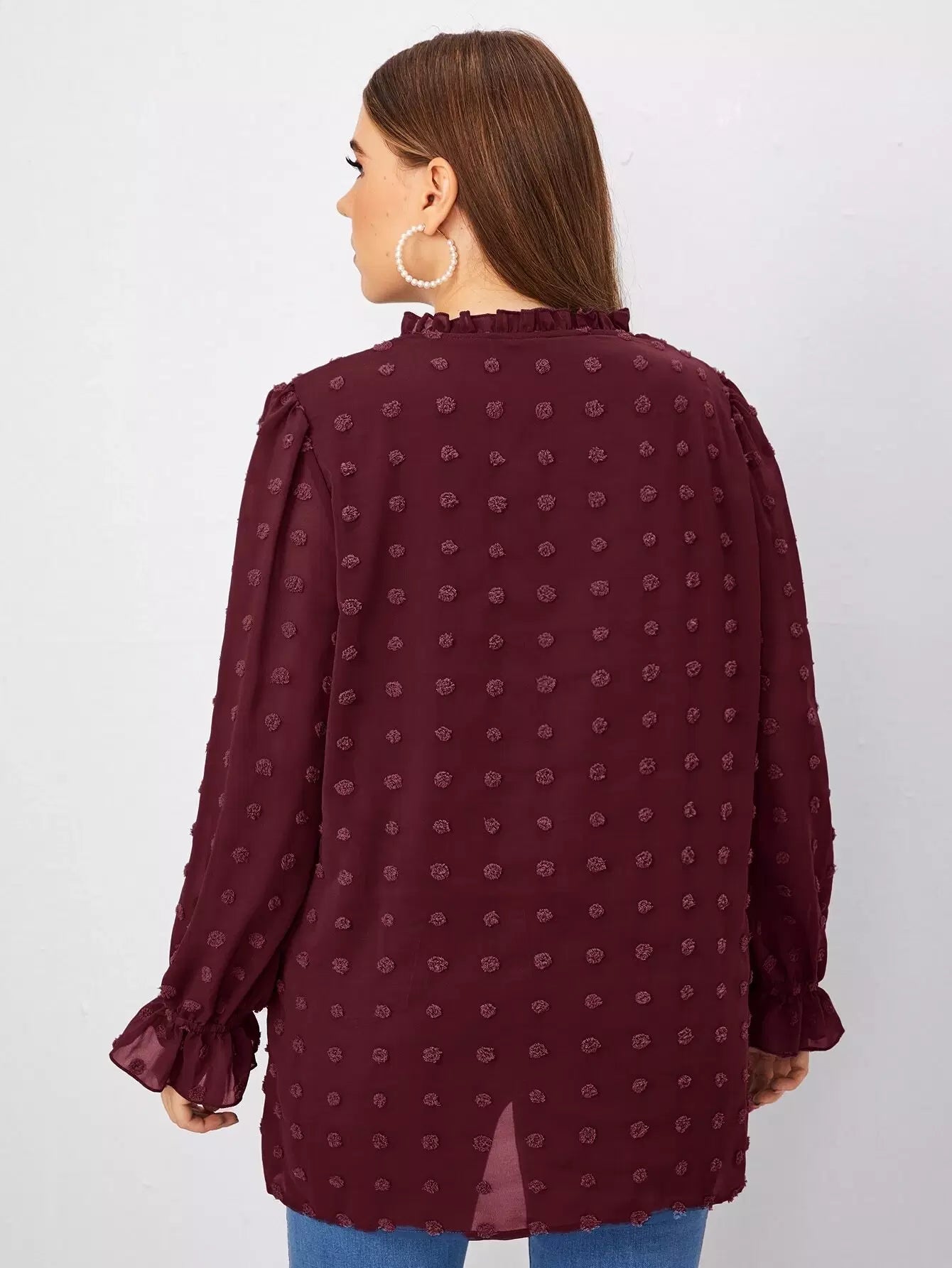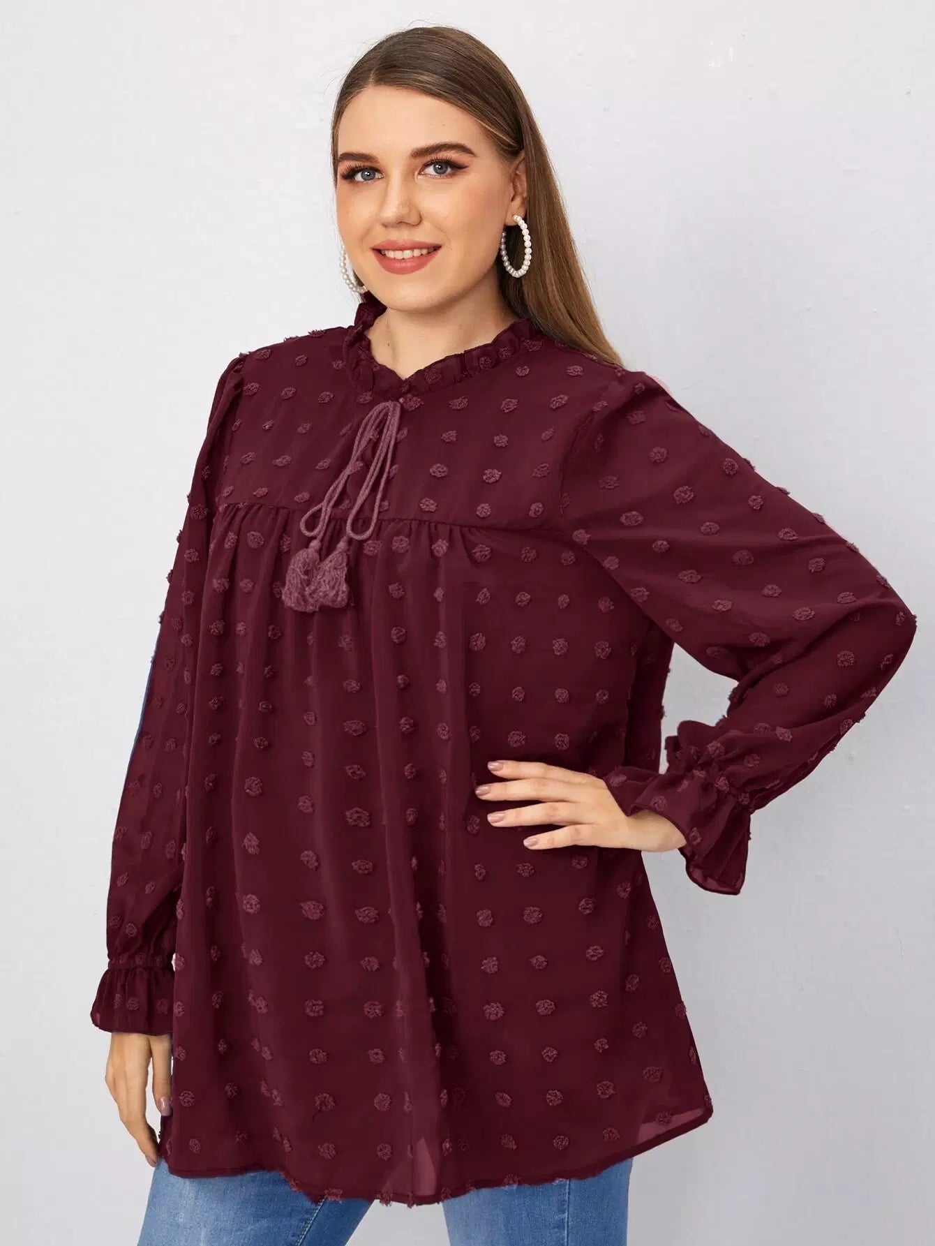 بلوزة بيبلوم منقّطة بربطة عنق زائد سويسرية منقطة