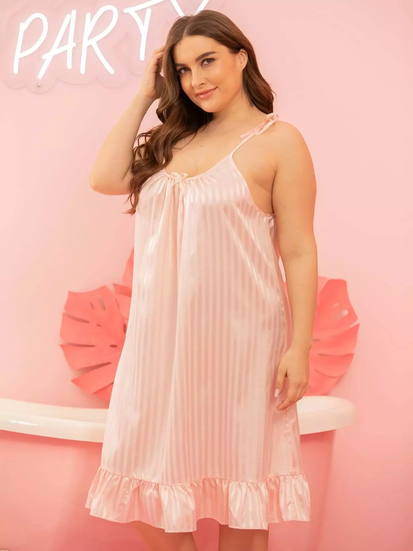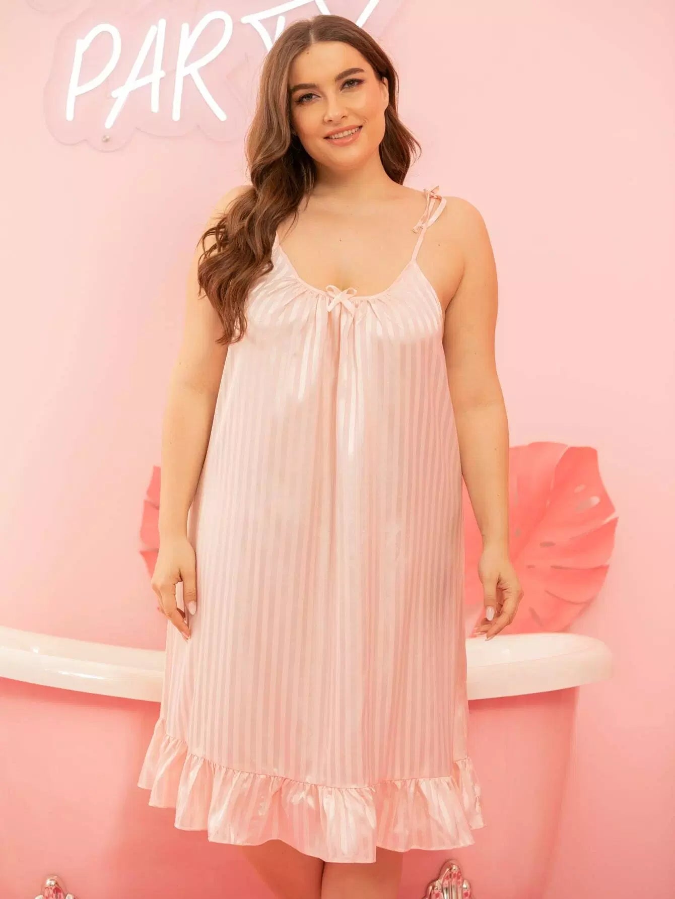 فستان سهرة كامي ساتان كشكش بحواف مكشكشة على الأكتاف زائد