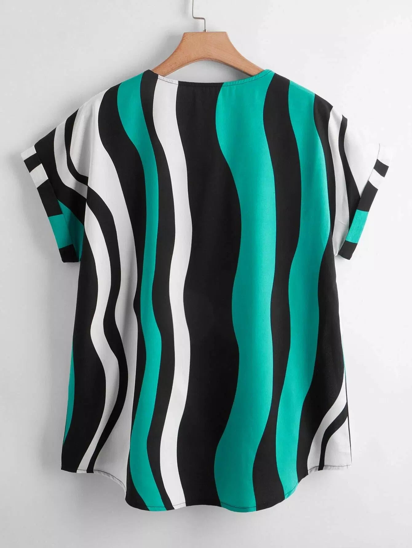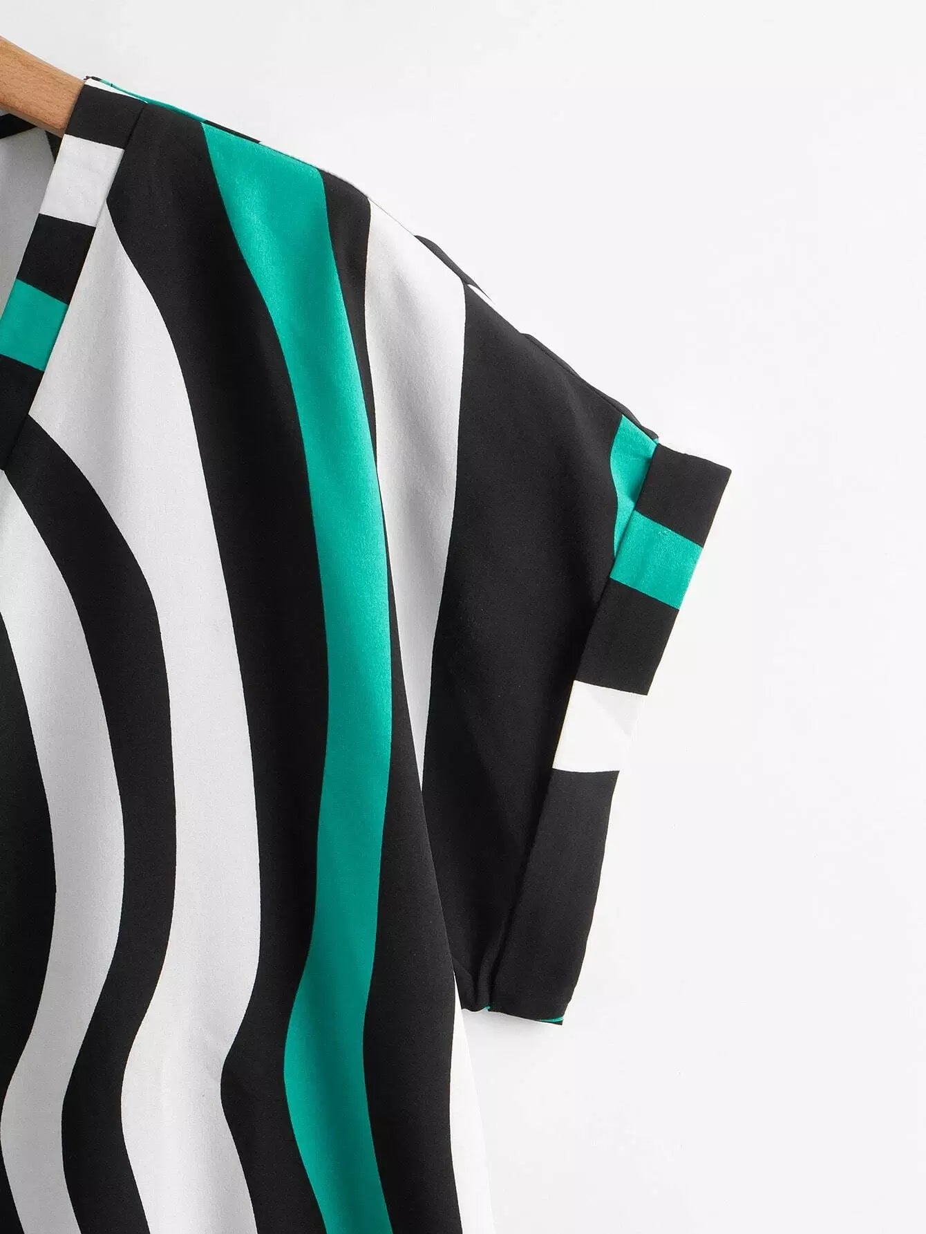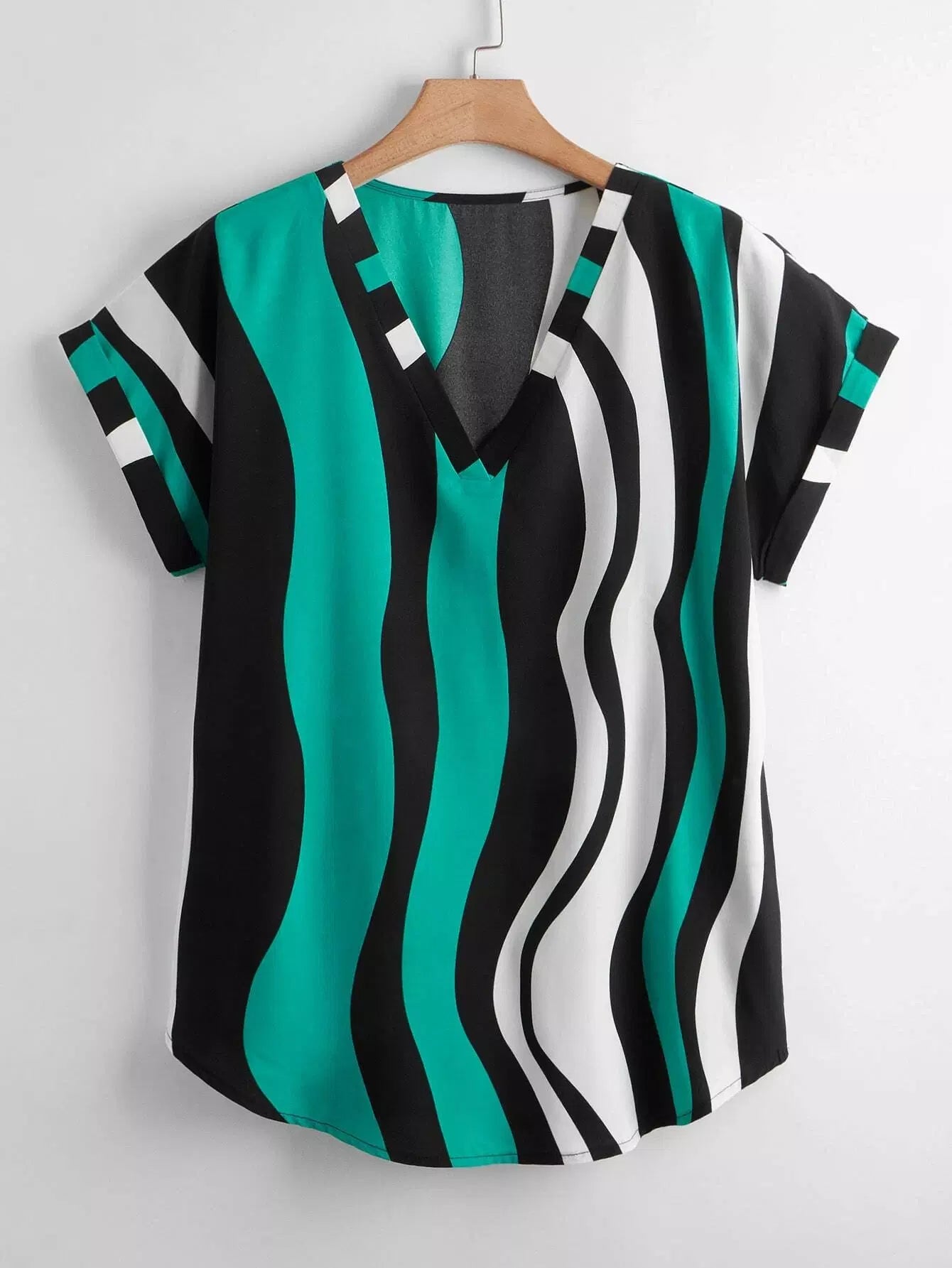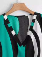 بلوزة ملونة بأكمام على شكل حرف V بياقة على شكل حرف V