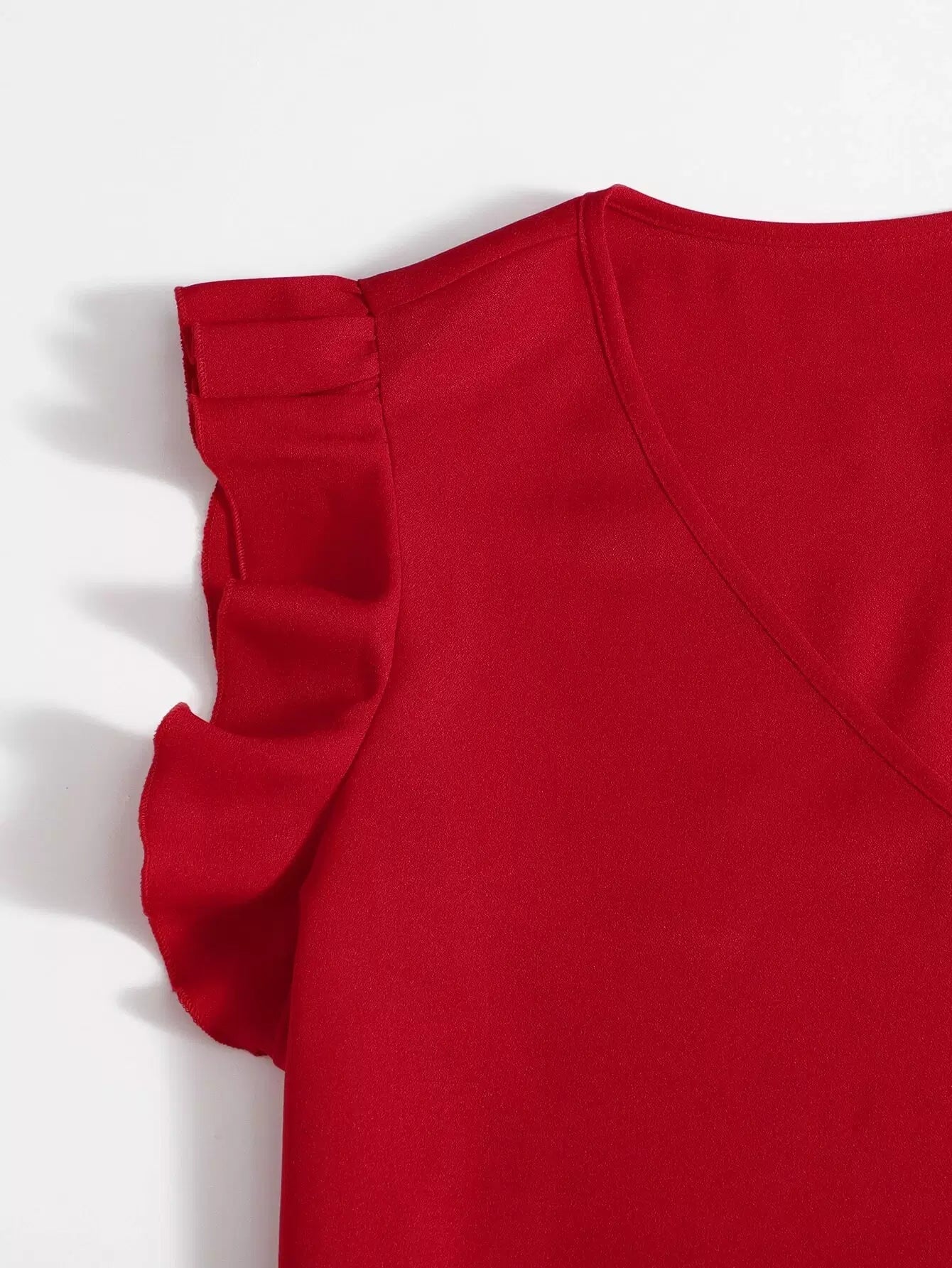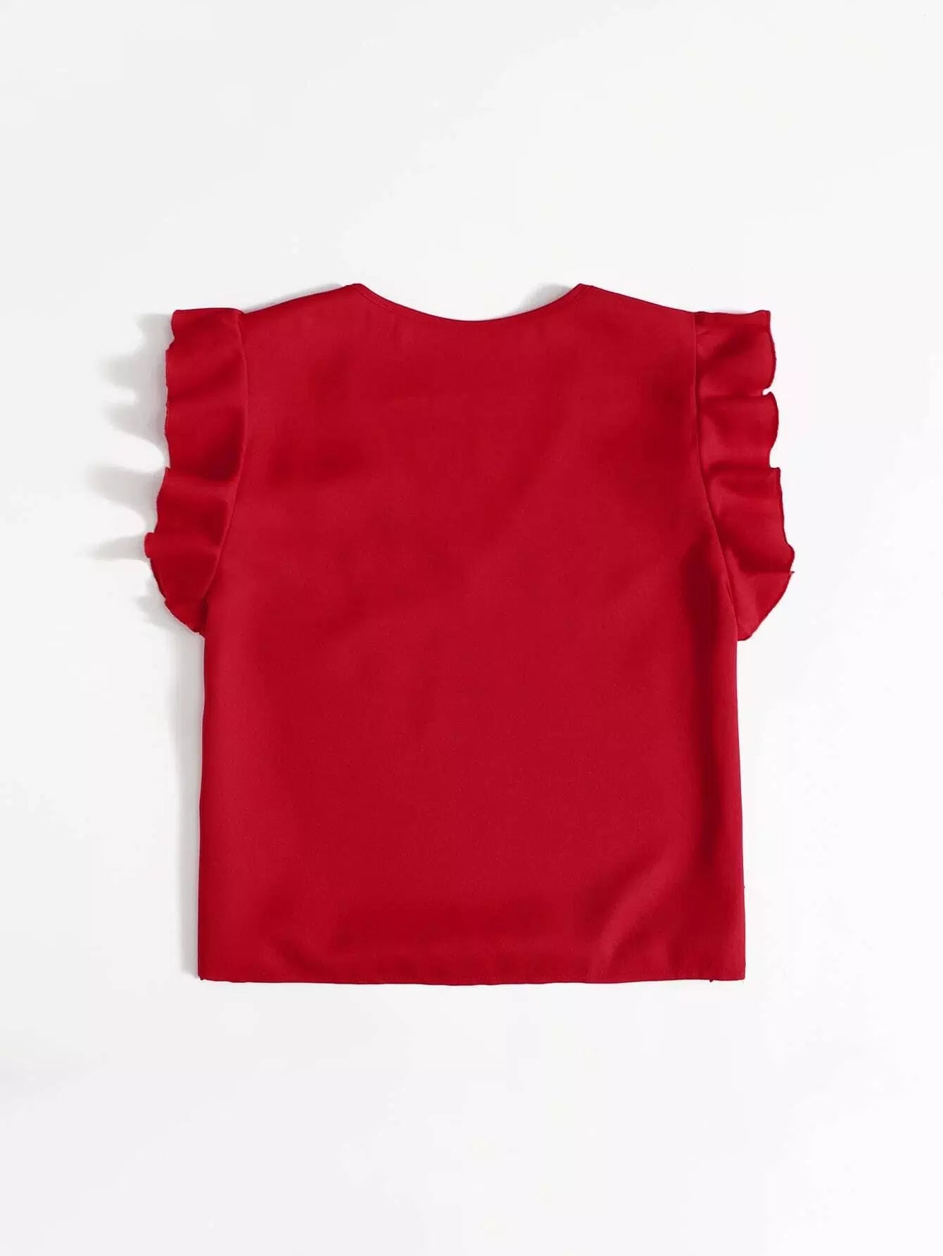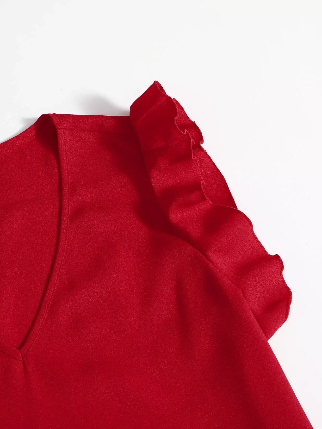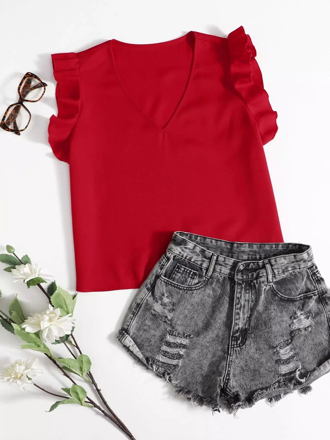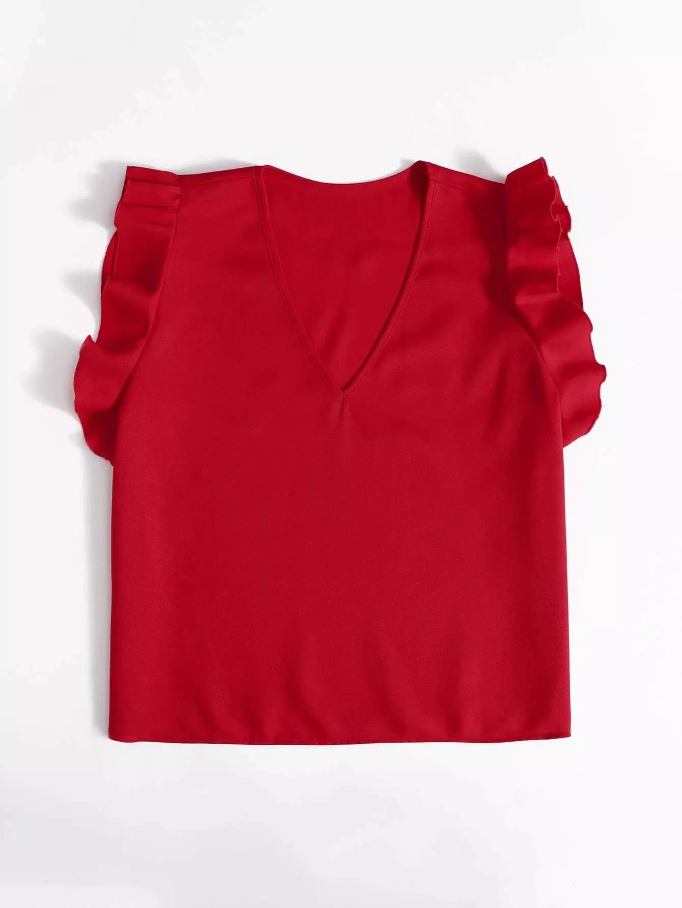 بلوزة بياقة على شكل V بياقة على شكل V على شكل كشكش