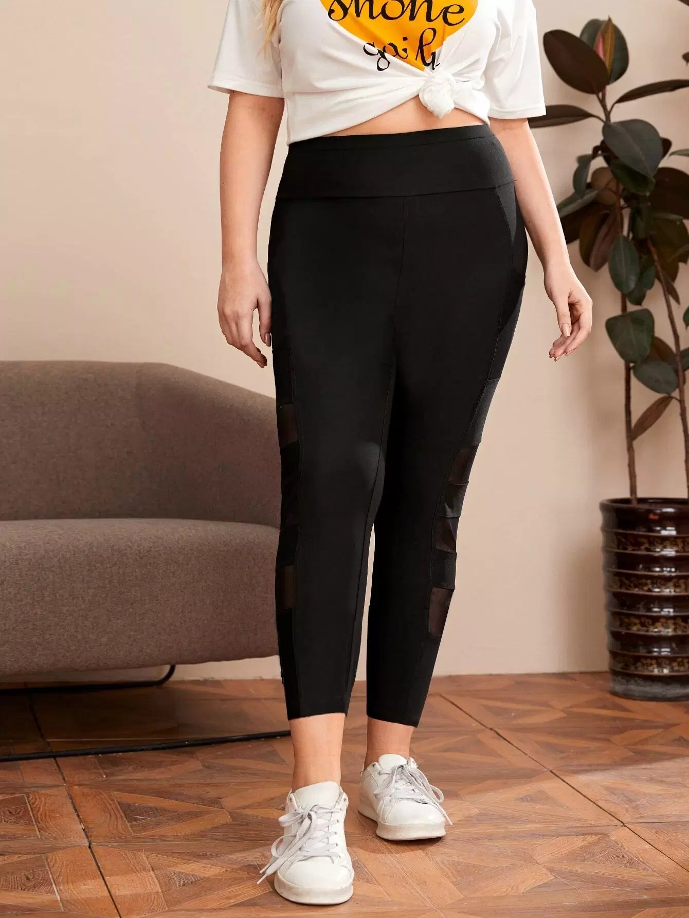 بنطلون ضيق بحزام خصر عريض بحزام خصر عريض شبكي داخلي