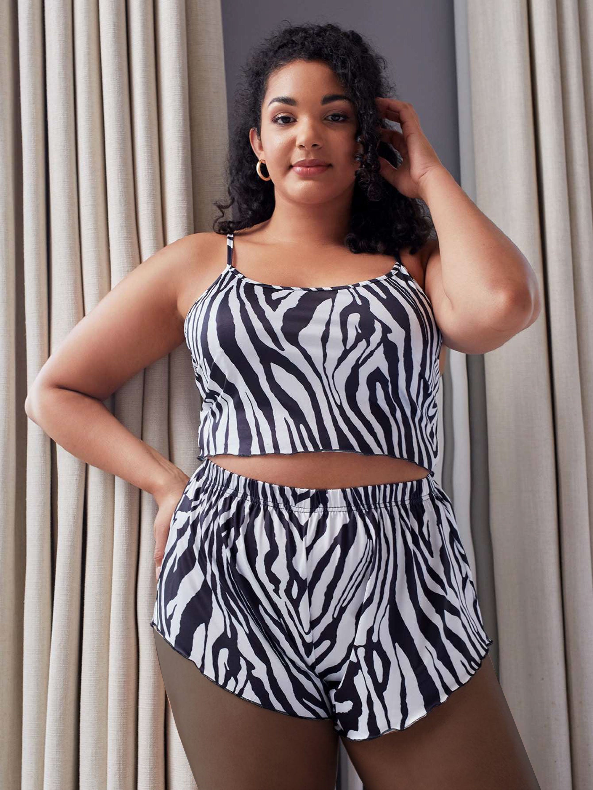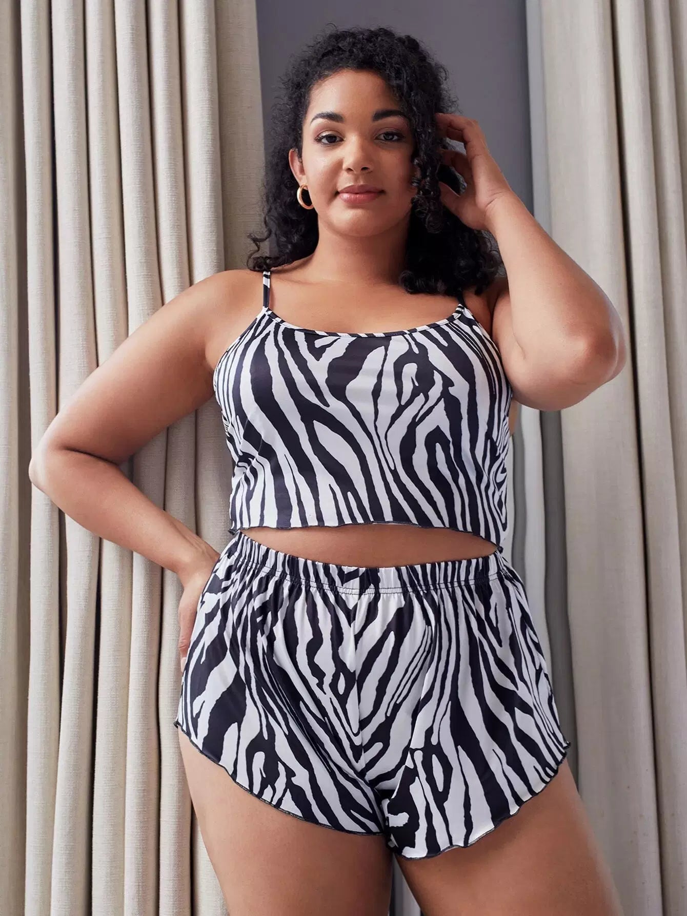 نحيف - مقاس كبير زيبرا مخطط كامي الأعلى والسراويل PJ مجموعة