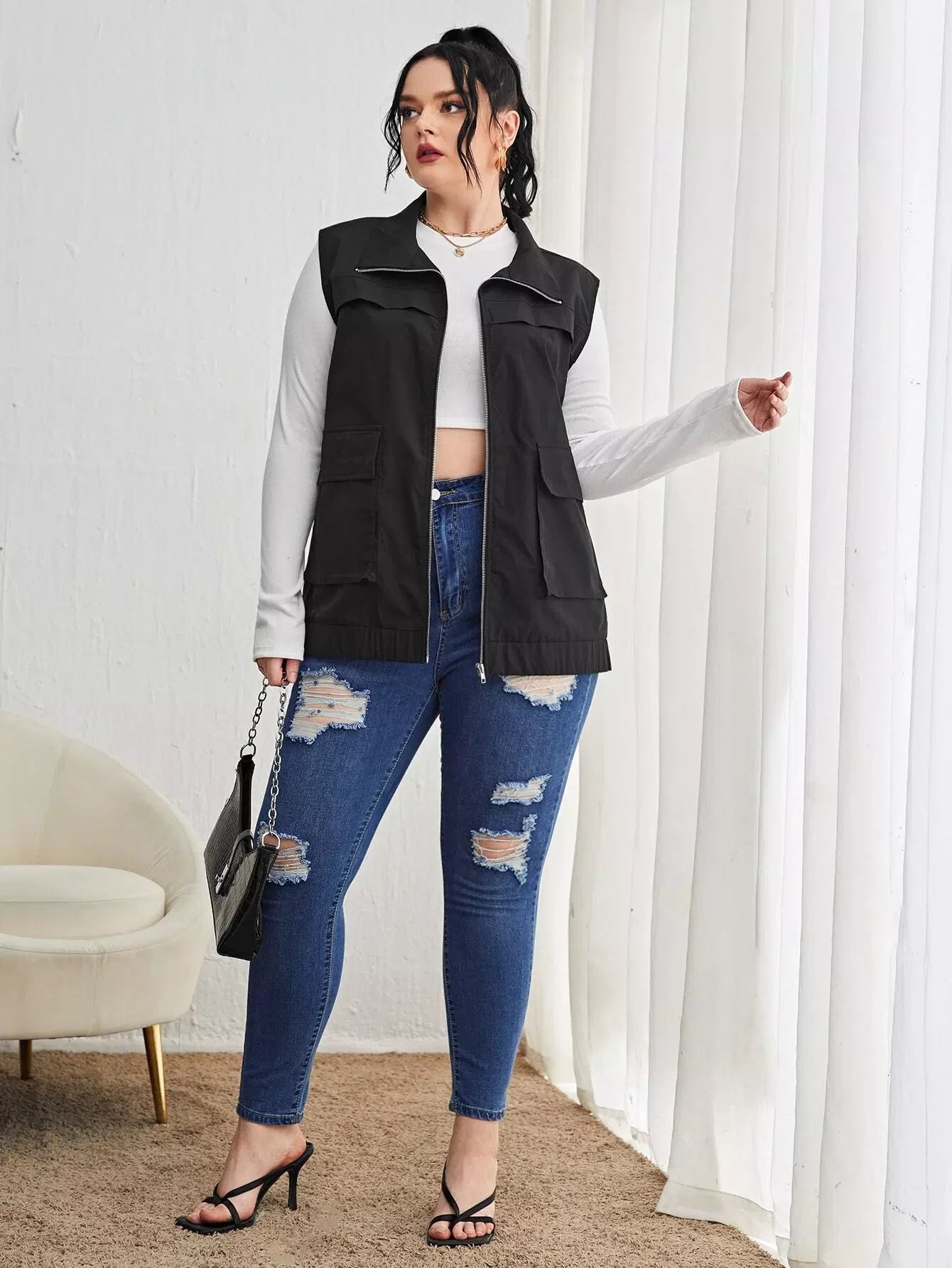 جاكيت جاكيت بغطاء بسحّاب وجيب بغطاء بلاس