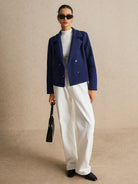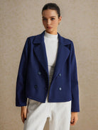 بليزر بوسيل ذو ياقة مطوية وأزرار مزدوجة في خريف/شتاء