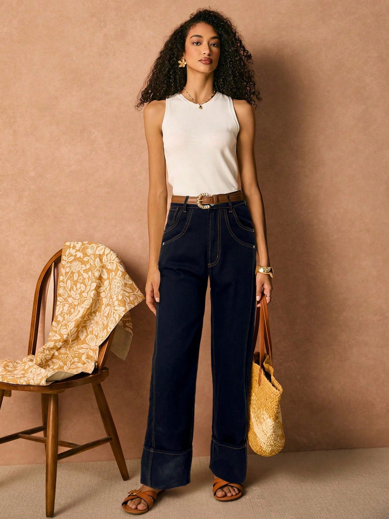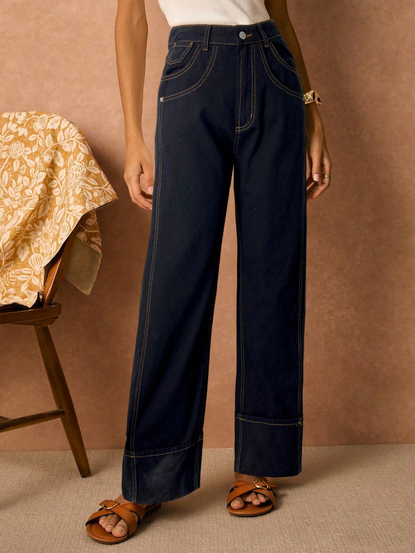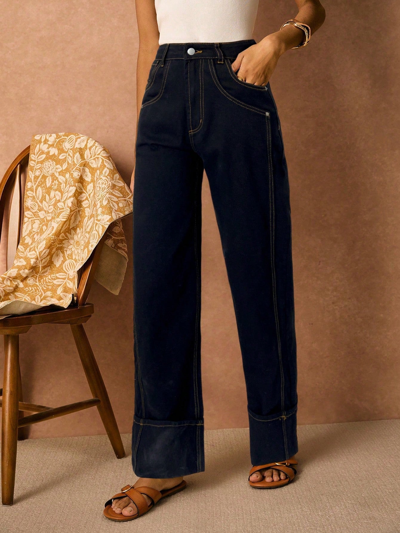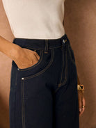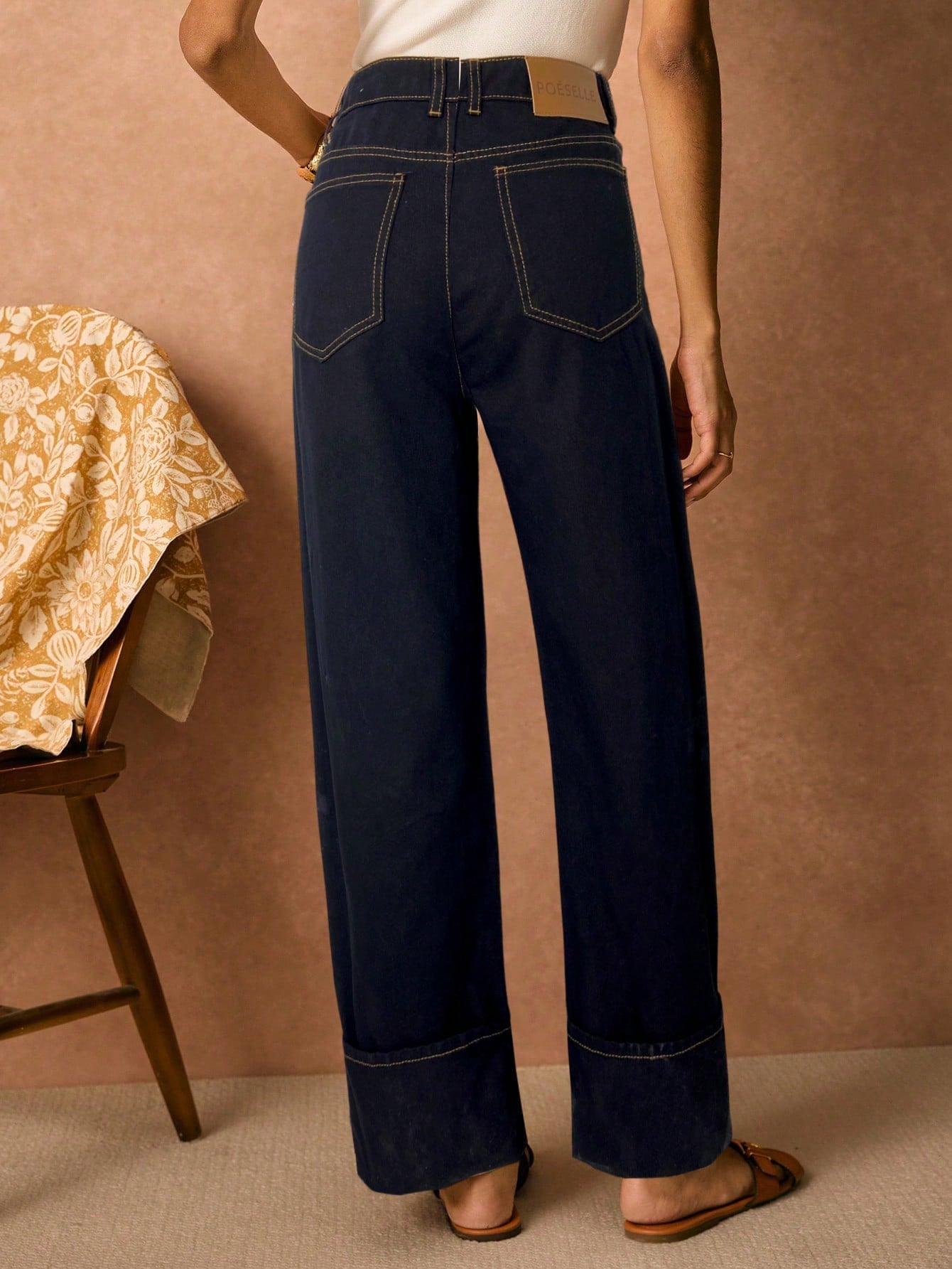 بنطلون جينز نسائي من PoÊselle بجيوب، بقصة مستقيمة فضفاضة، مناسب للإطلالات الكاجوال والعصرية.