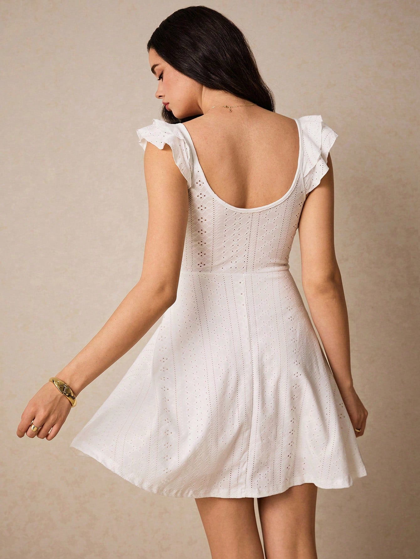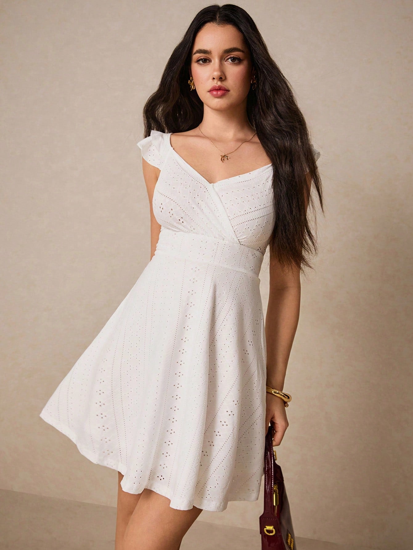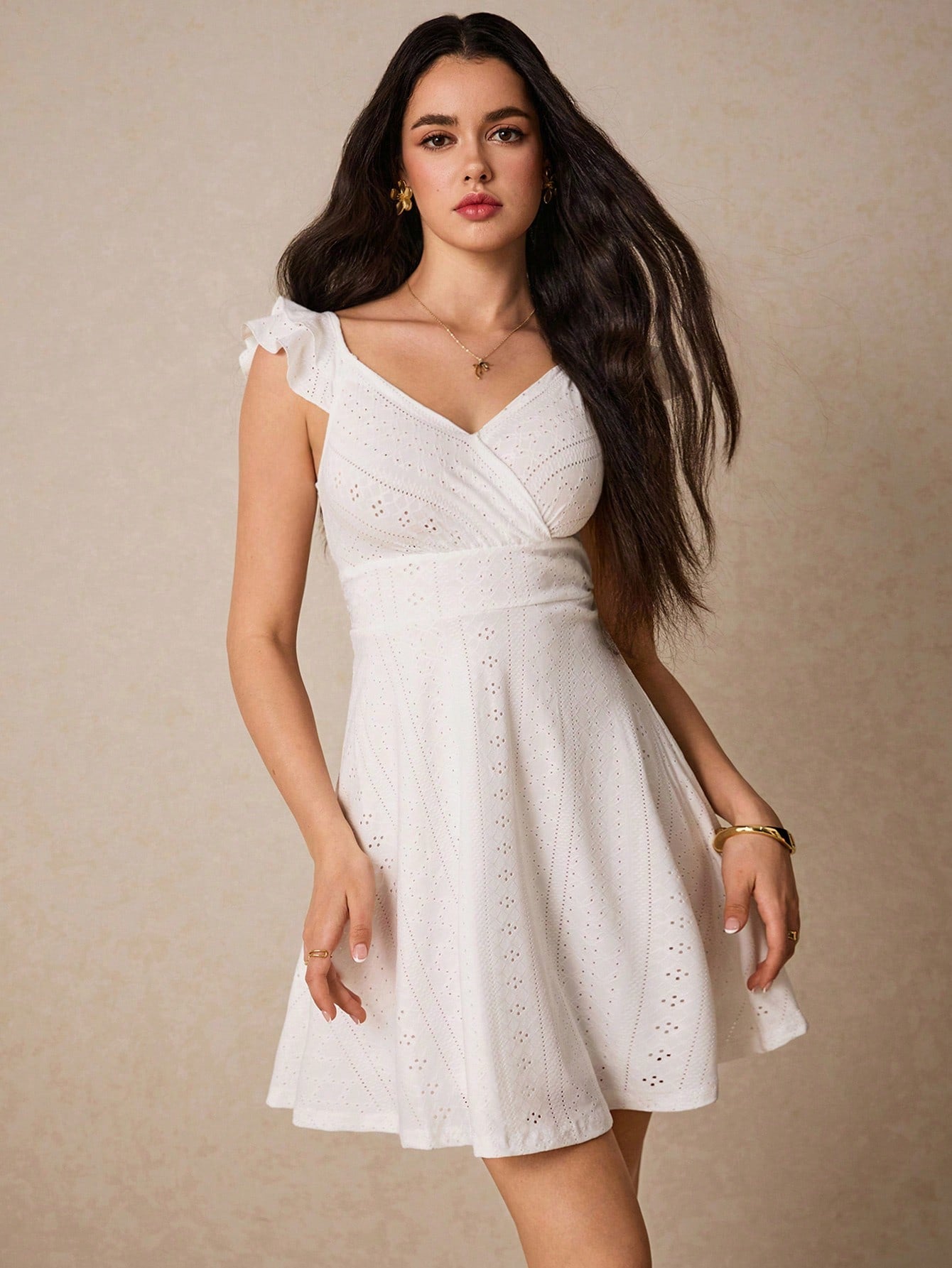 فستان Po©selle النسائي للعطلات الصيفية بدون أكمام بلون واحد مع خصر مكشكش للصيف