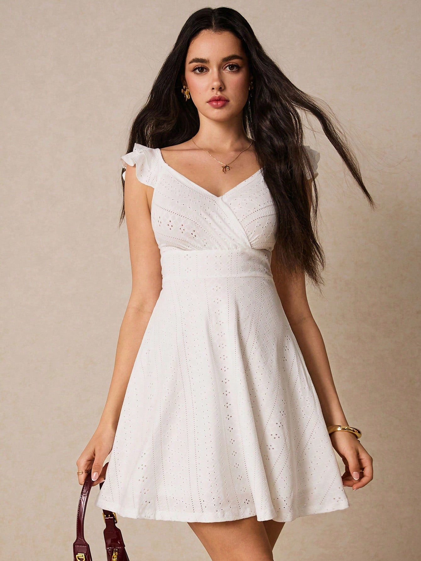 women Poأ©selle Women's Summer Holiday Solid Color Sleeveless Dress With Ruffled Waistline Dress For Summer