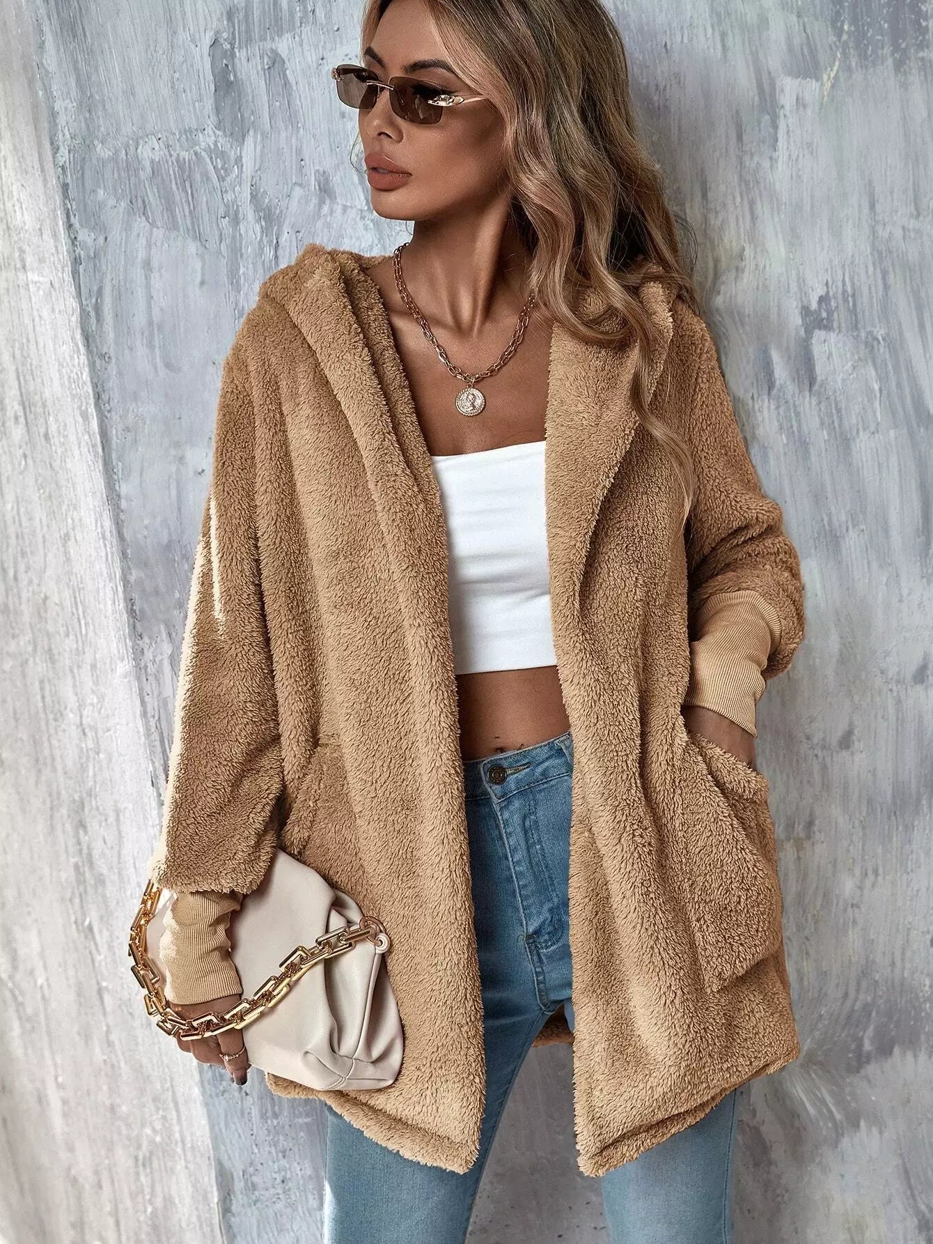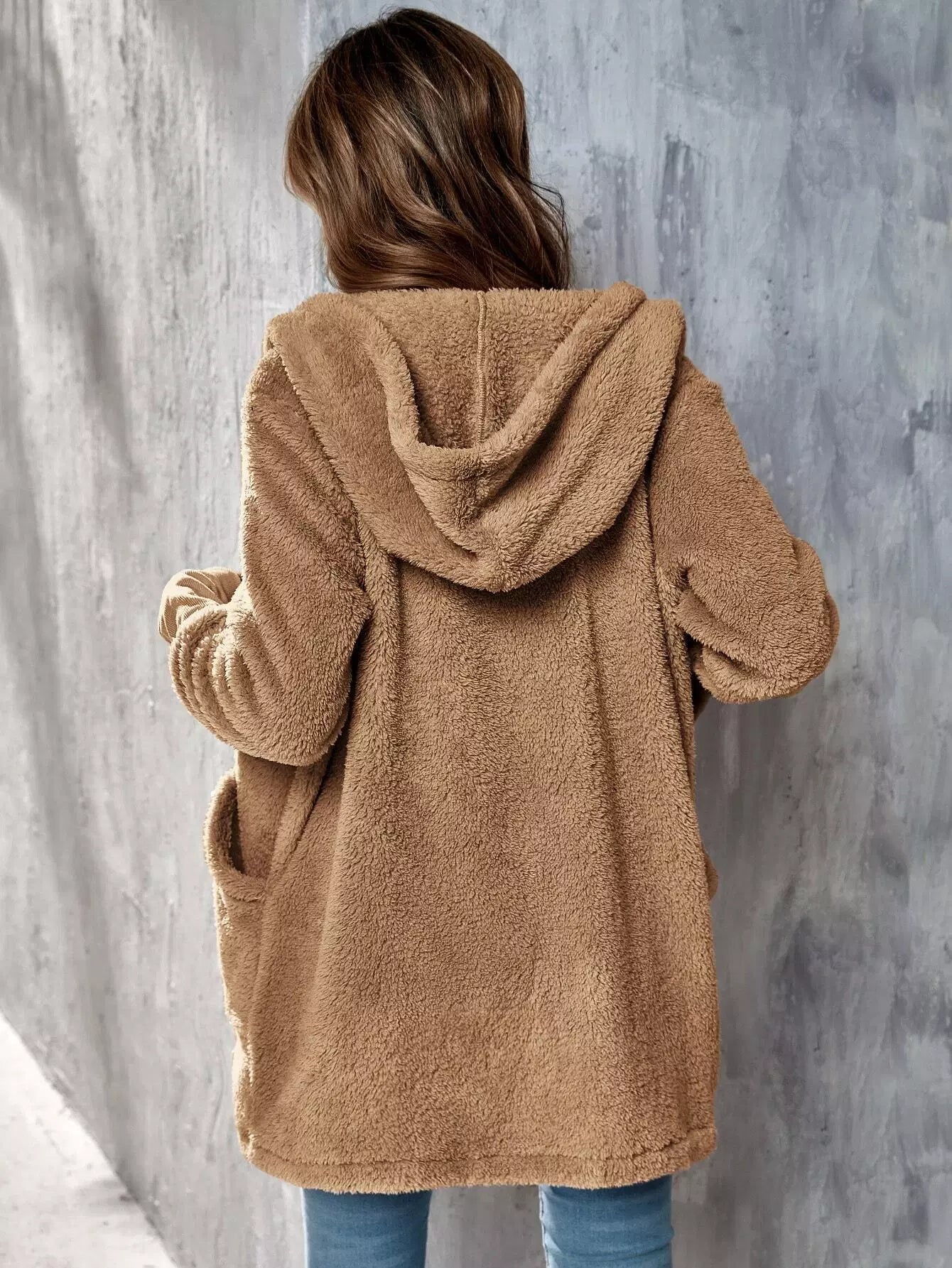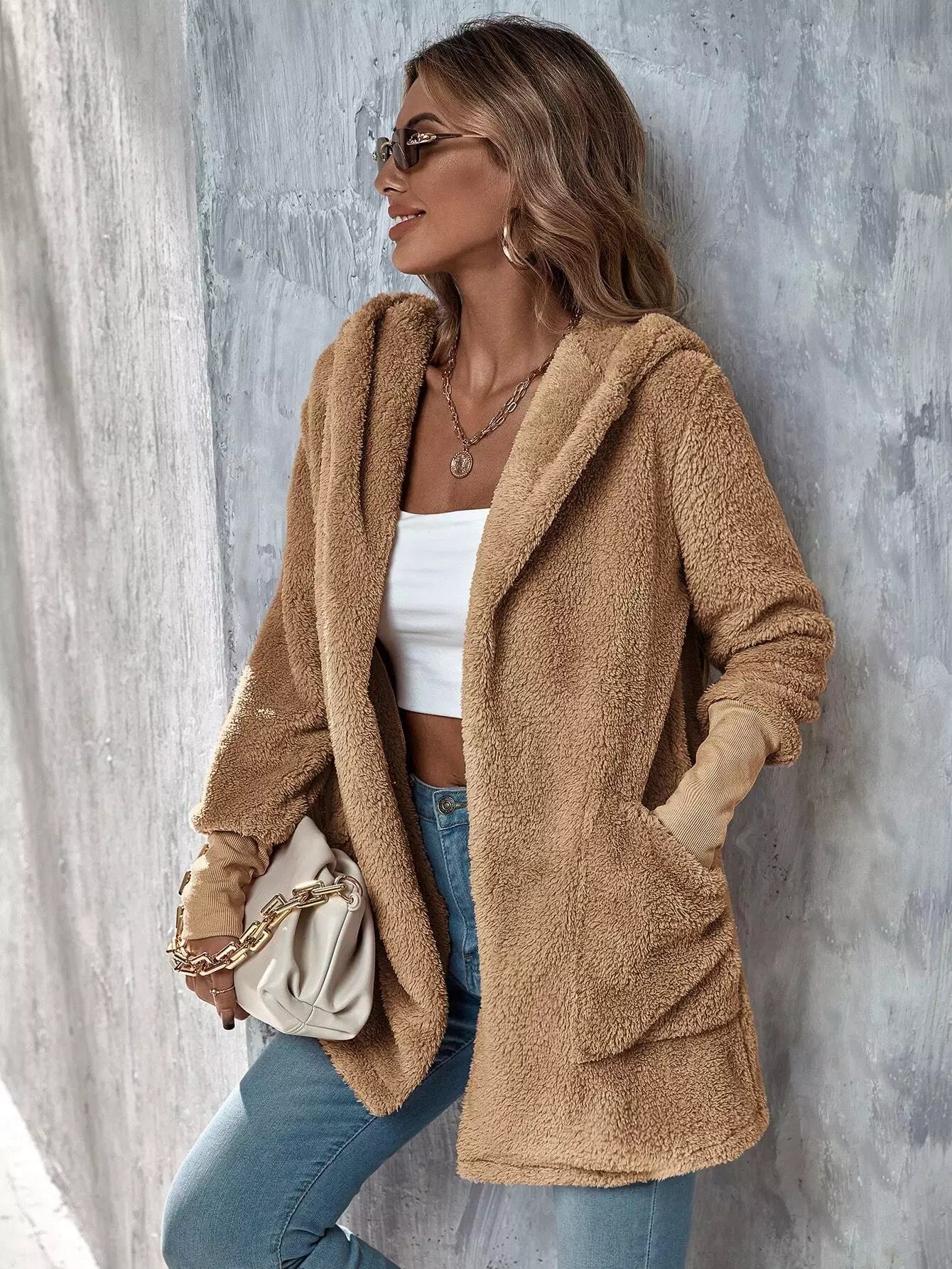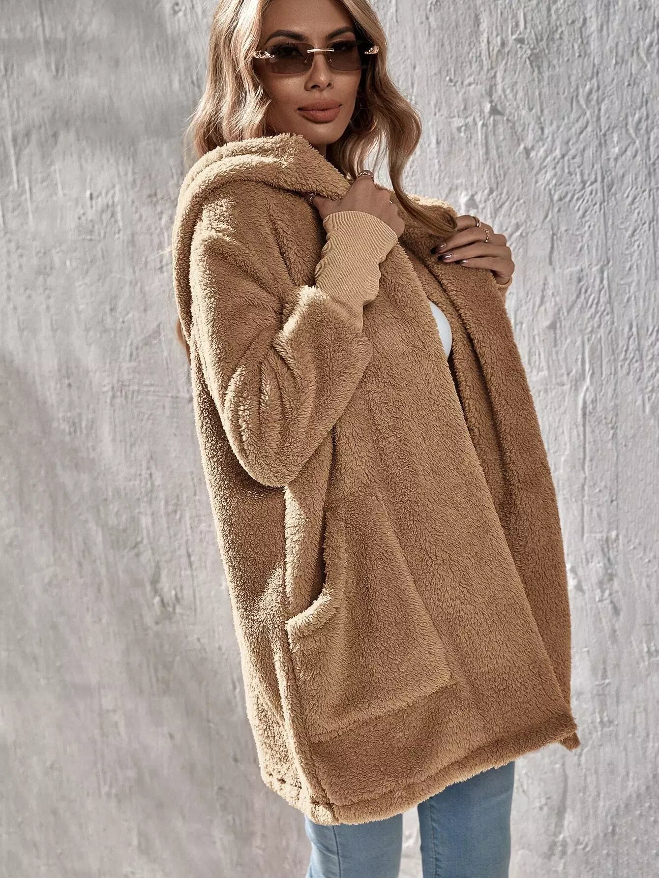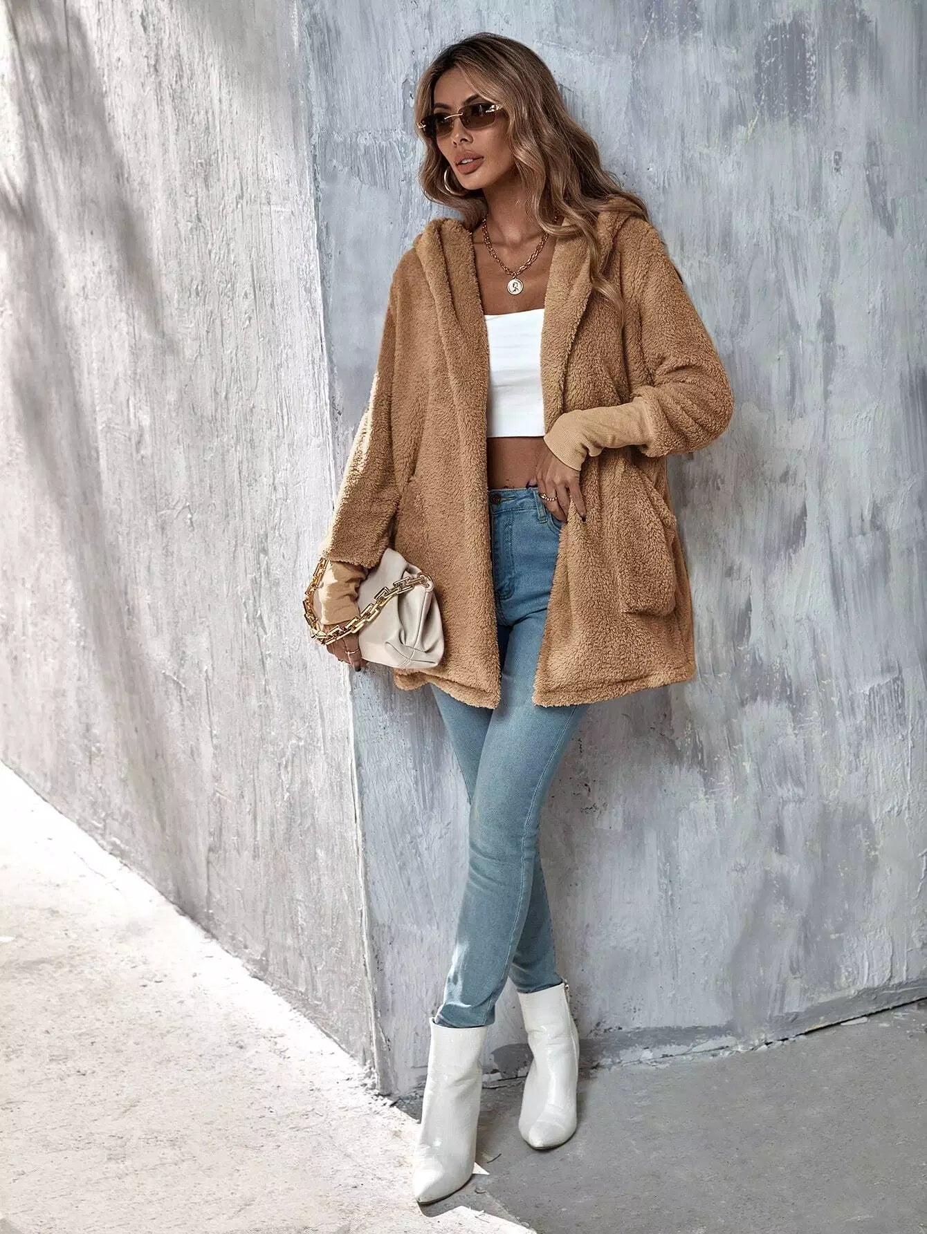 معطف بغطاء رأس مفتوح من الأمام بغطاء رأس مفتوح الجيب
