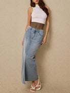 Poelle Poeselle Retro Denim Skirt High Waist Slit Hip Skirt, Denim, Blue Denim Skirt, Going Out Clothing,