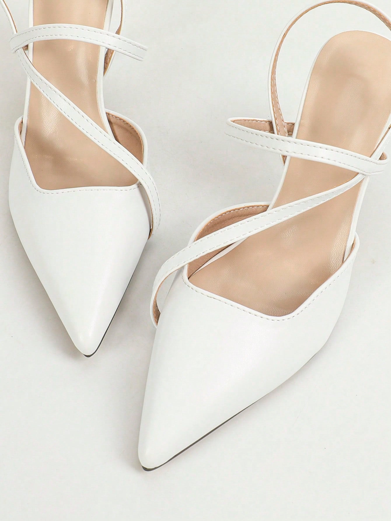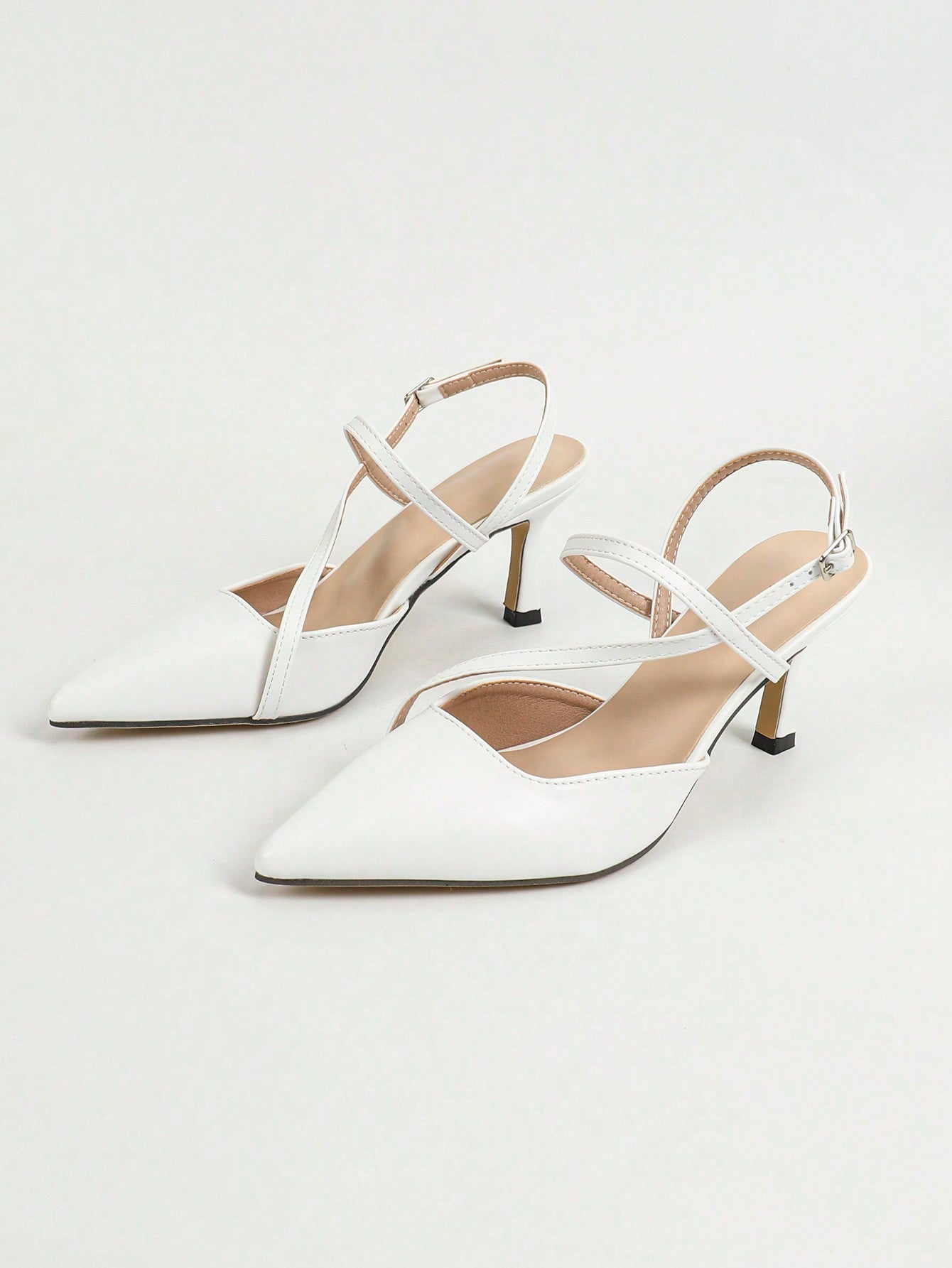 women Pointed Toe Cutout Low Heel Slide Sandals