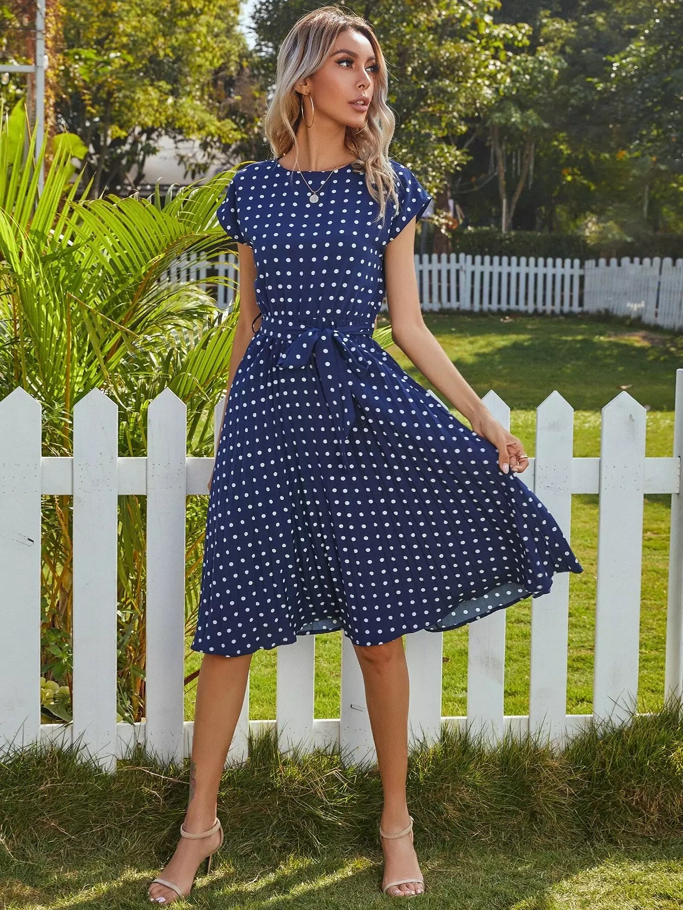 فستان منقط على شكل حرف A بدون حزام