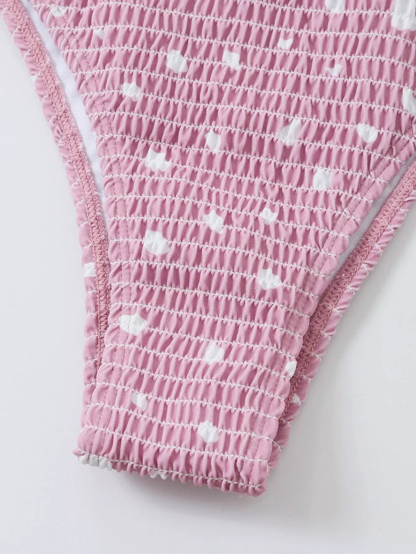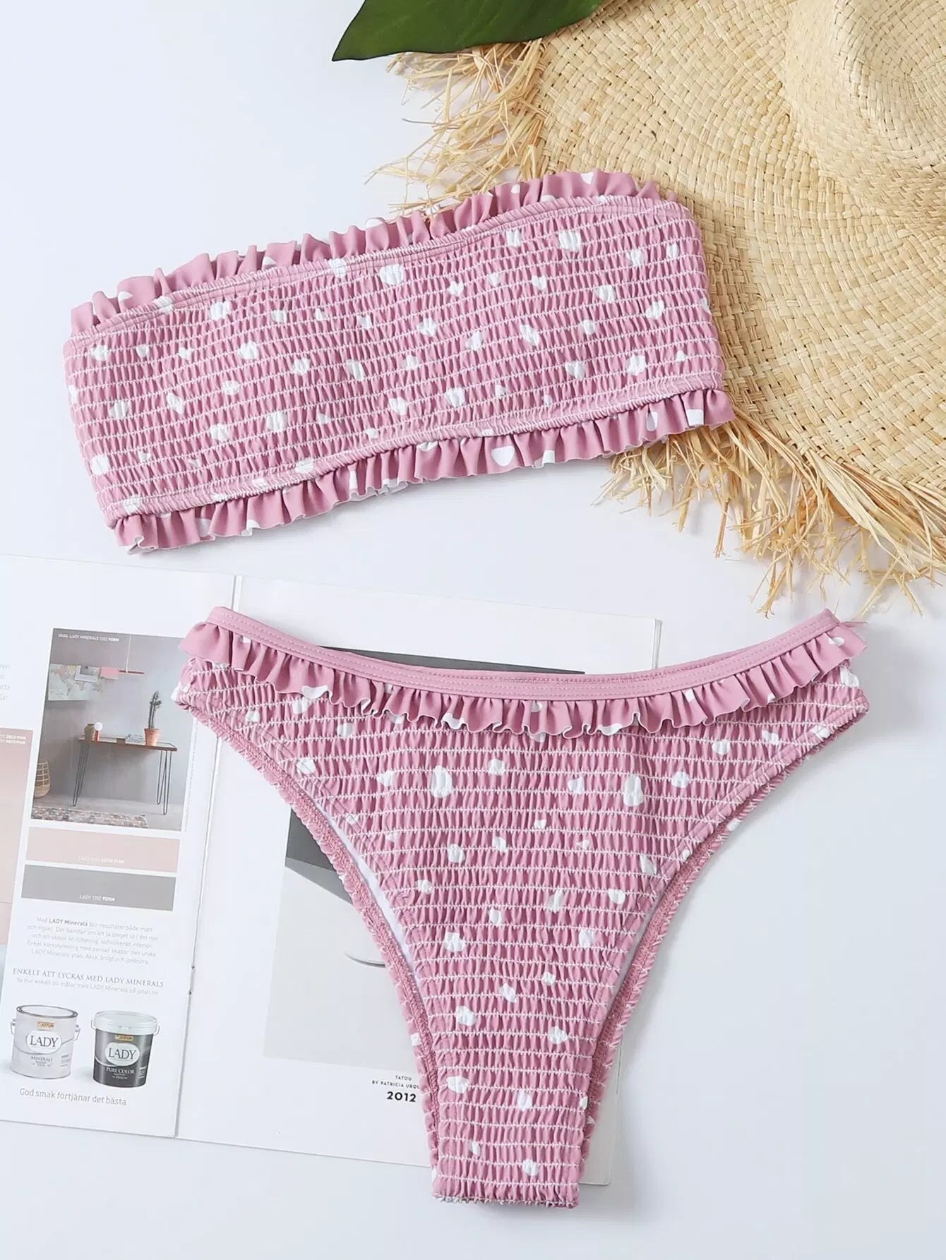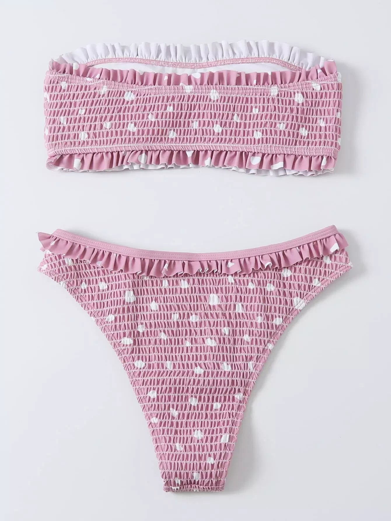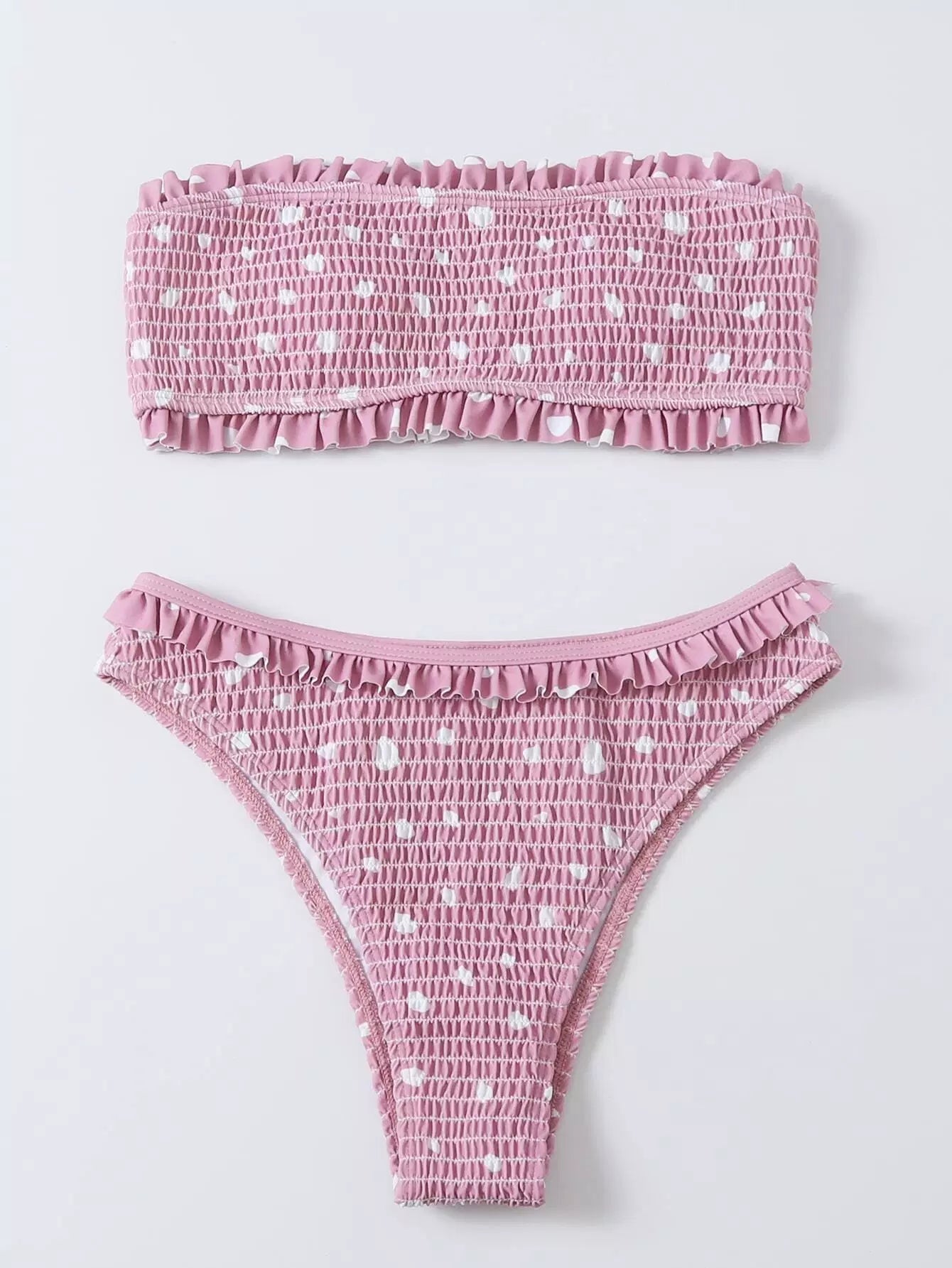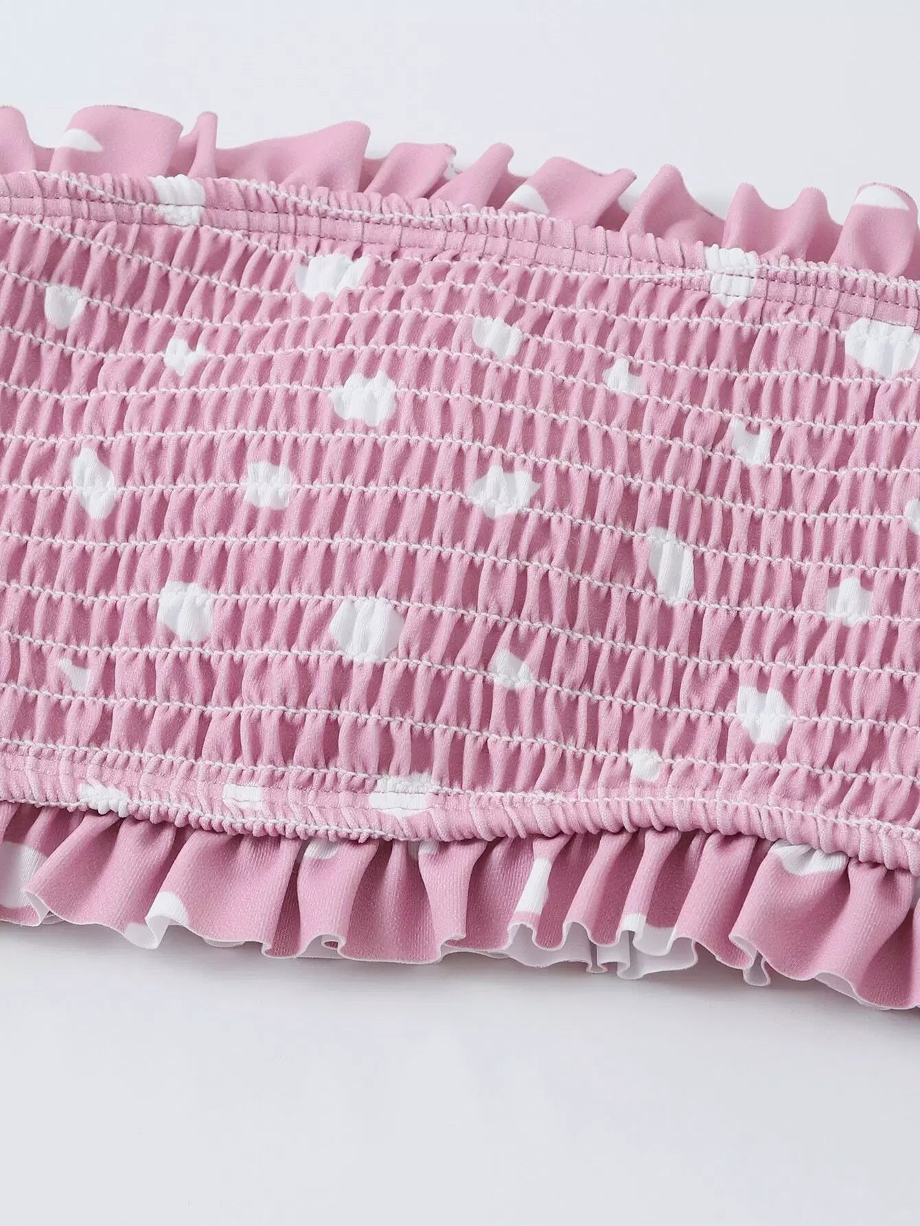بدلة سباحة بيكيني منقّطة منقطة مزينة بكشكش وعصابة