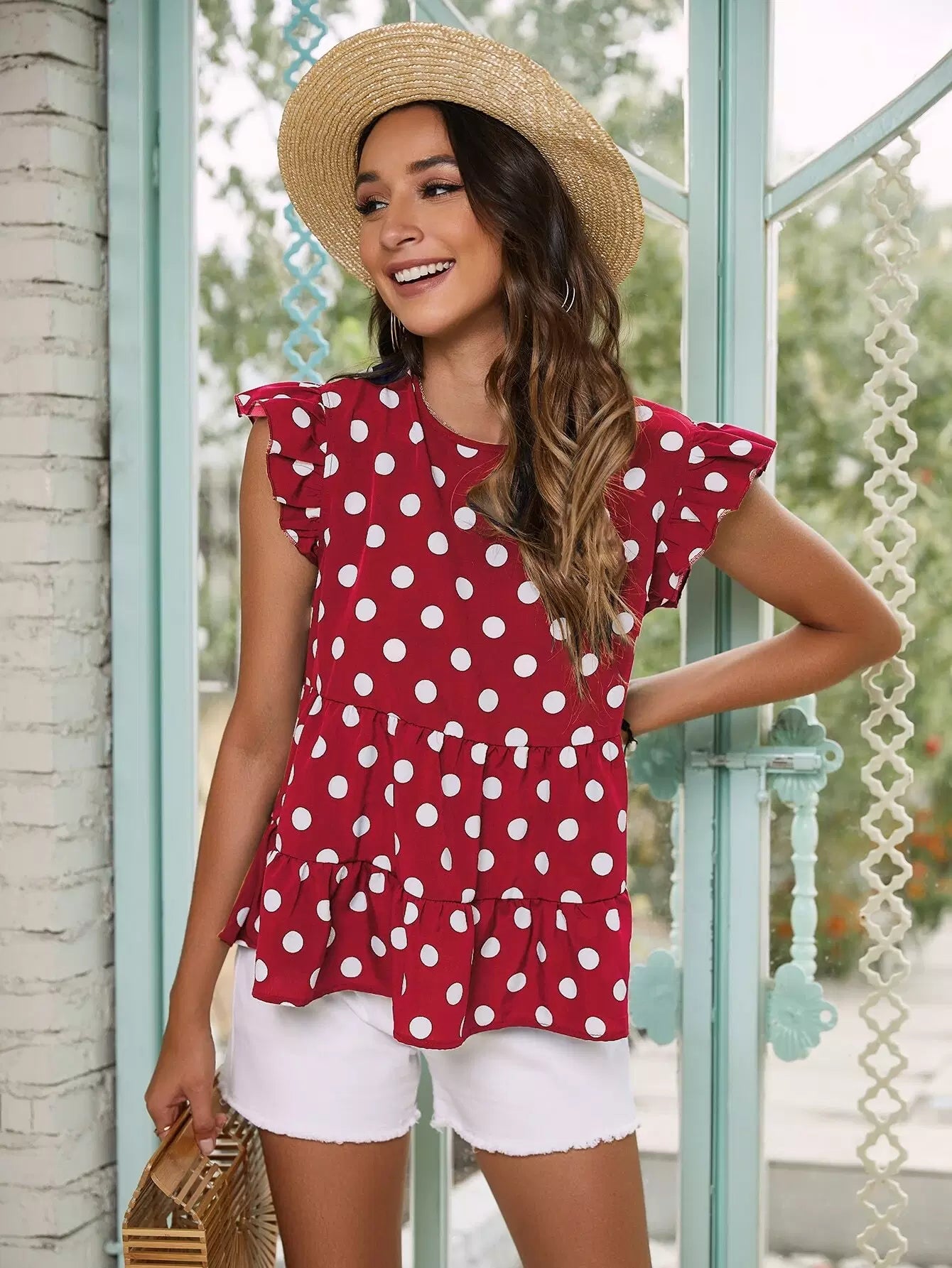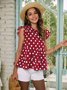 بلوزة بيبي دول منقطة مكشكشة ذات حواف مكشكشة