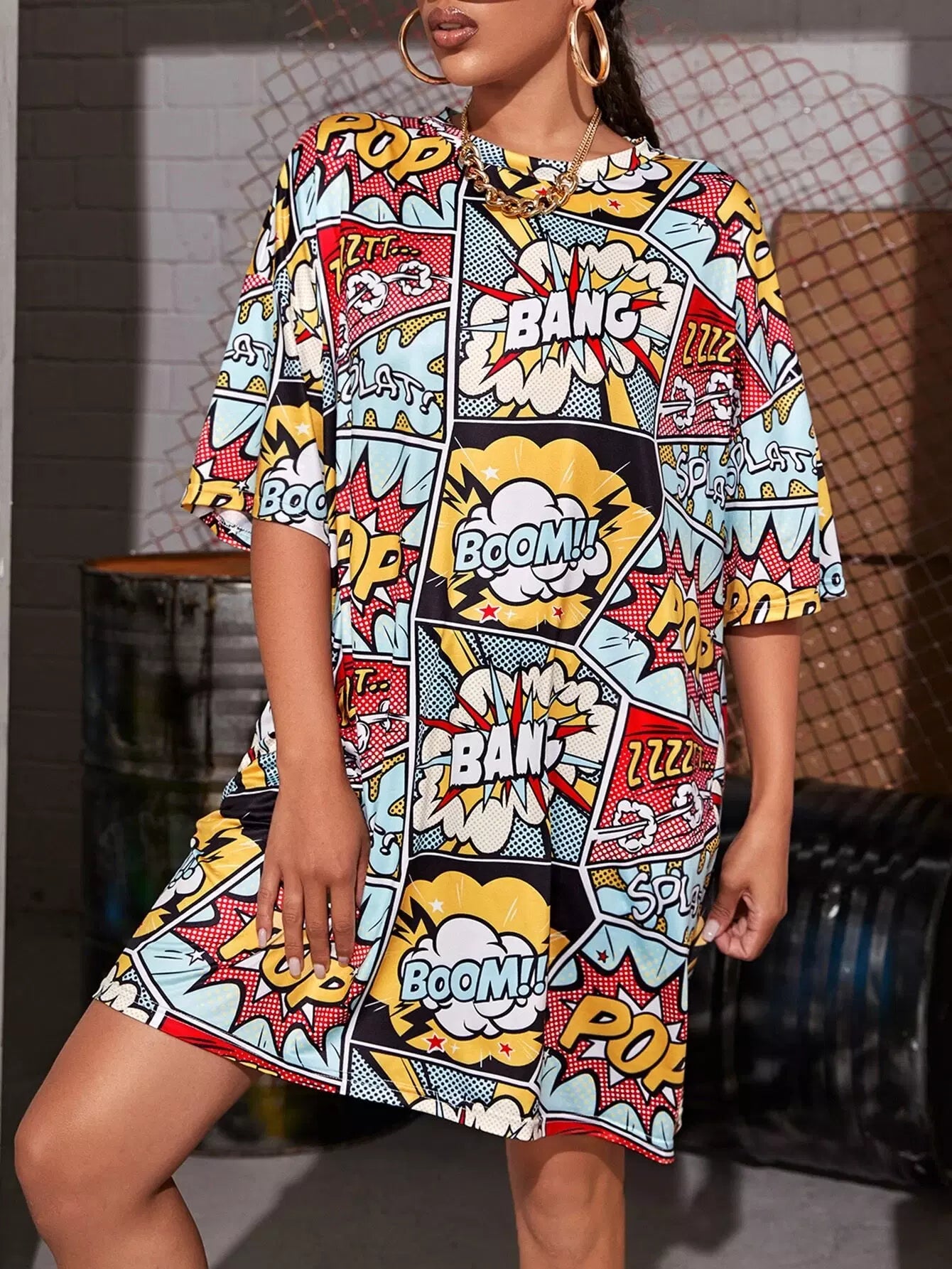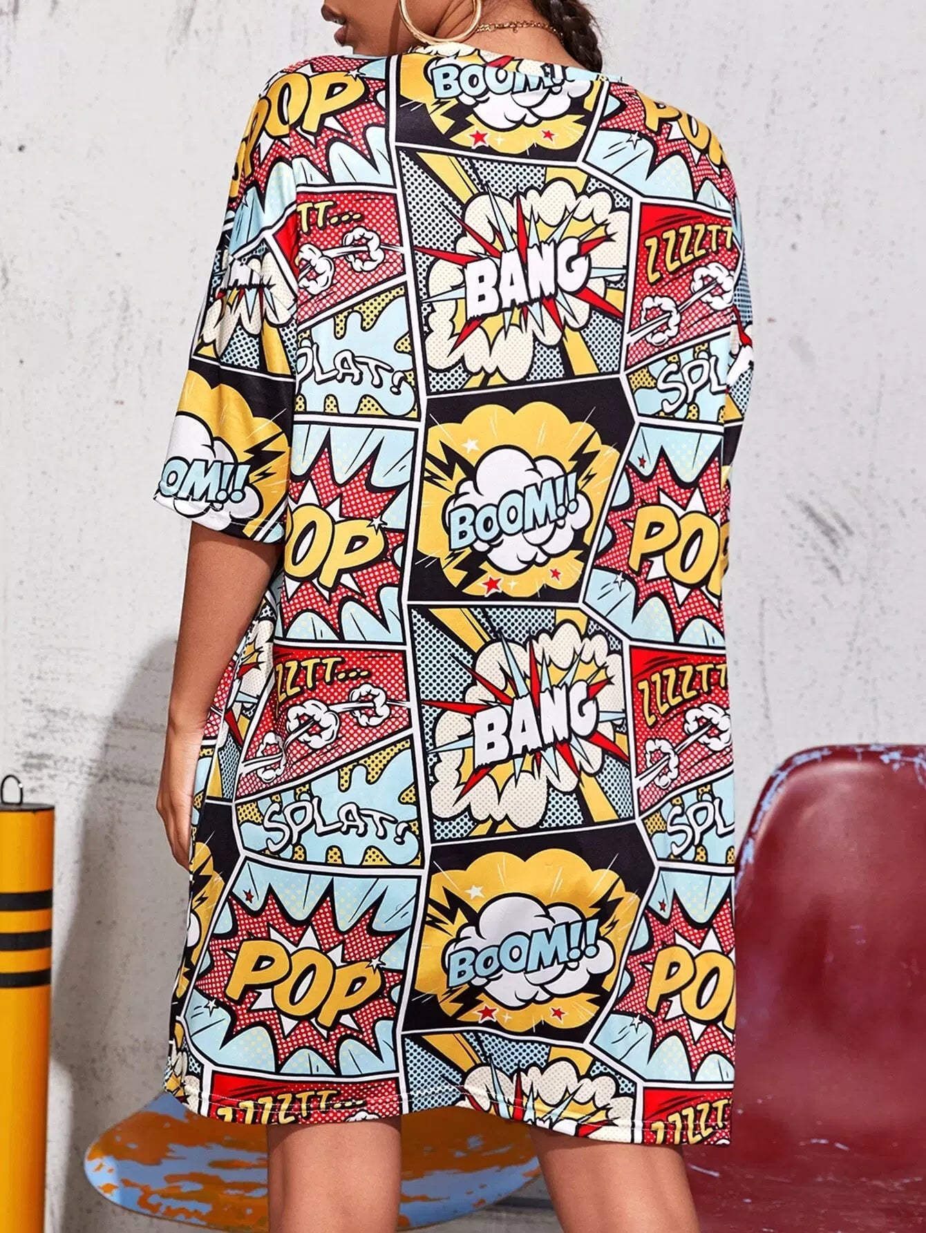 للنساء - تي شيرت طويل كبير الحجم بطباعة فن البوب