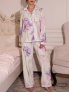 طقم بيجاما بأكمام طويلة وياقة مطبوعة - ملابس خريفية وشتوية بتفاصيل مريحة وأنيقة