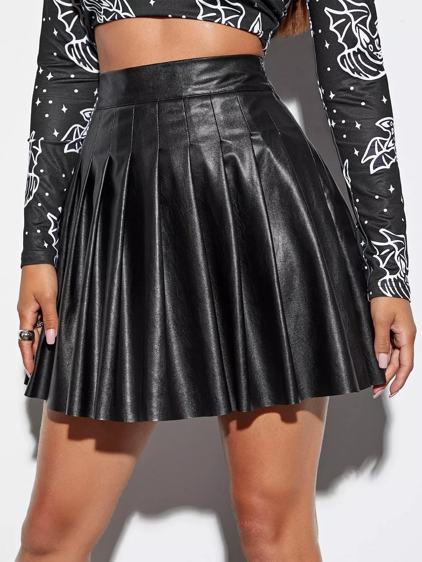 تنورة بثنيات من جلد البولي يوريثان