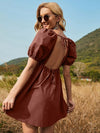 فستان مكشوف الظهر بأكمام منتفخة