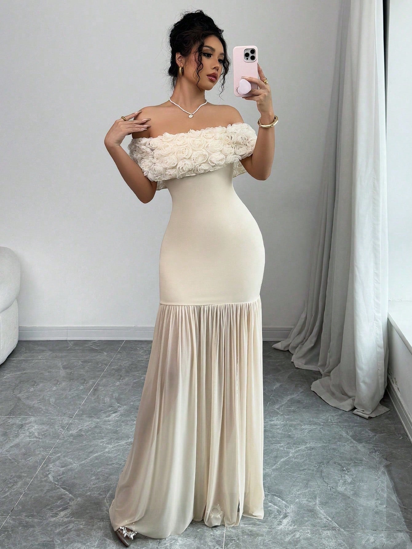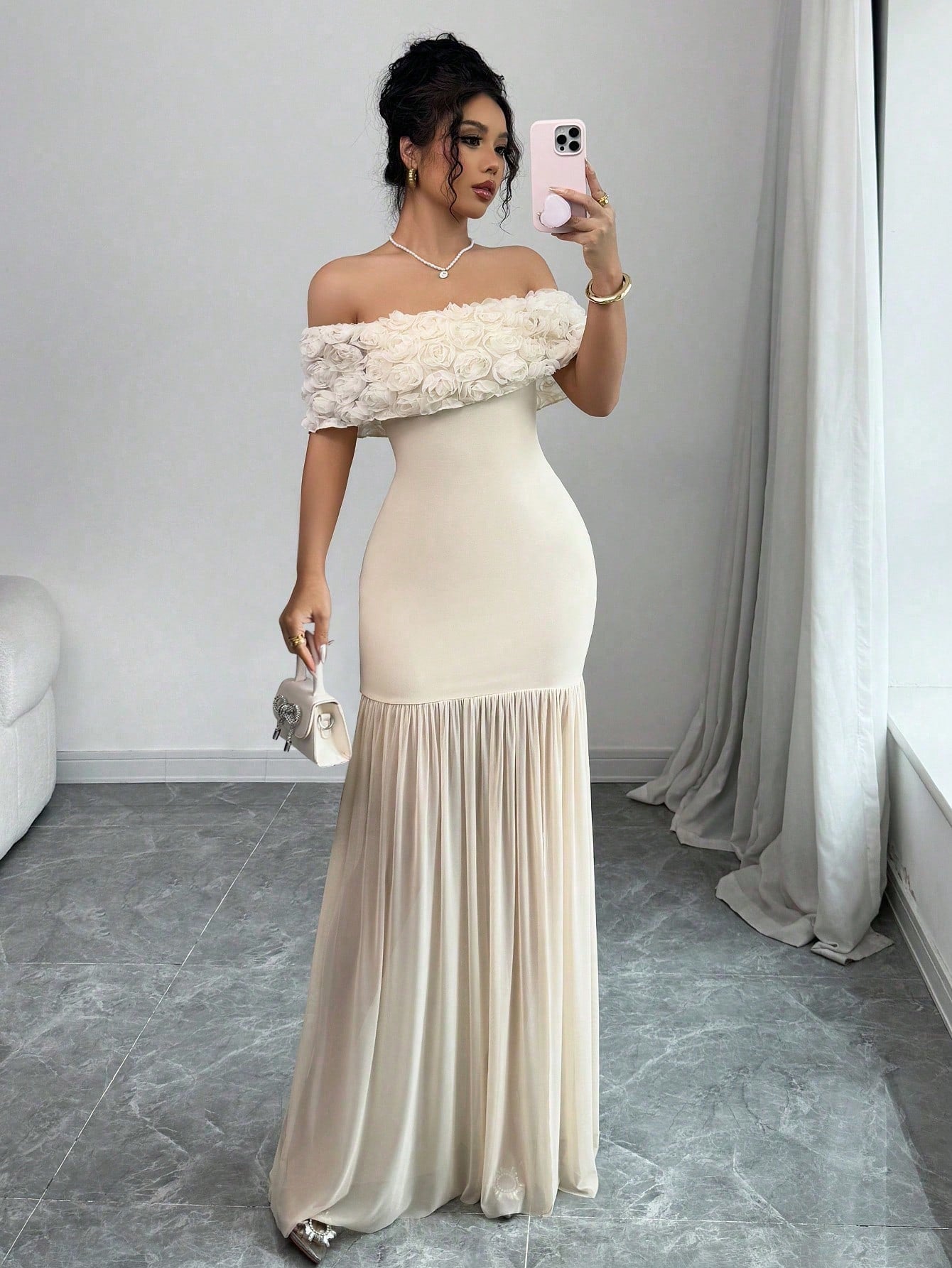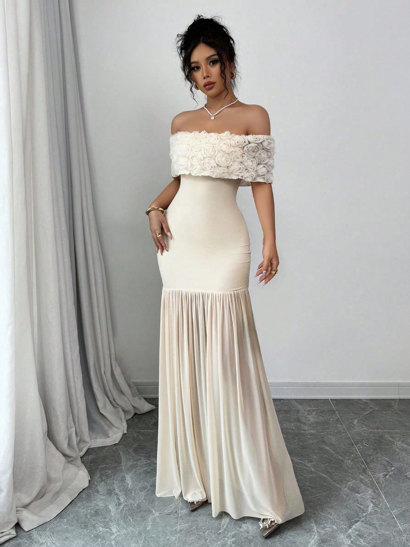 فستان رافريزا الطويل ذو الأكتاف المكشوفة على الطراز الفرنسي