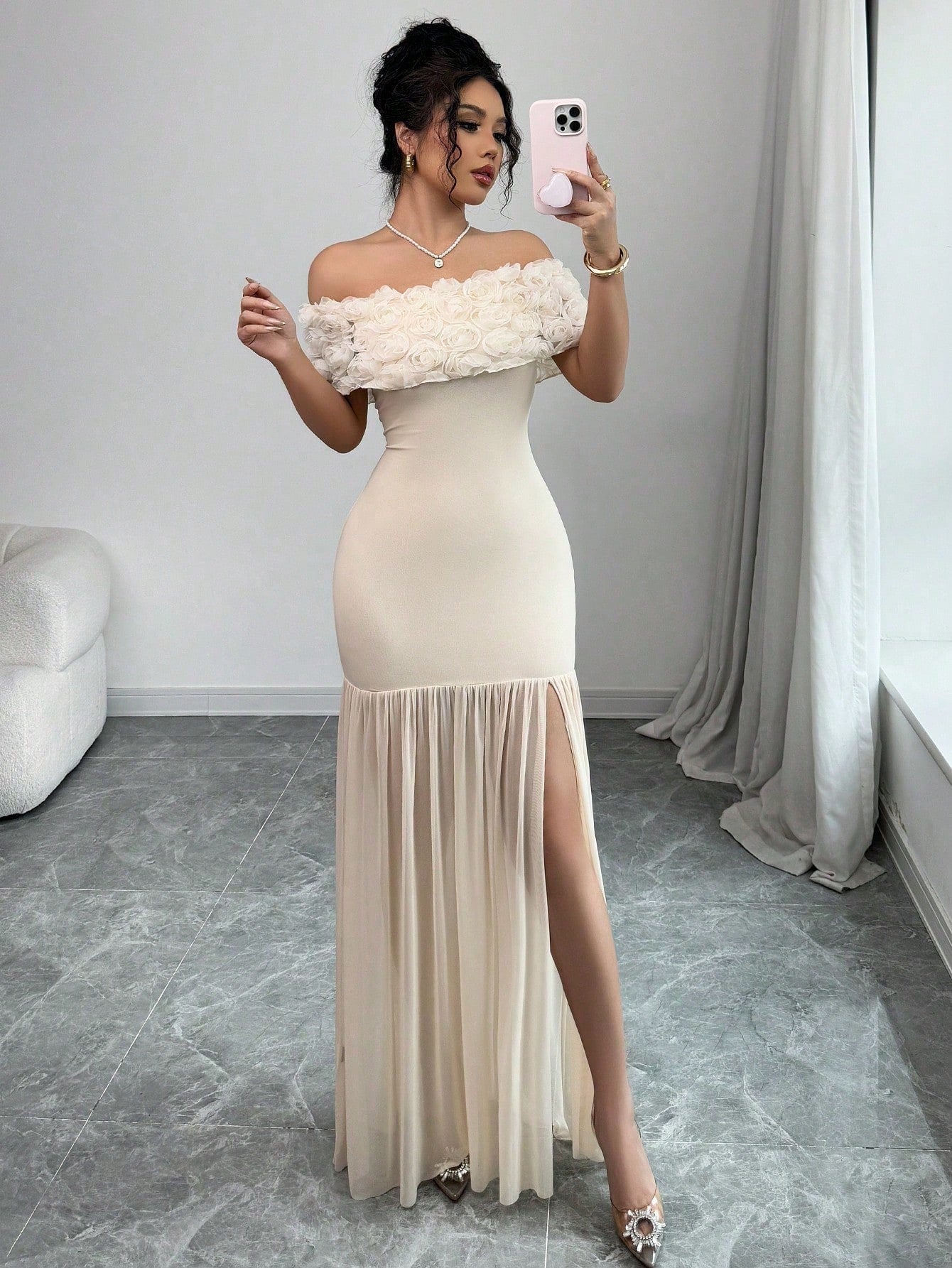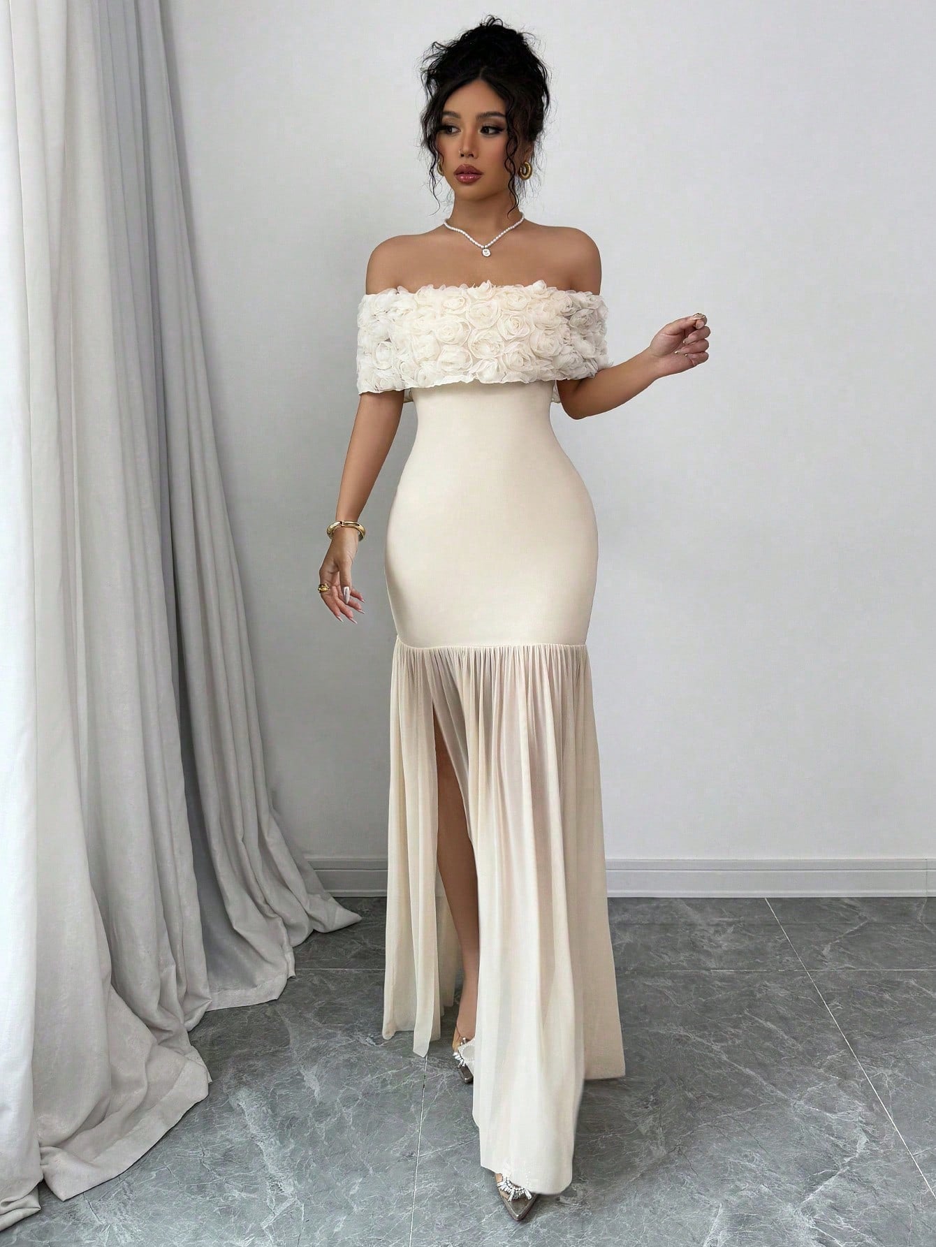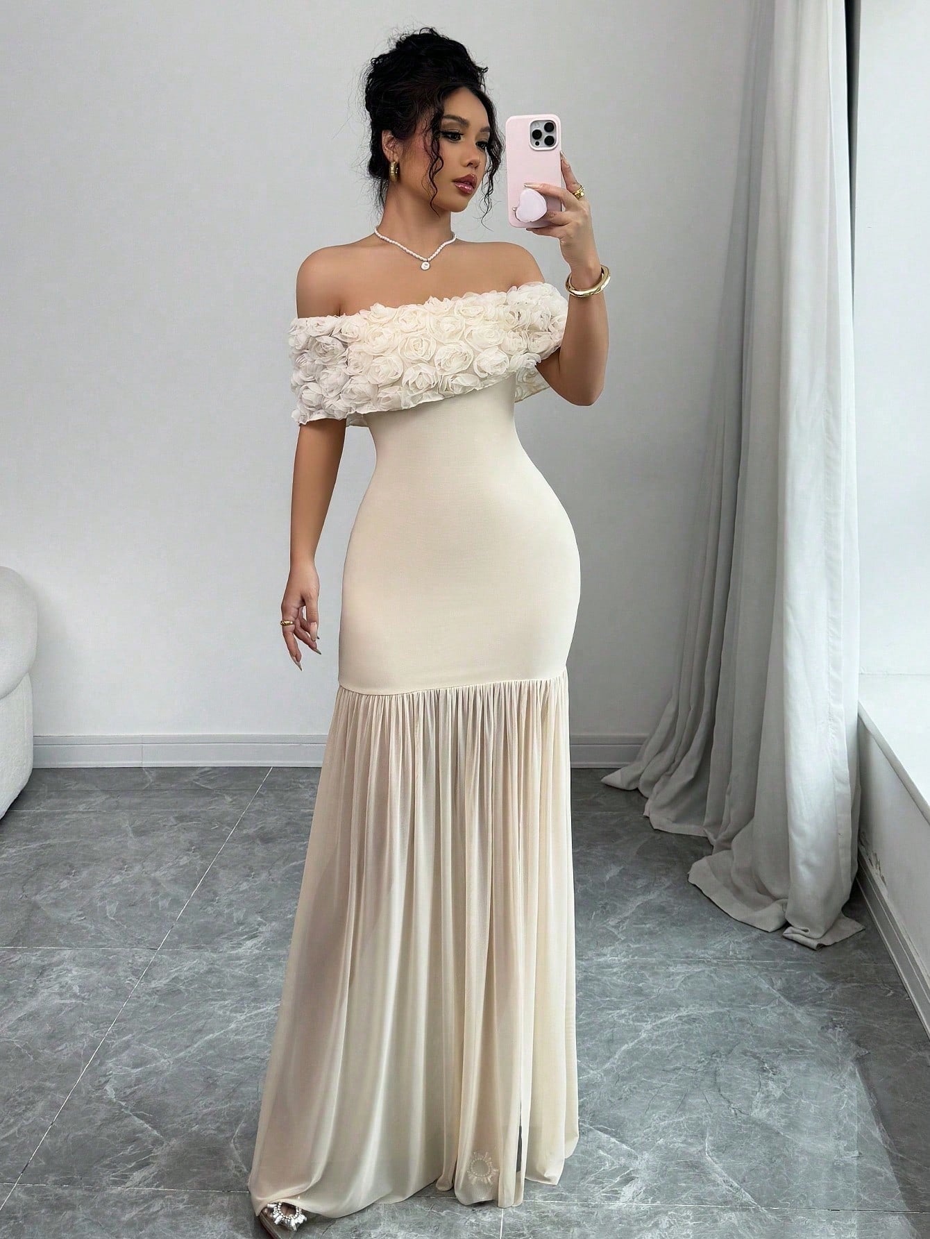 فستان رافريزا الطويل ذو الأكتاف المكشوفة على الطراز الفرنسي
