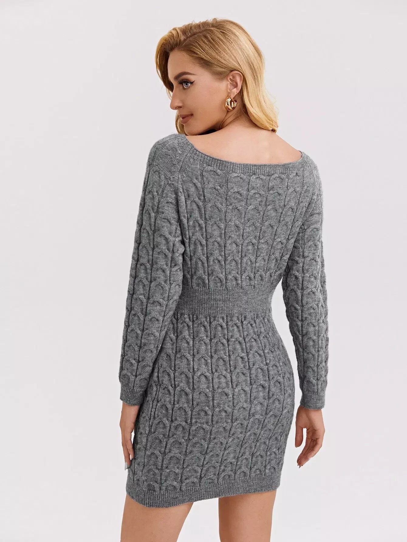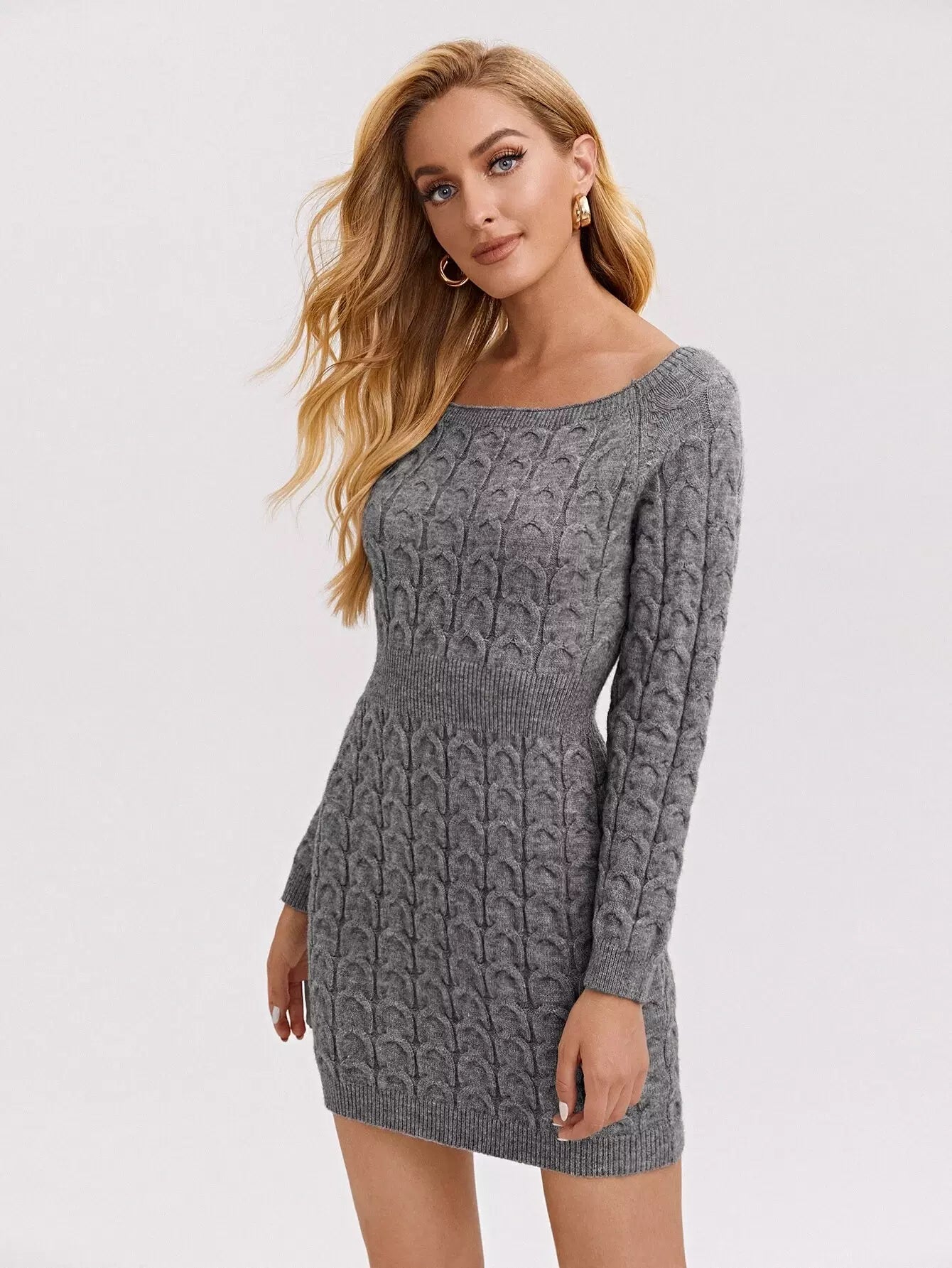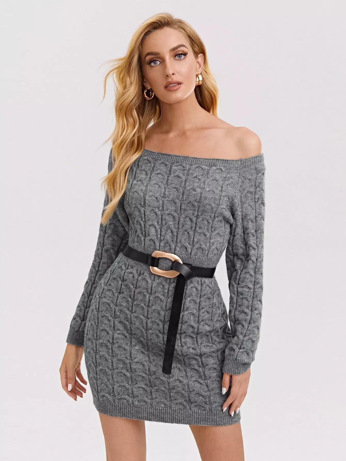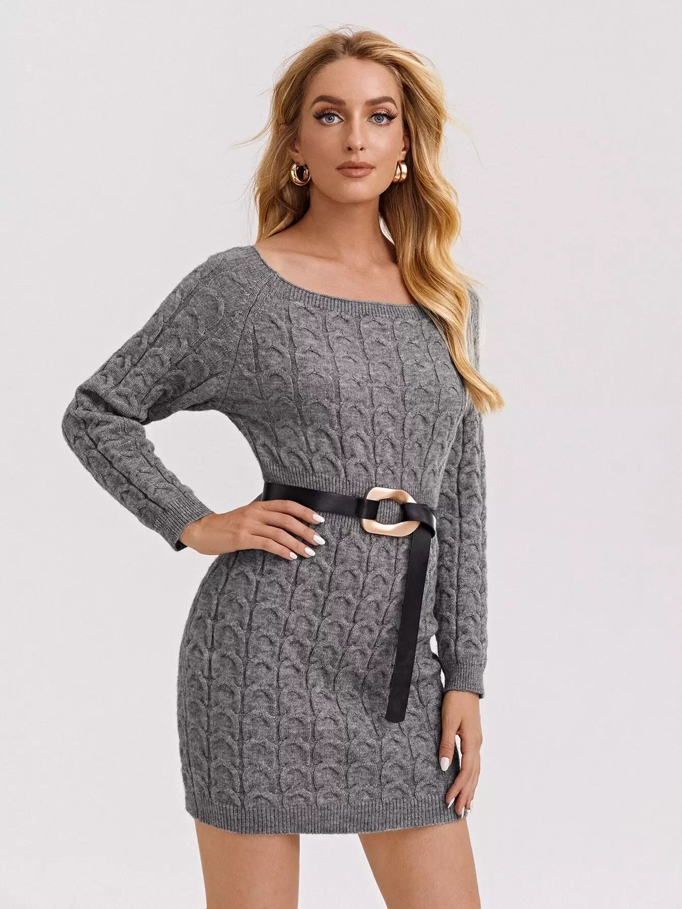 فستان بأكمام راجلان بأكمام كابل محبوكة بدون حزام