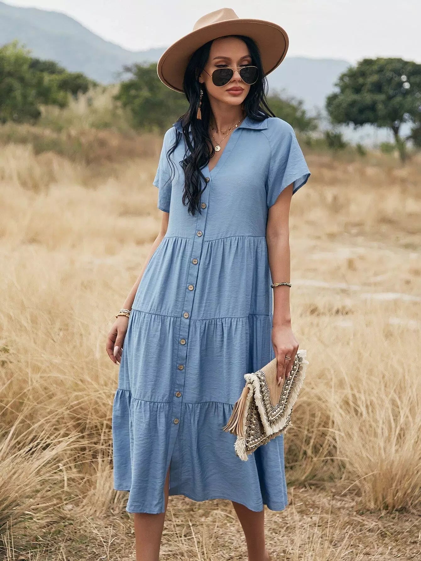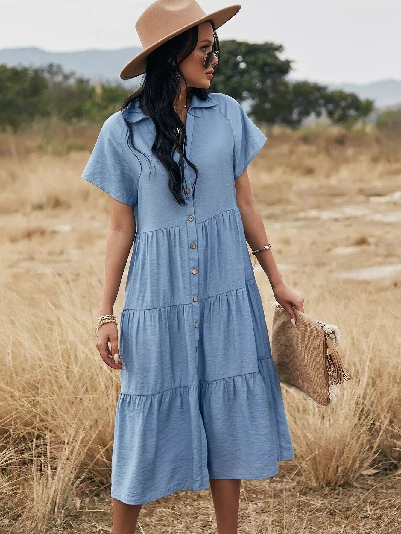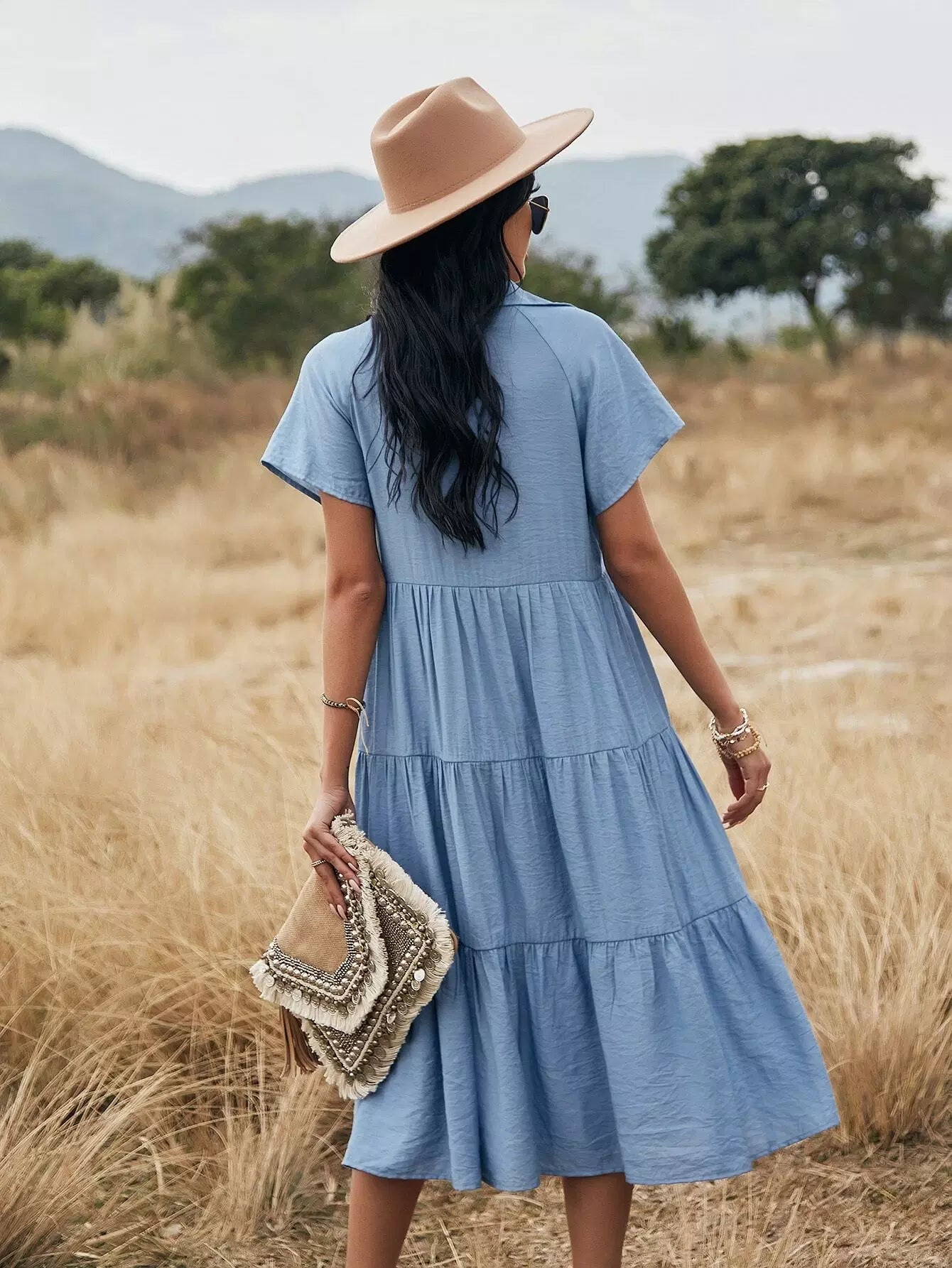 فستان بأكمام راجلان بحاشية منفوشة بأكمام منفوشة