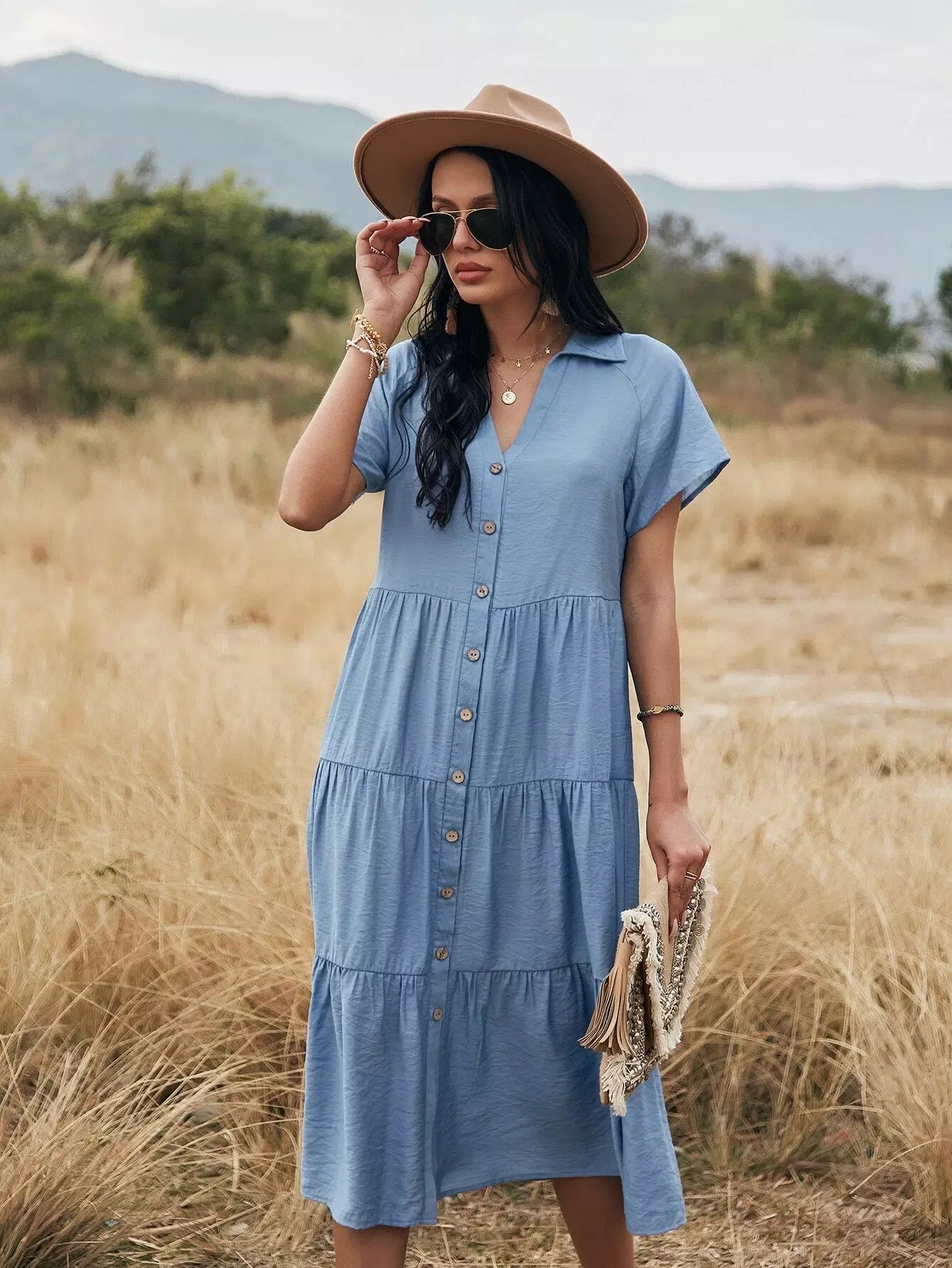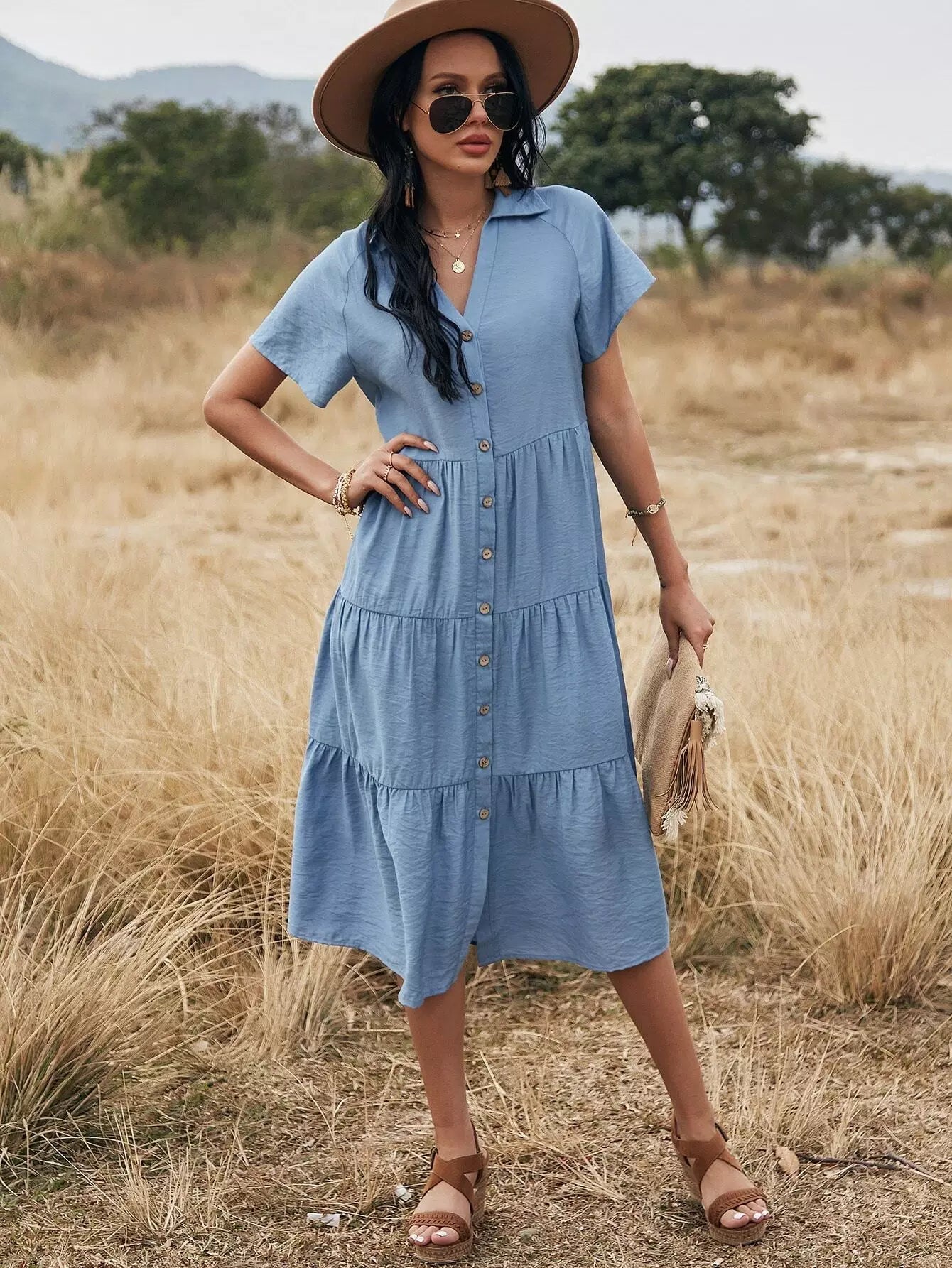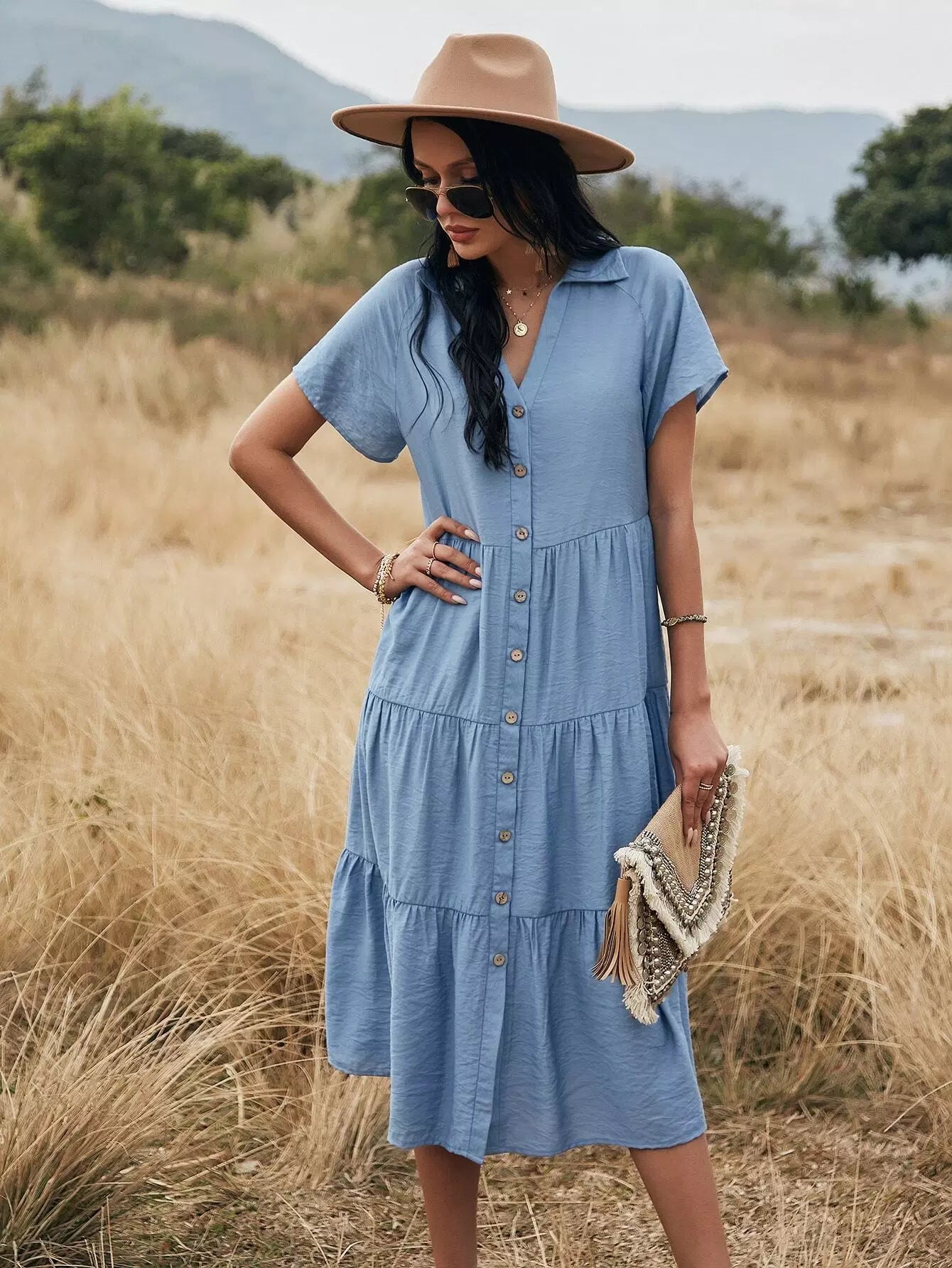 فستان بأكمام راجلان بحاشية منفوشة بأكمام منفوشة