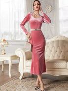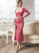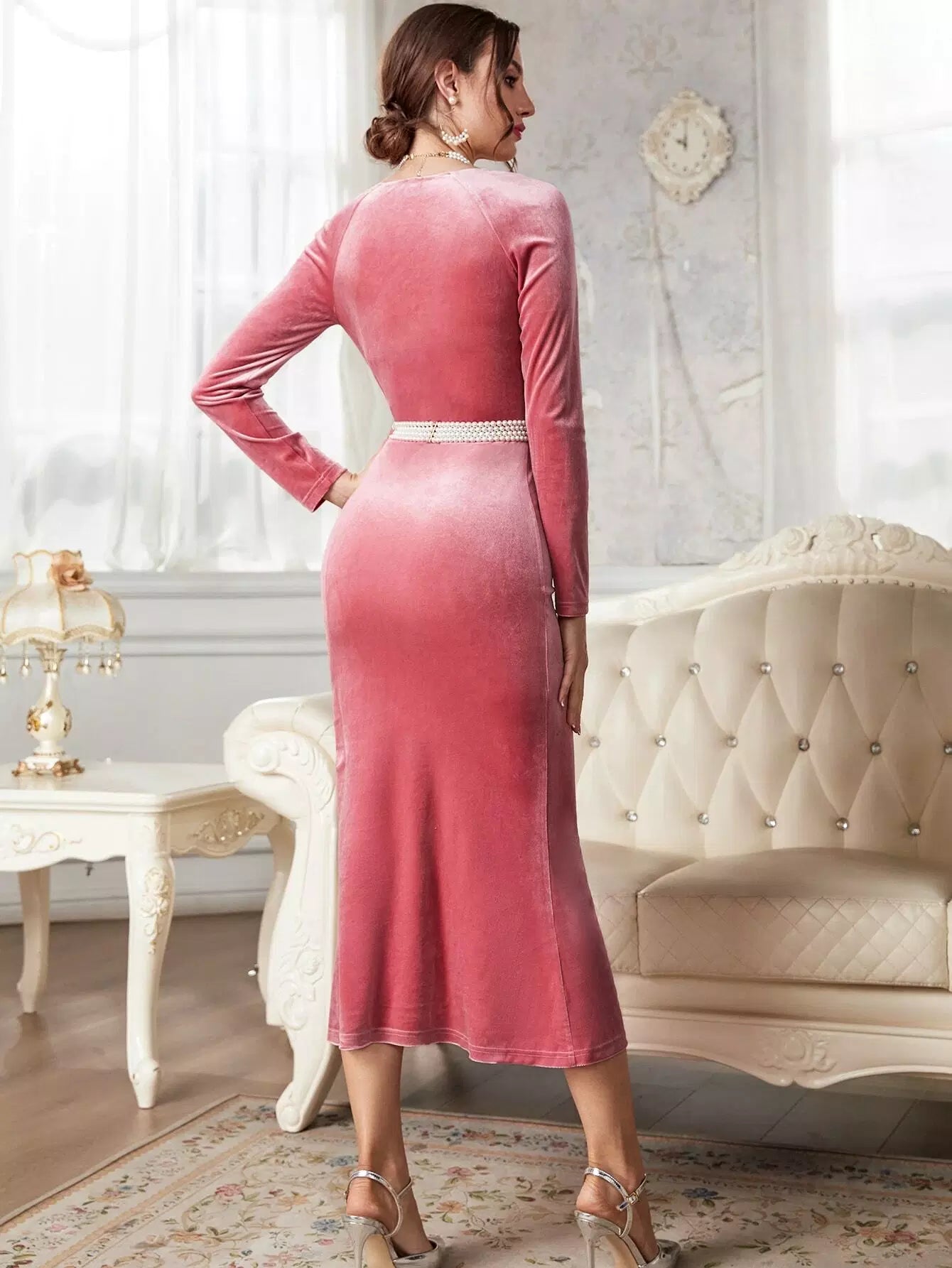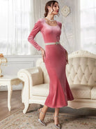 فستان مخملي بأكمام راجلان بحاشية حورية البحر بدون حزام
