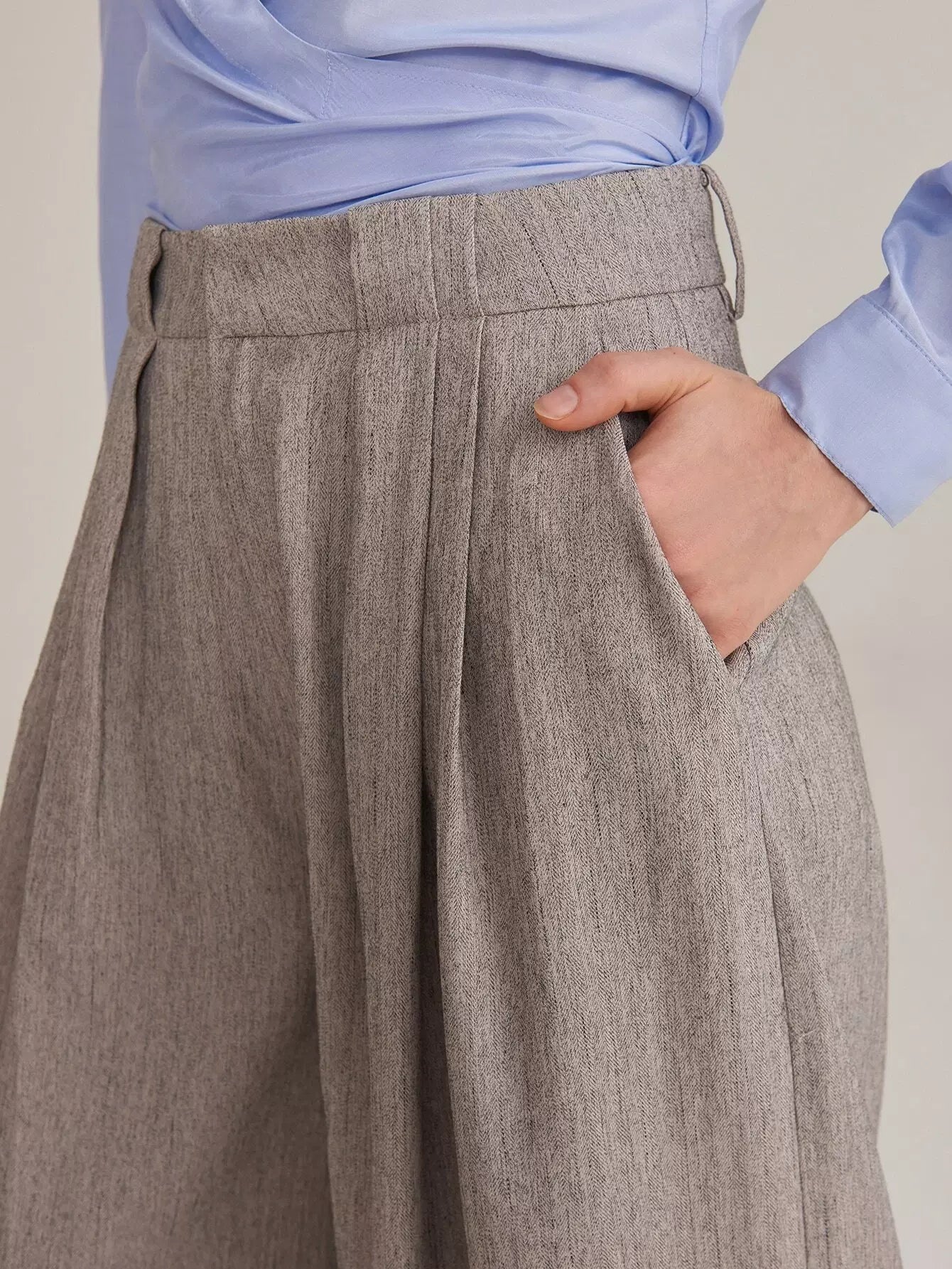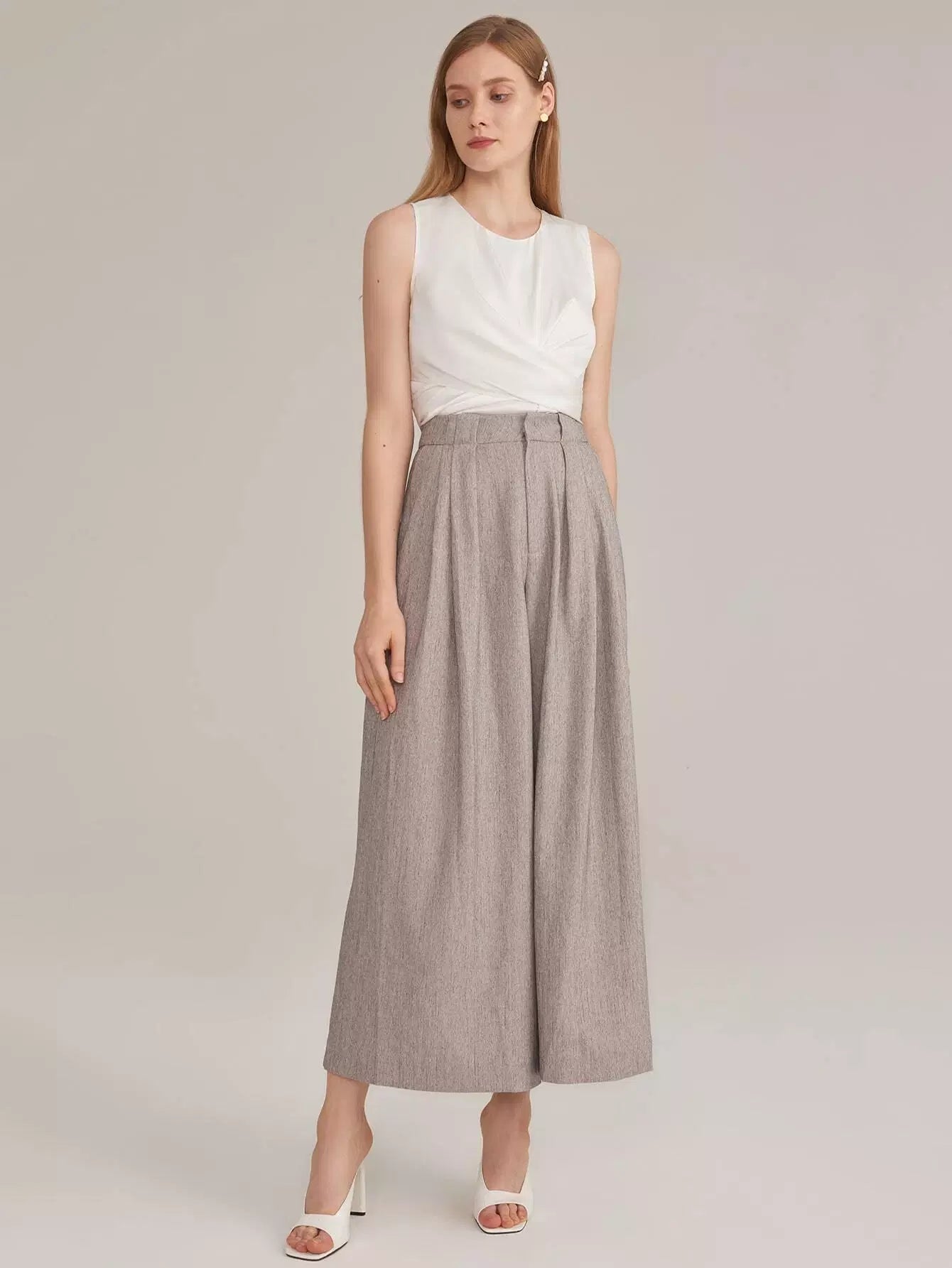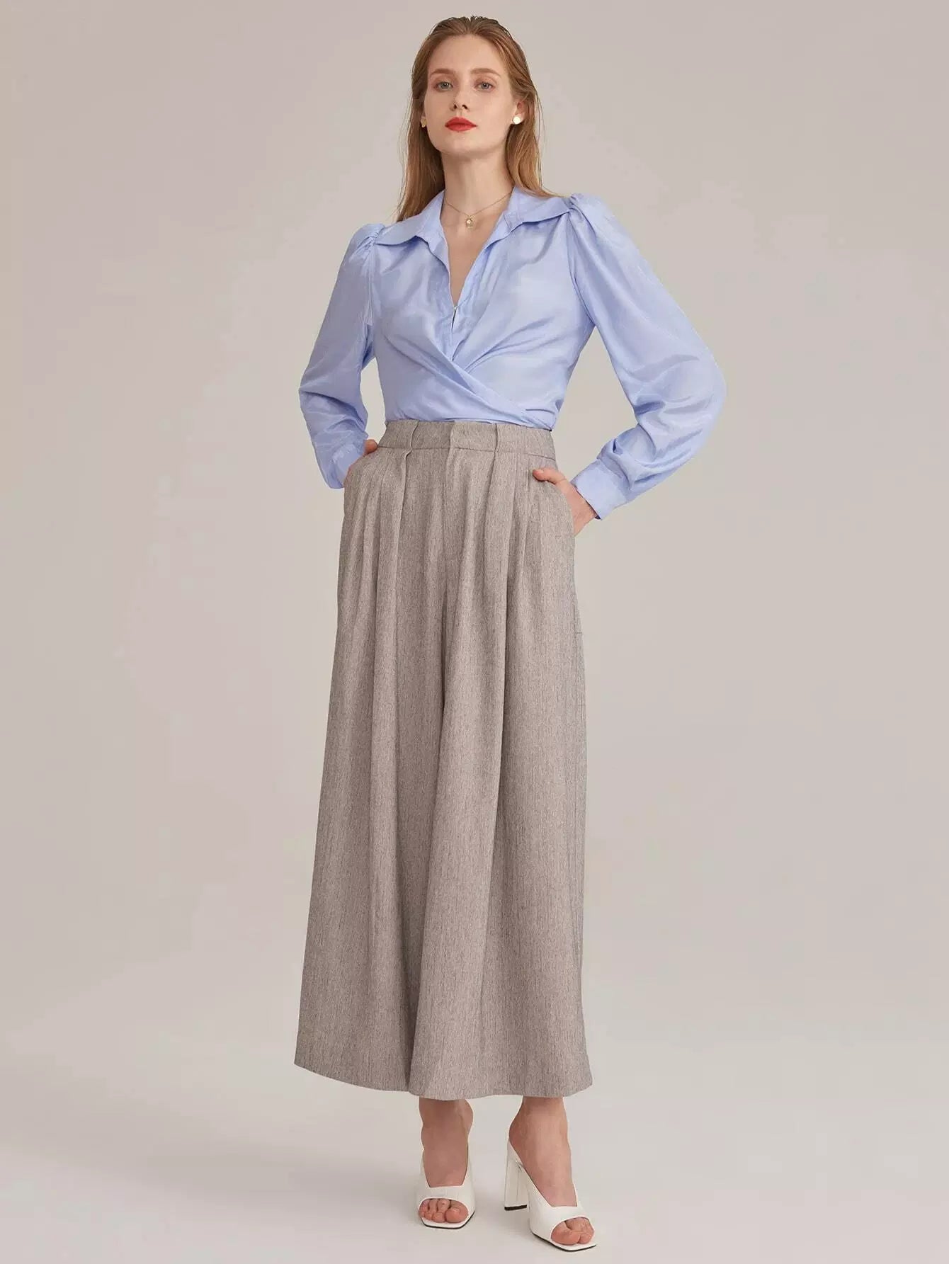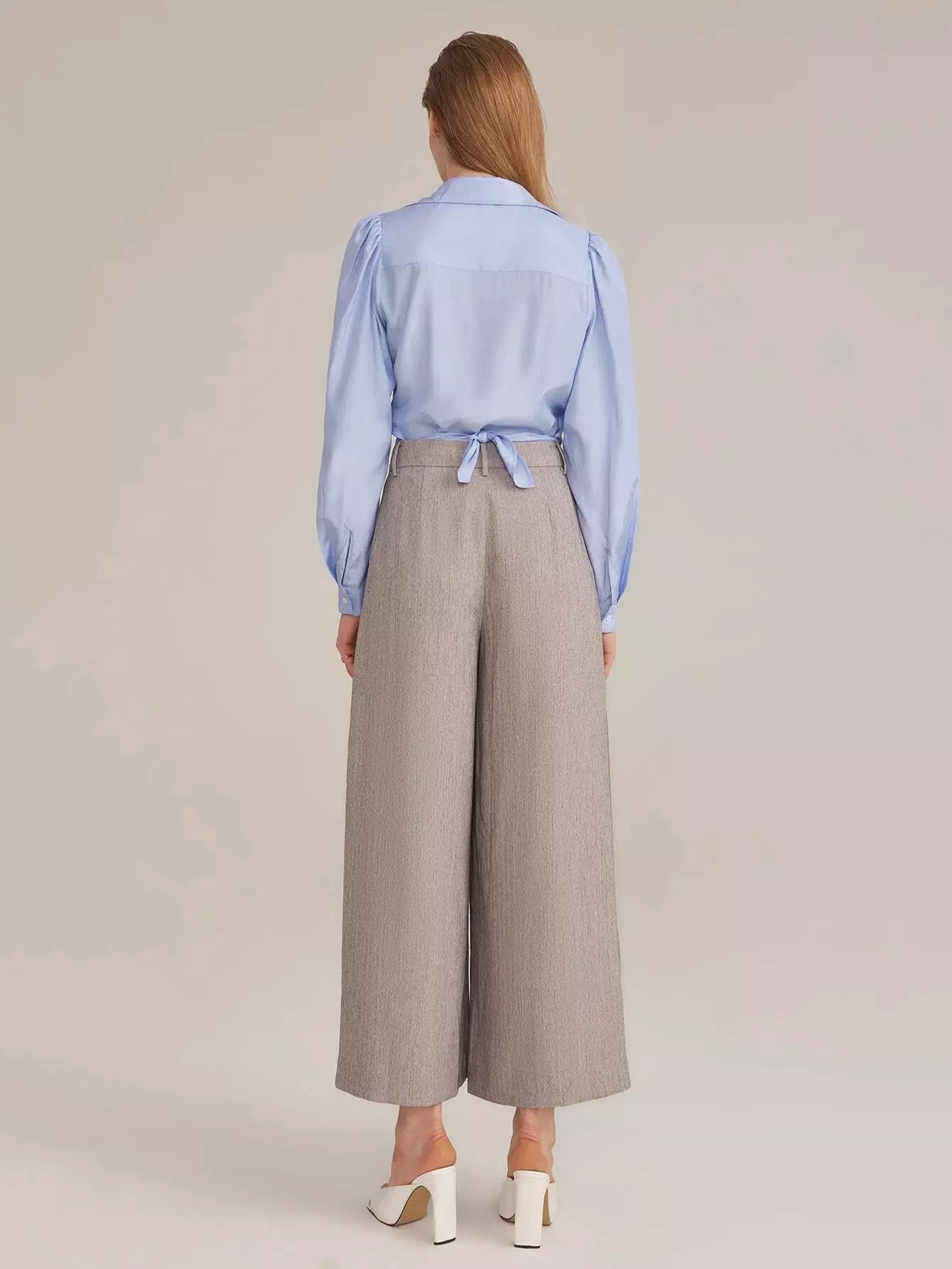 بنطلون رايون مطوي من الحرير الصناعي مطوي بطيات بالازو