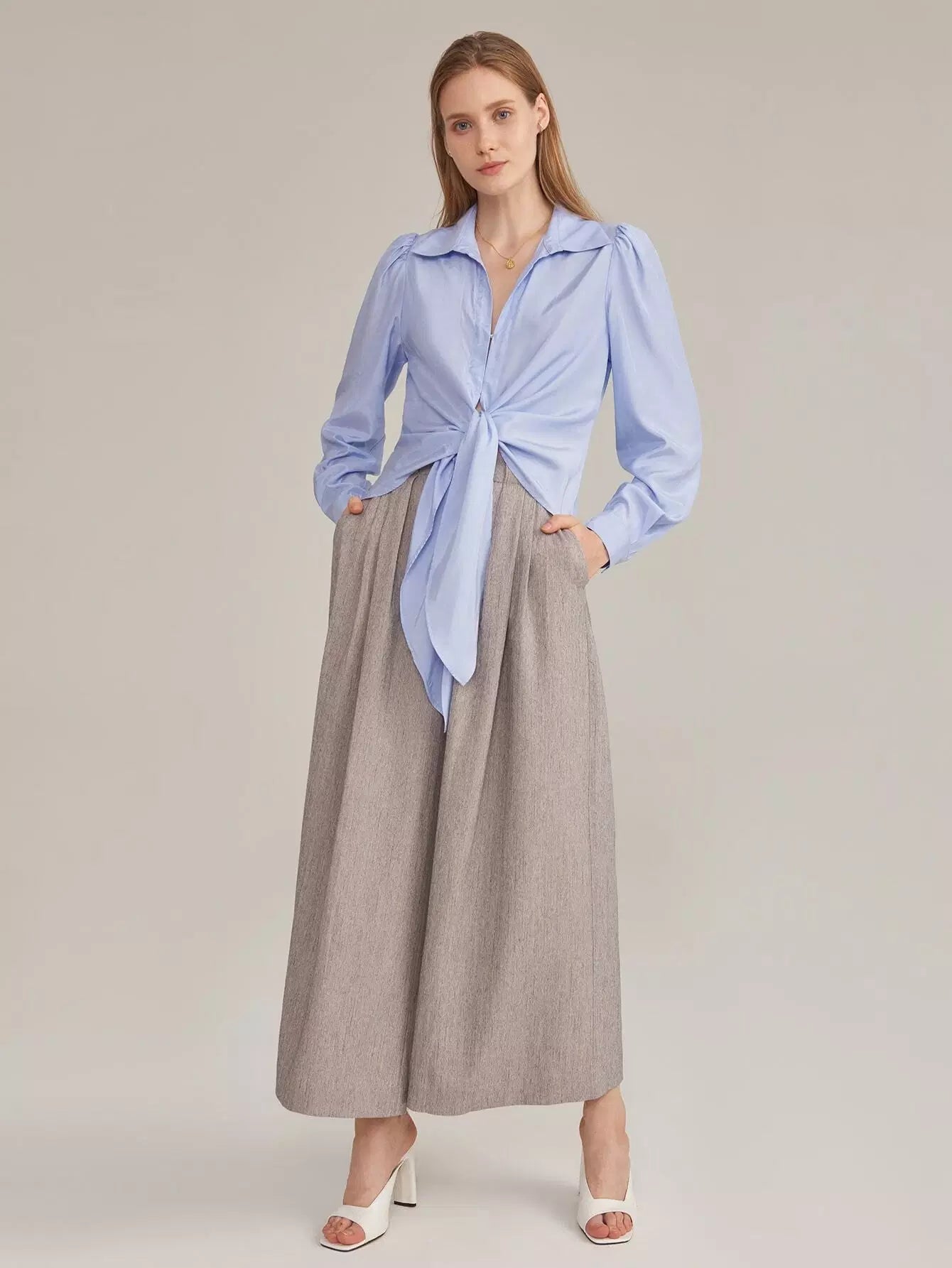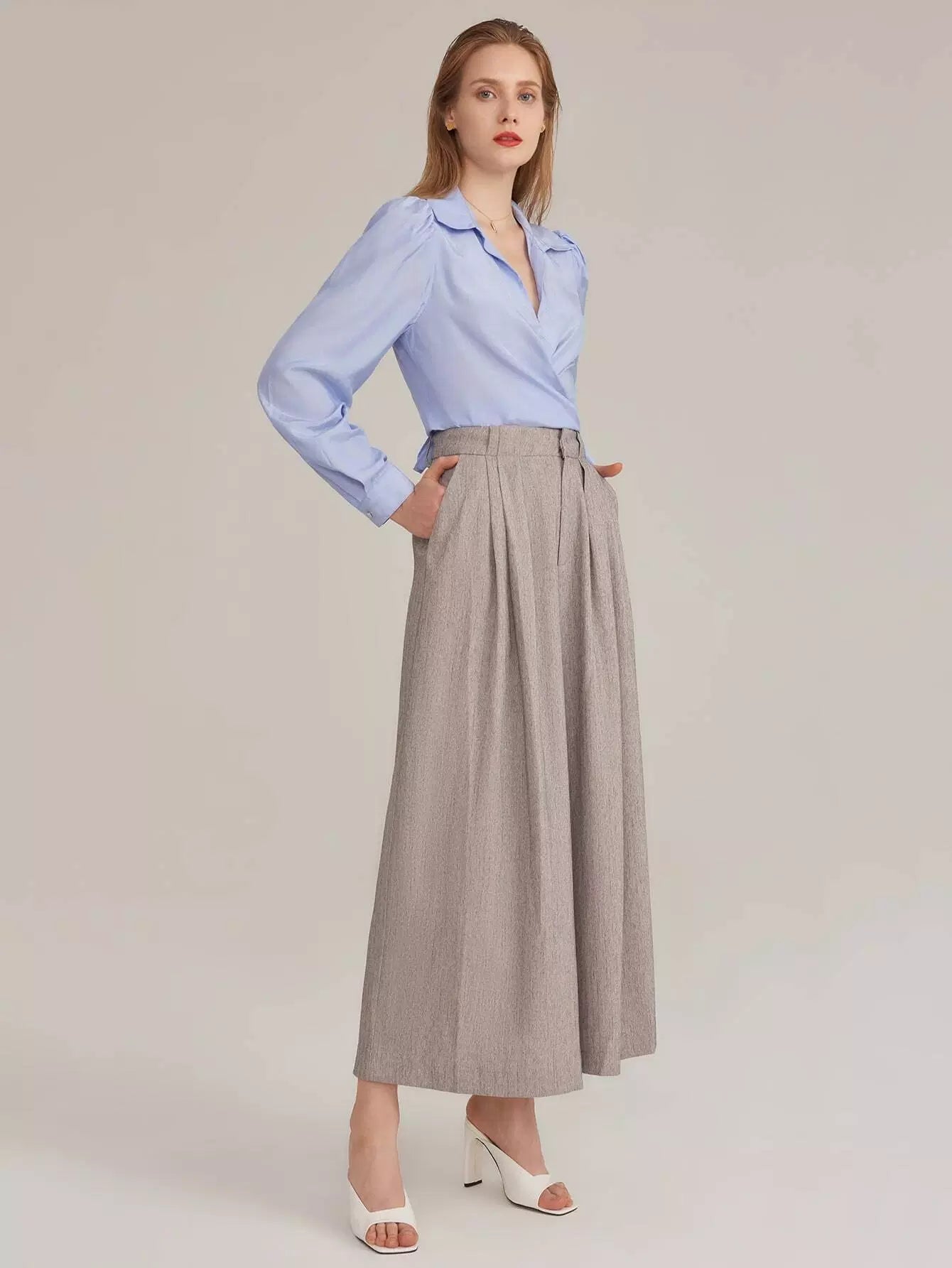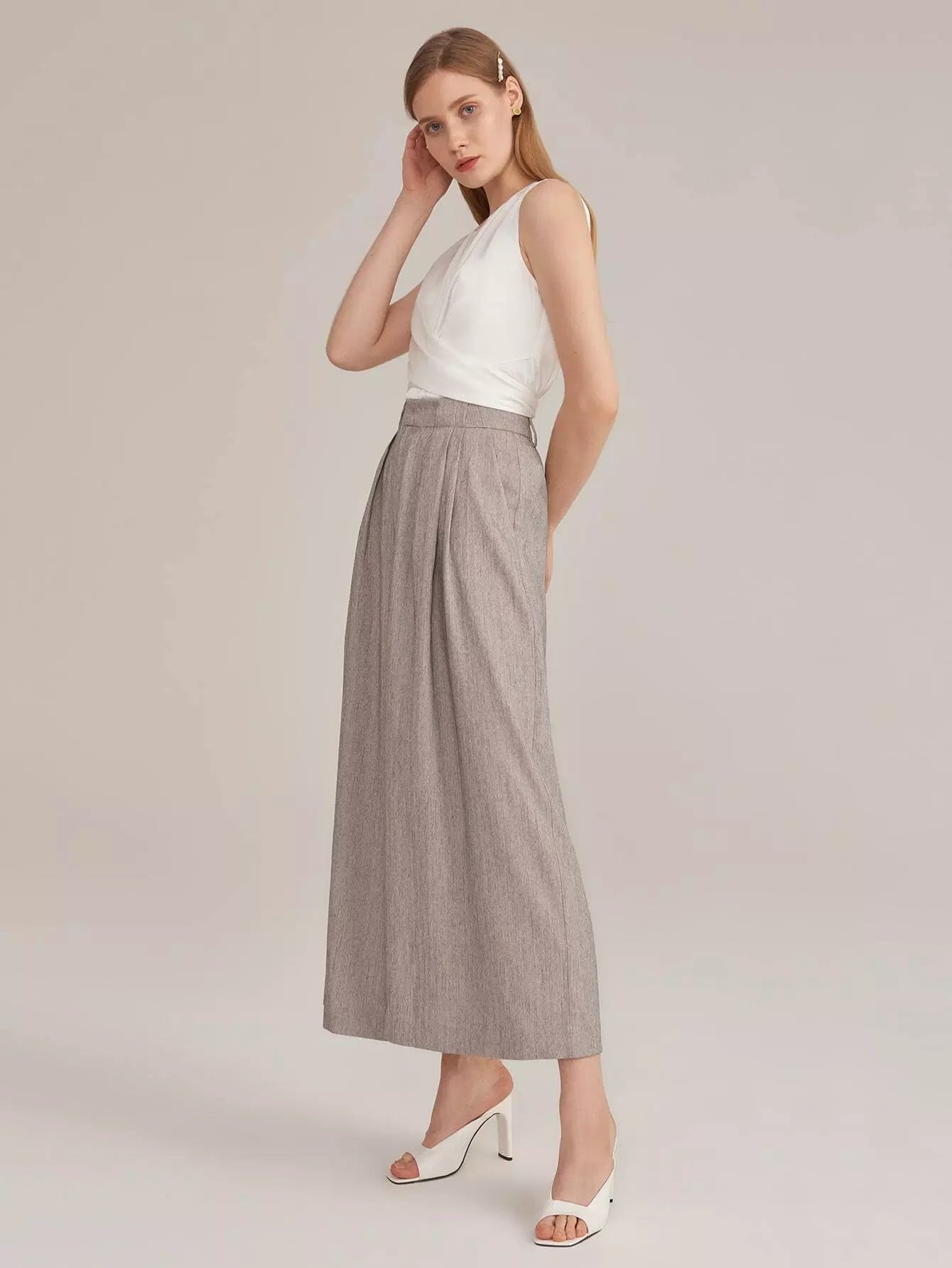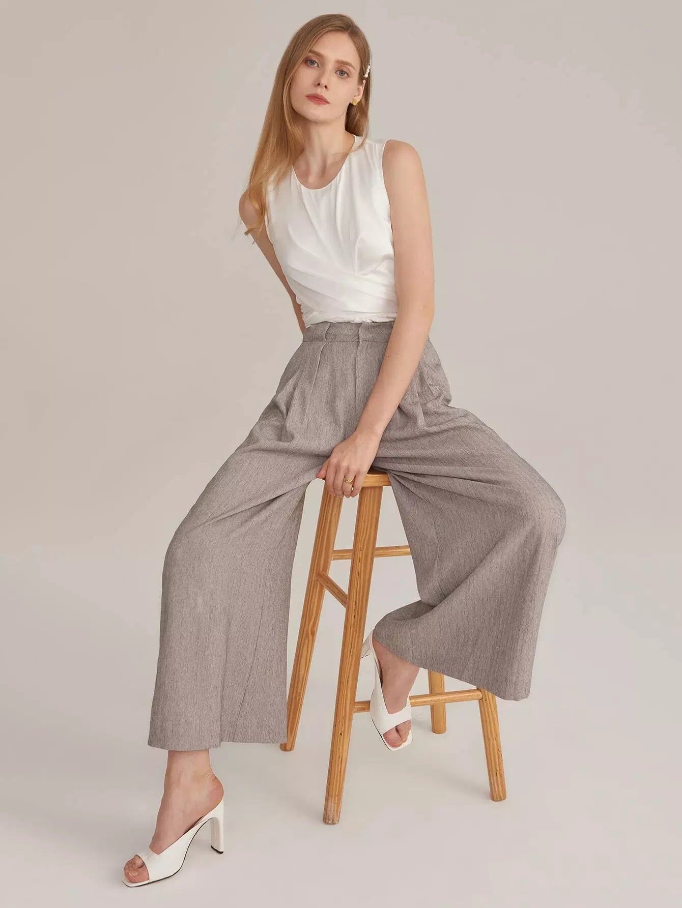 بنطلون رايون مطوي من الحرير الصناعي مطوي بطيات بالازو
