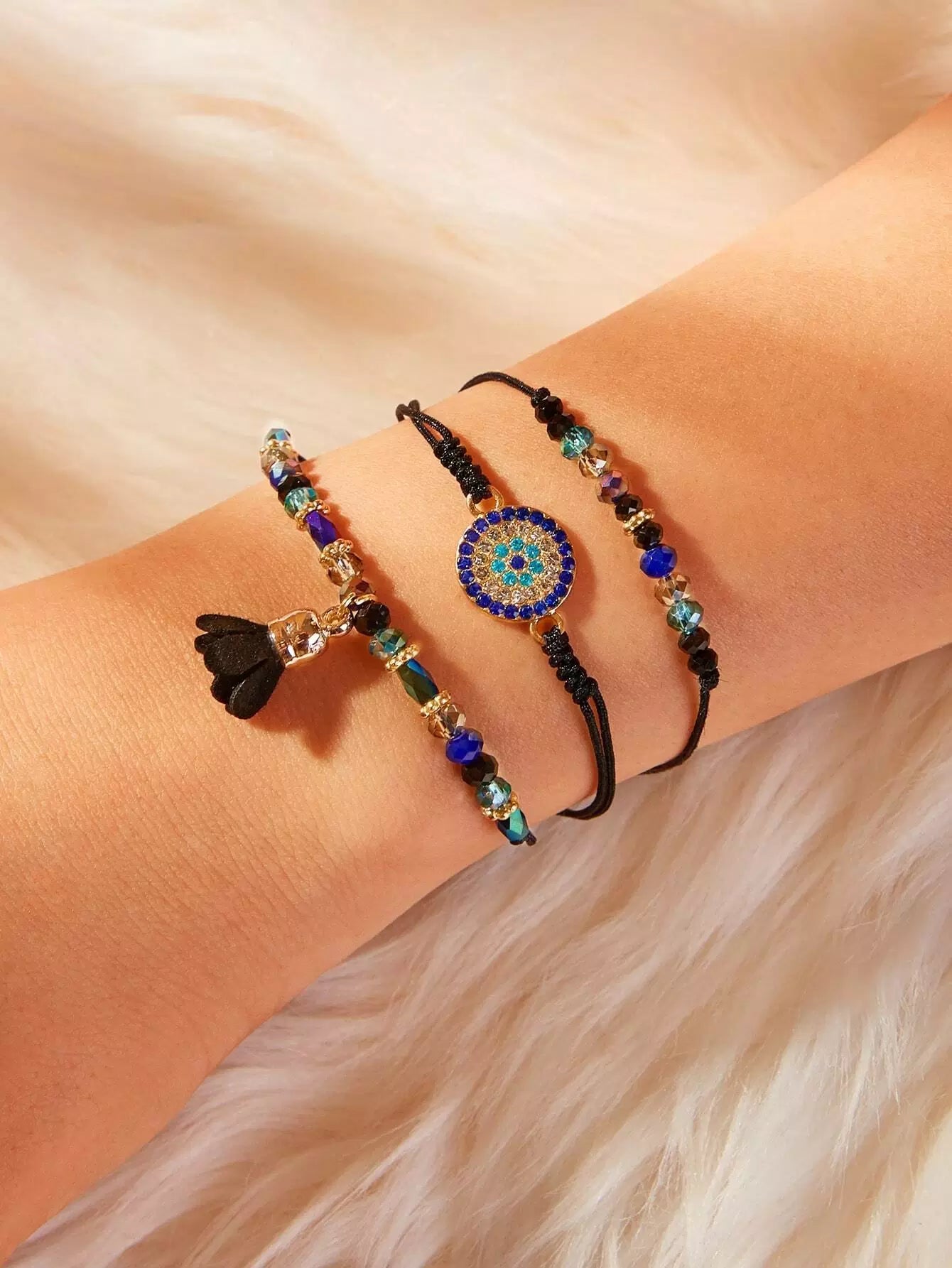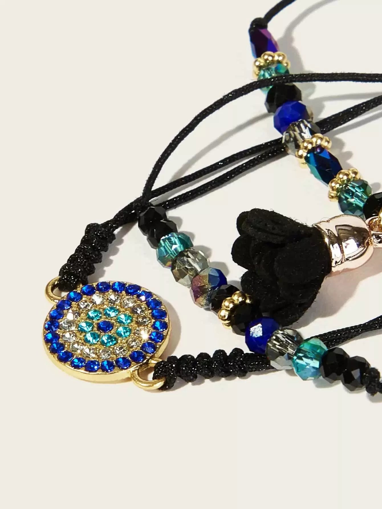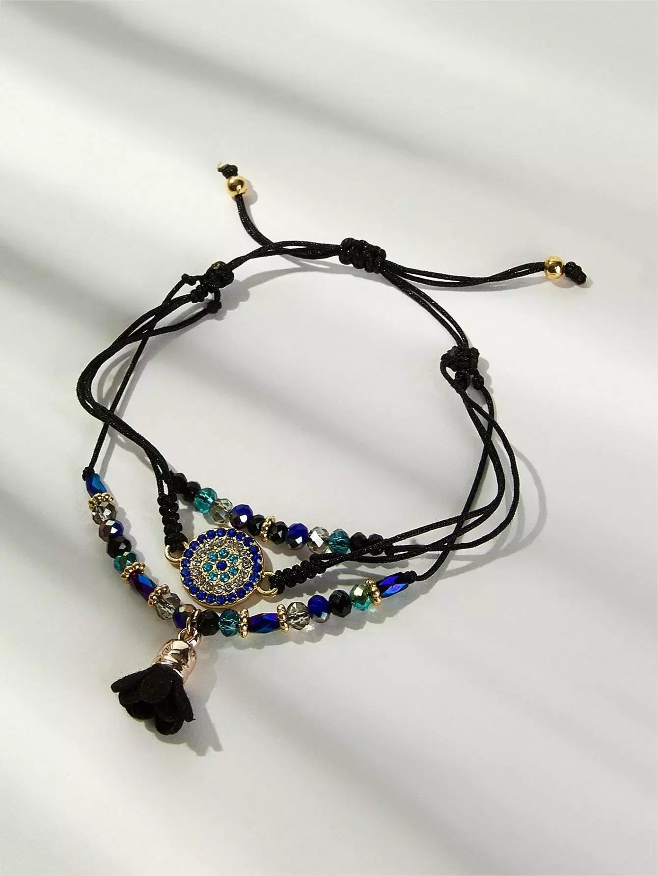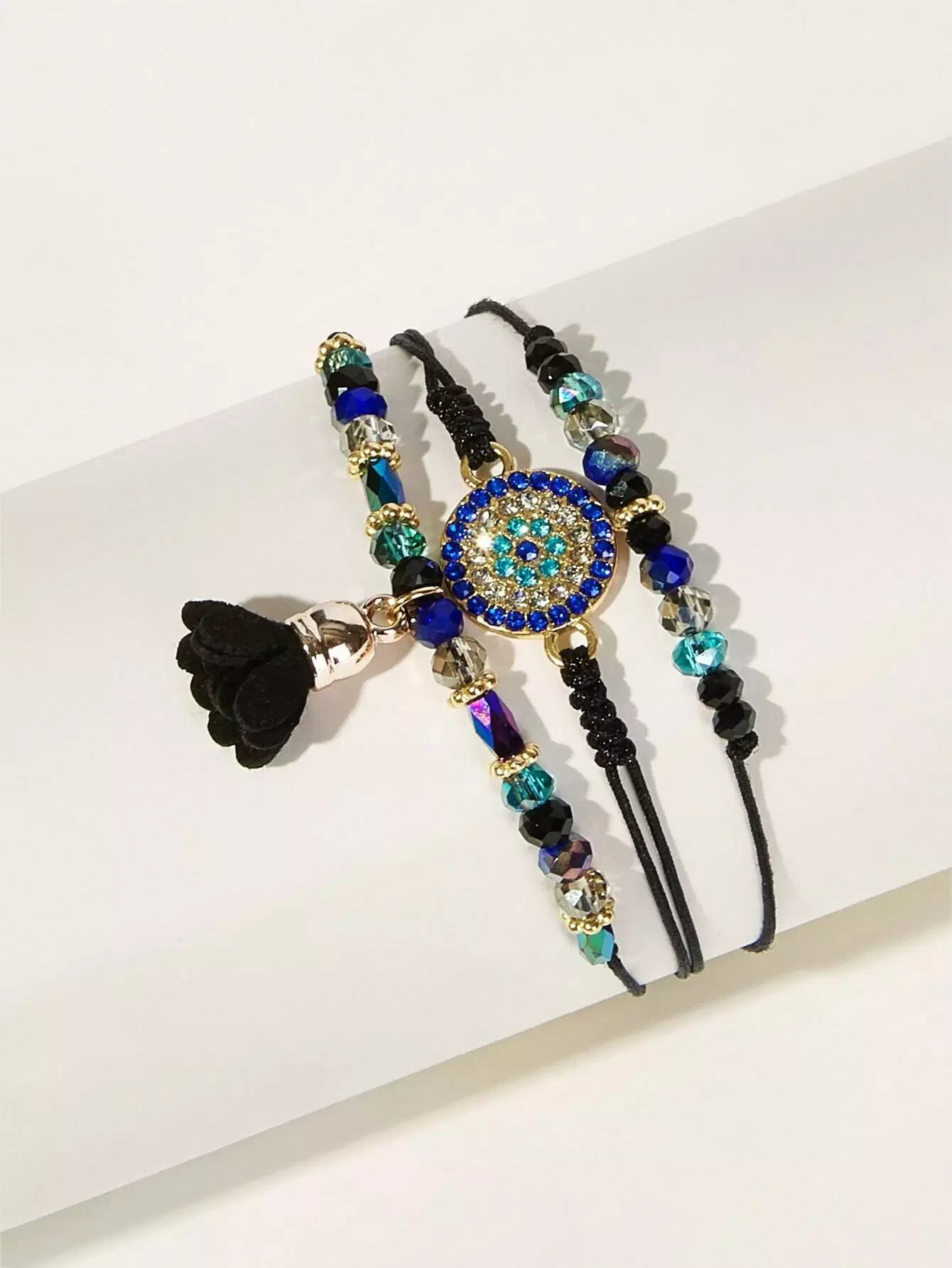 سوار متعدد الطبقات مزين بأحجار الراين والخرز، قطعة واحدة