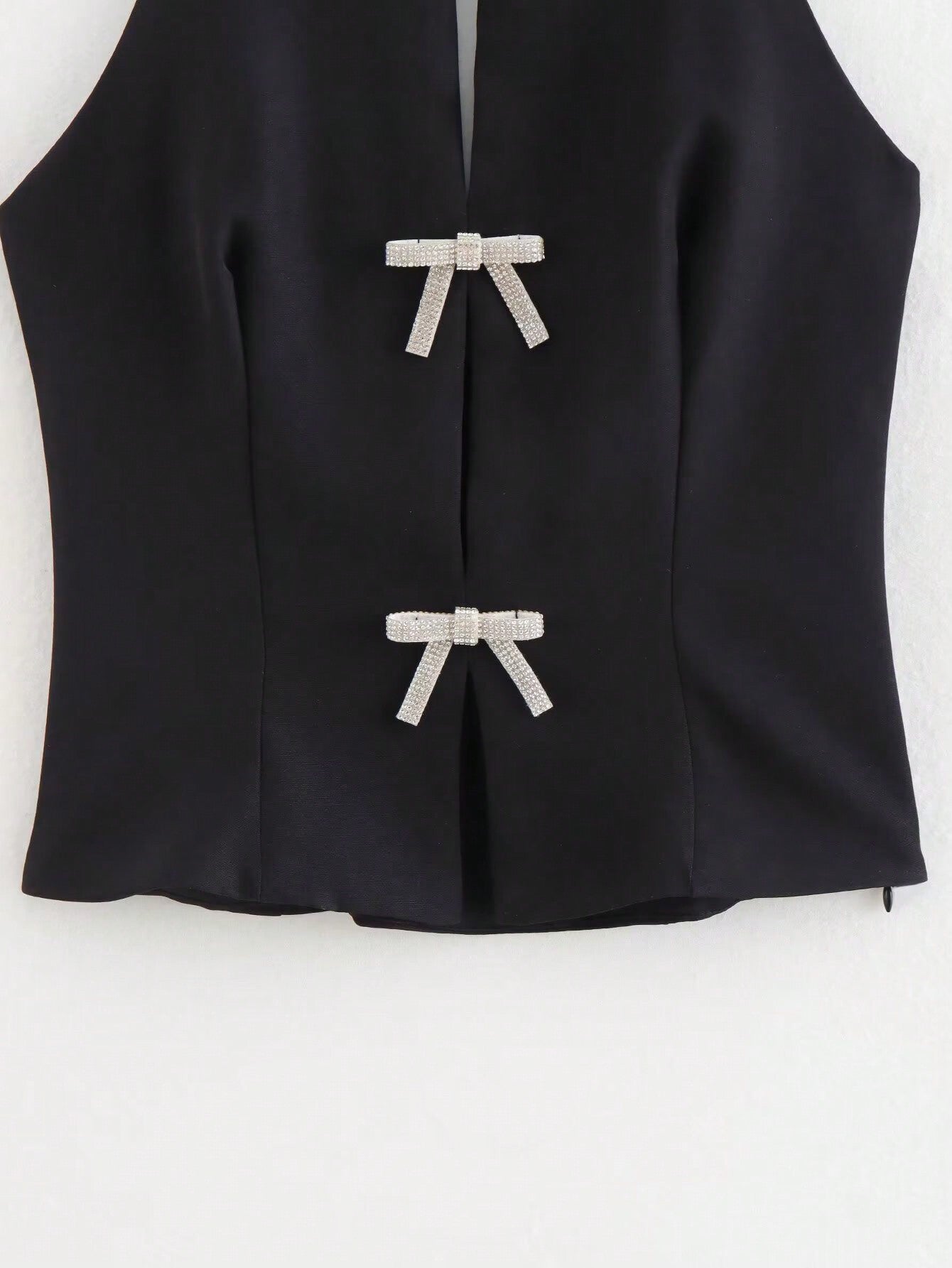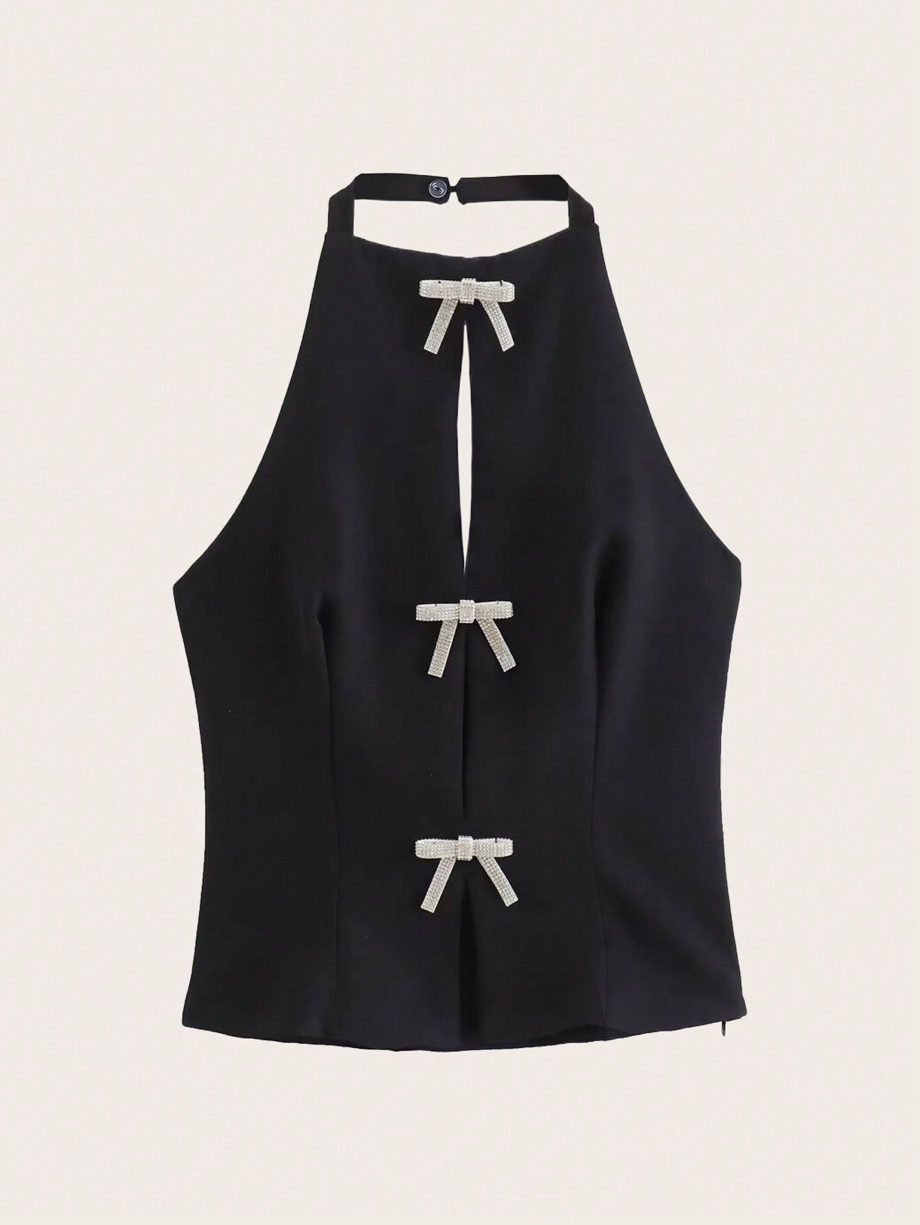 بلوزة هالتر أمامية مرصعة بفيونكة مرصعة بأحجار الراين