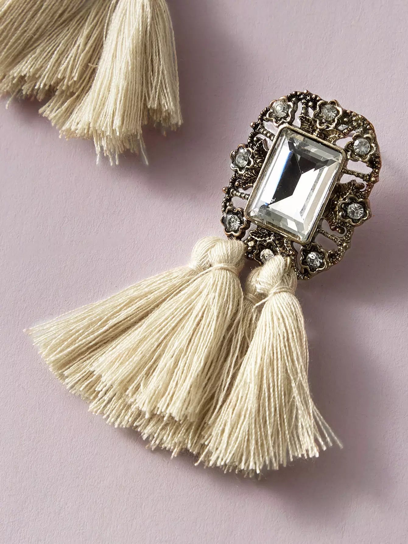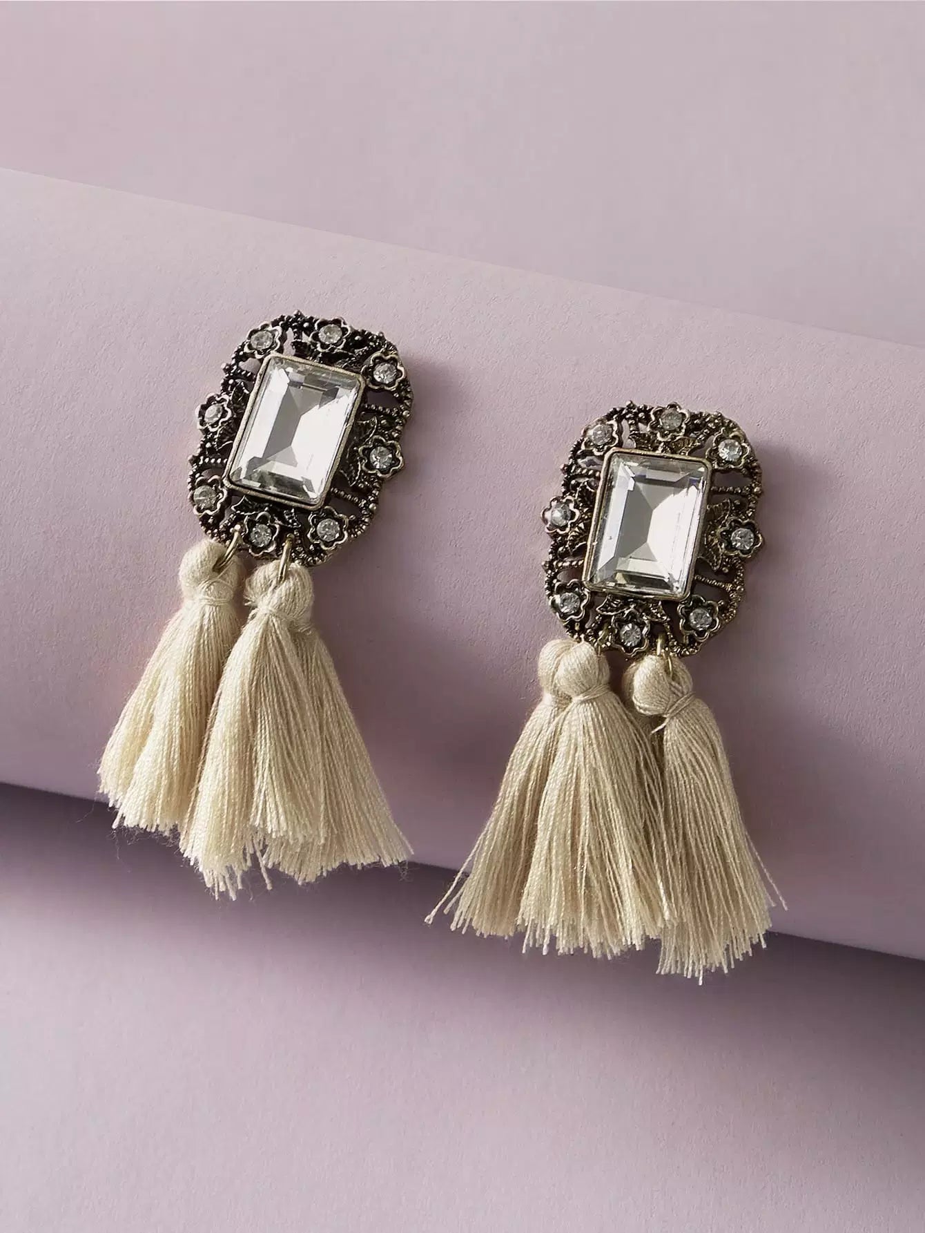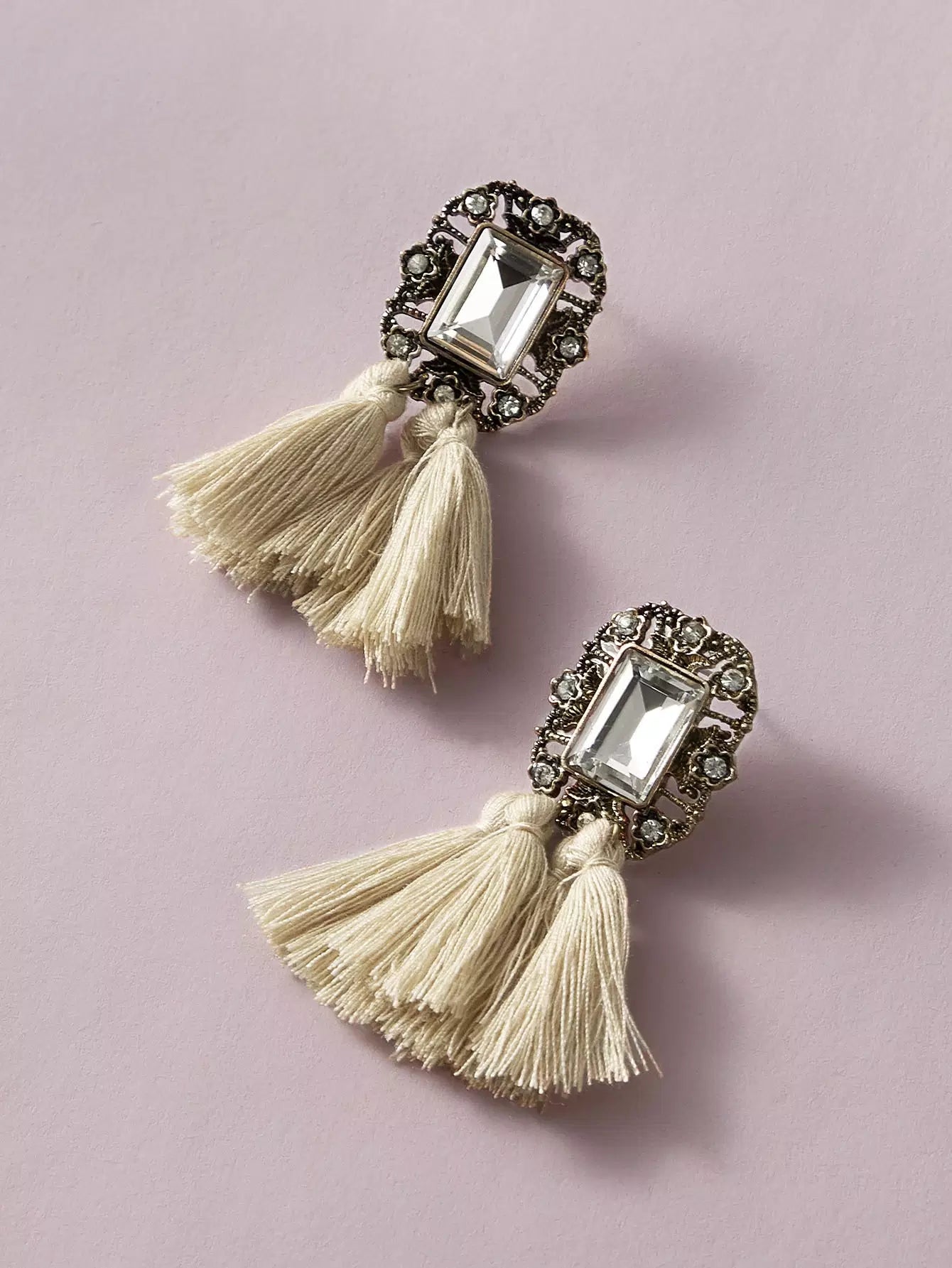 أقراط متدلية مزينة بأحجار الراين والشرابة