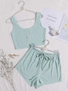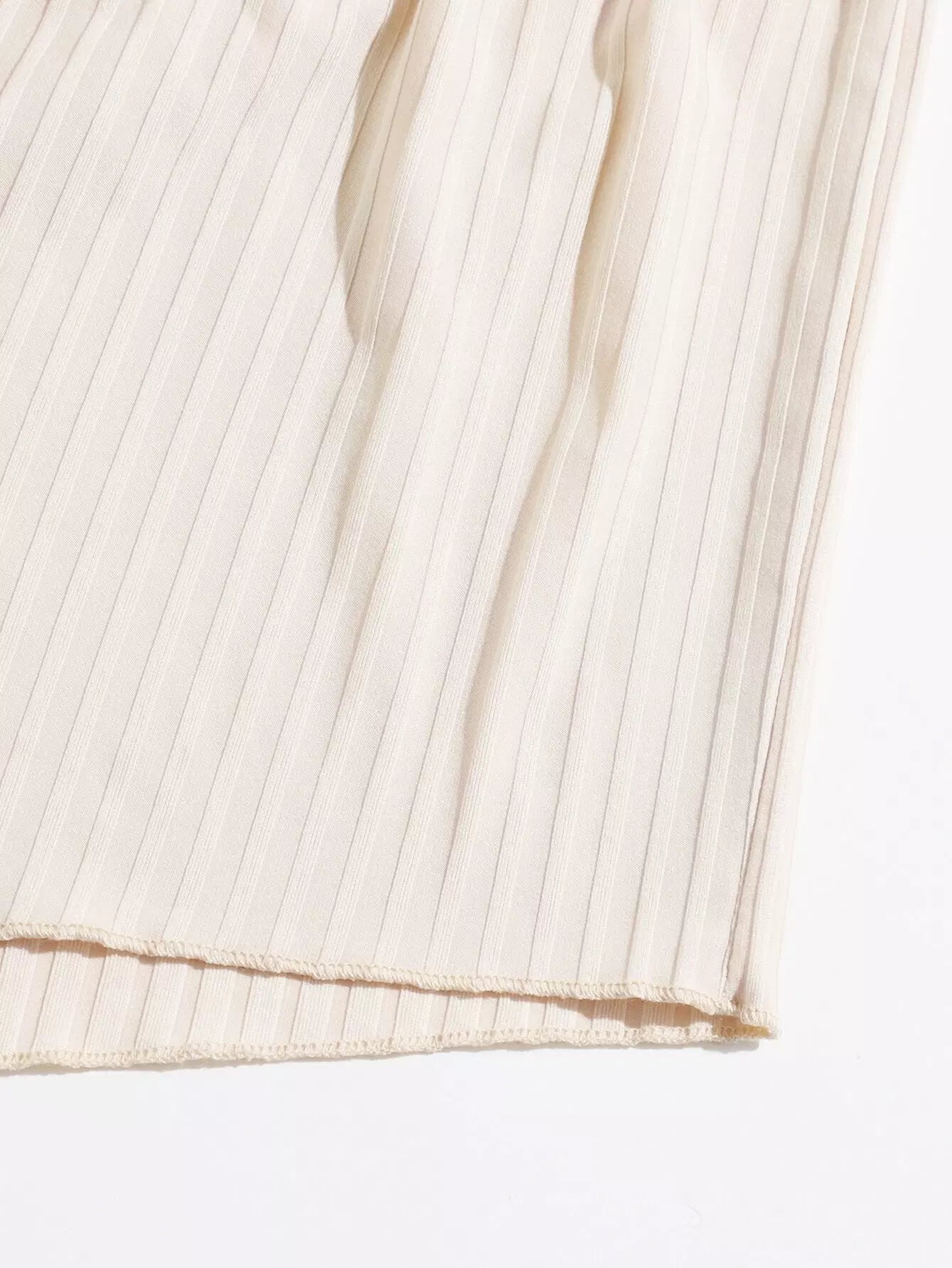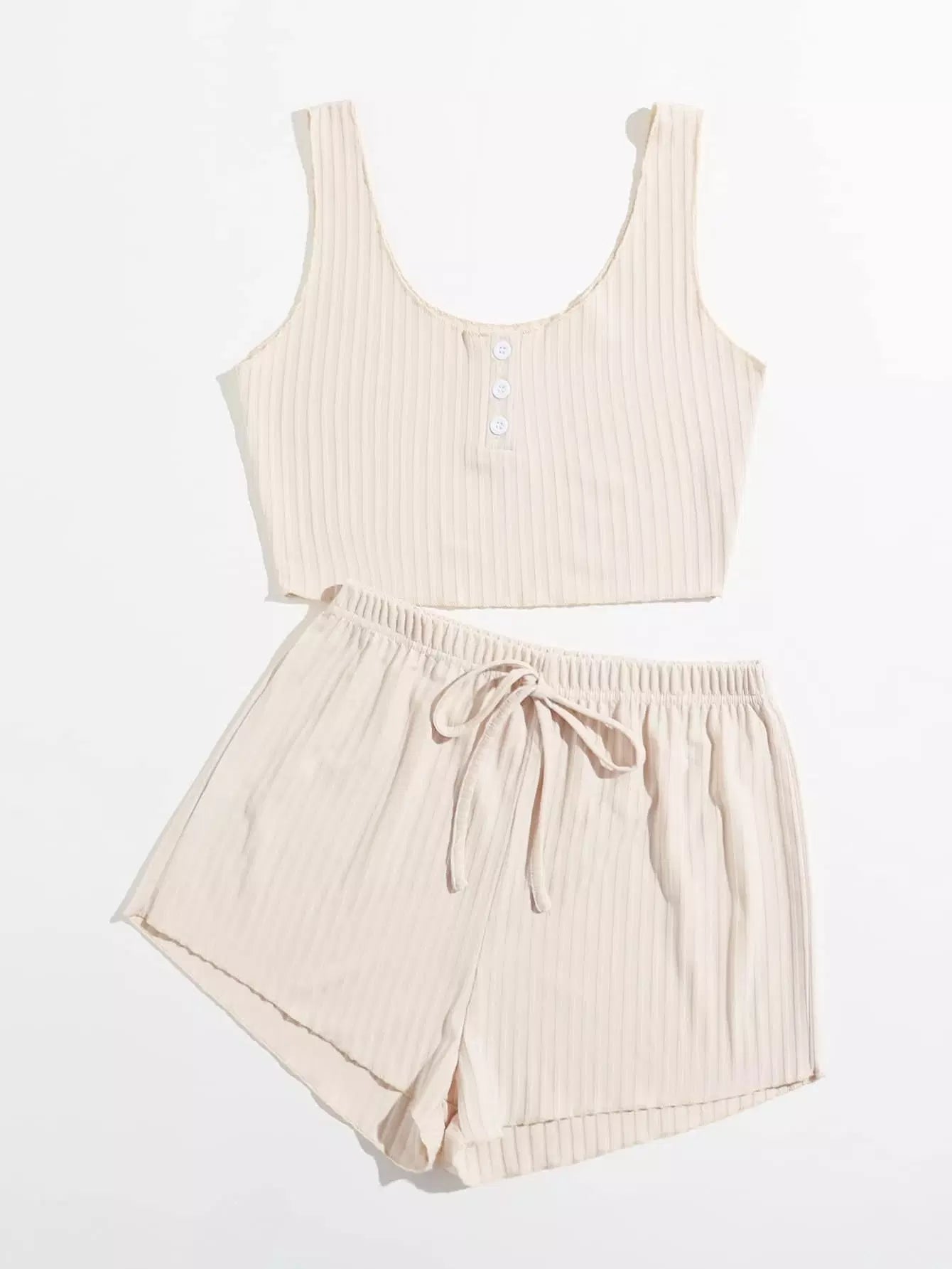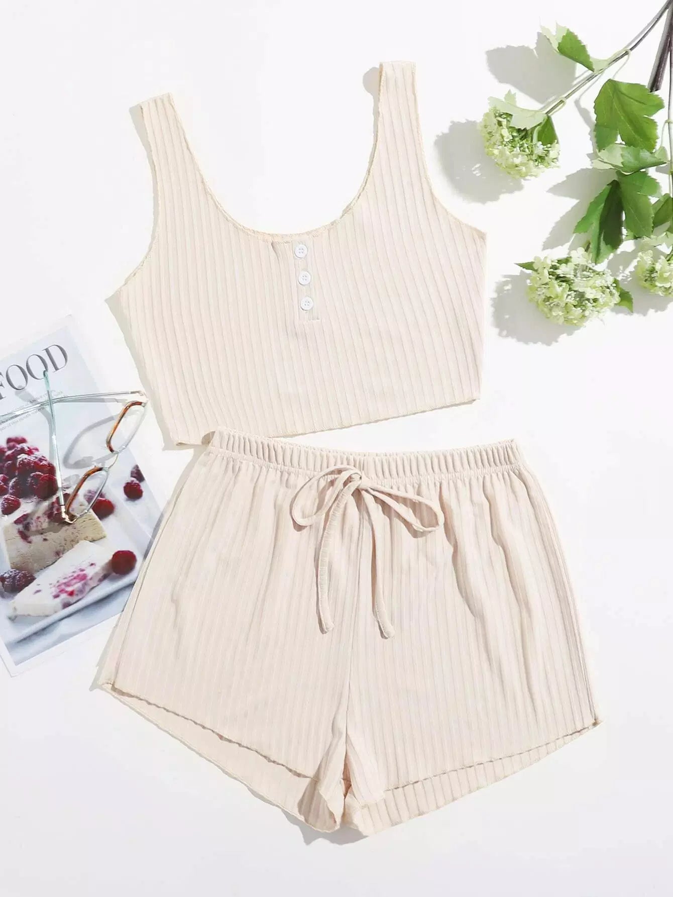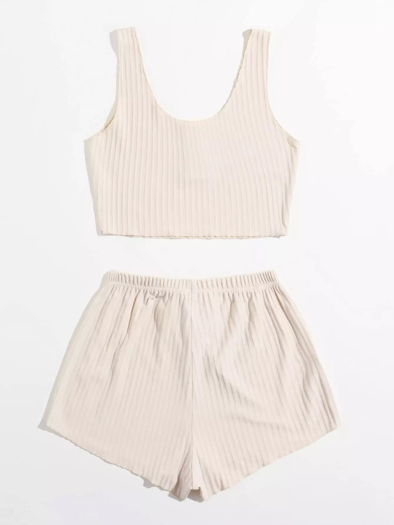 طقم كنزة بدون أكمام وشورت قصير محبوك على شكل ضلع محبوك طقم صالة