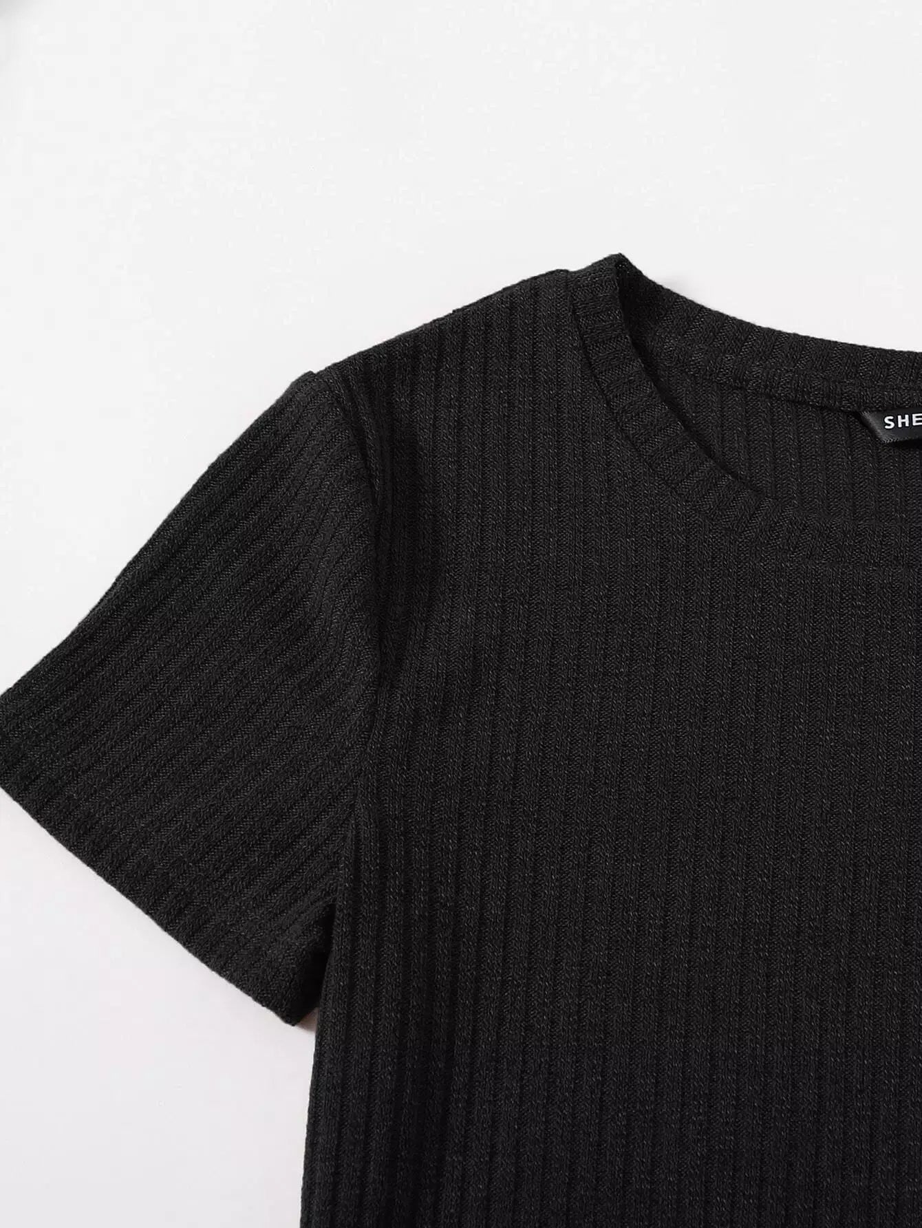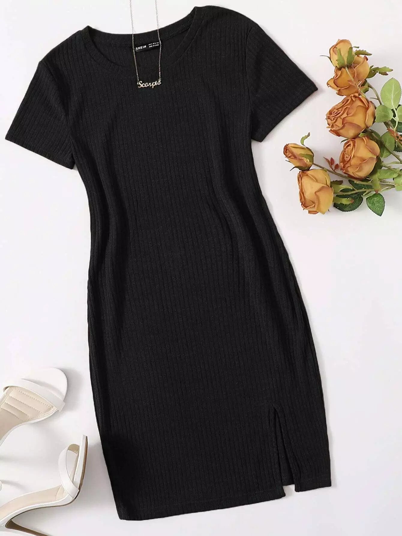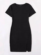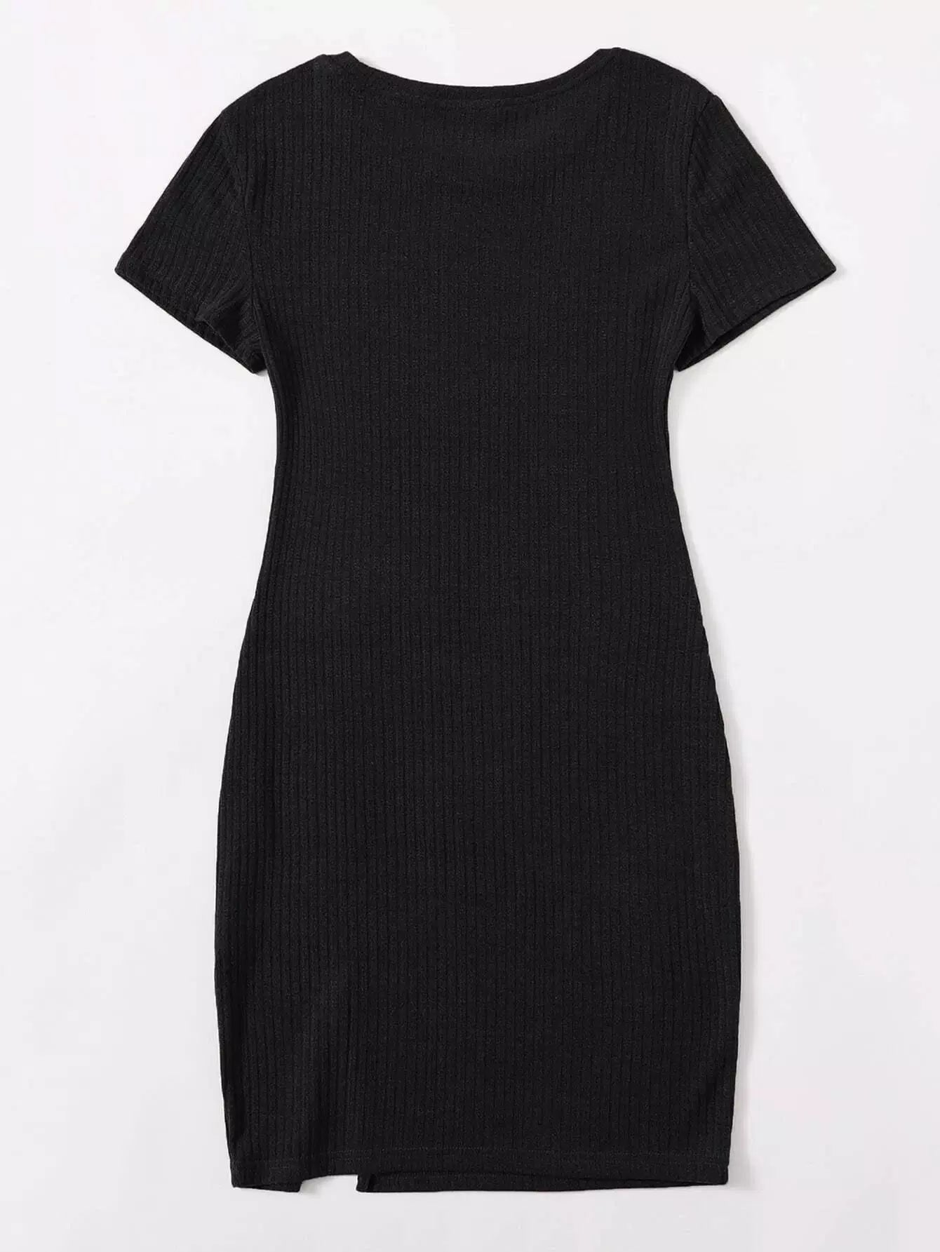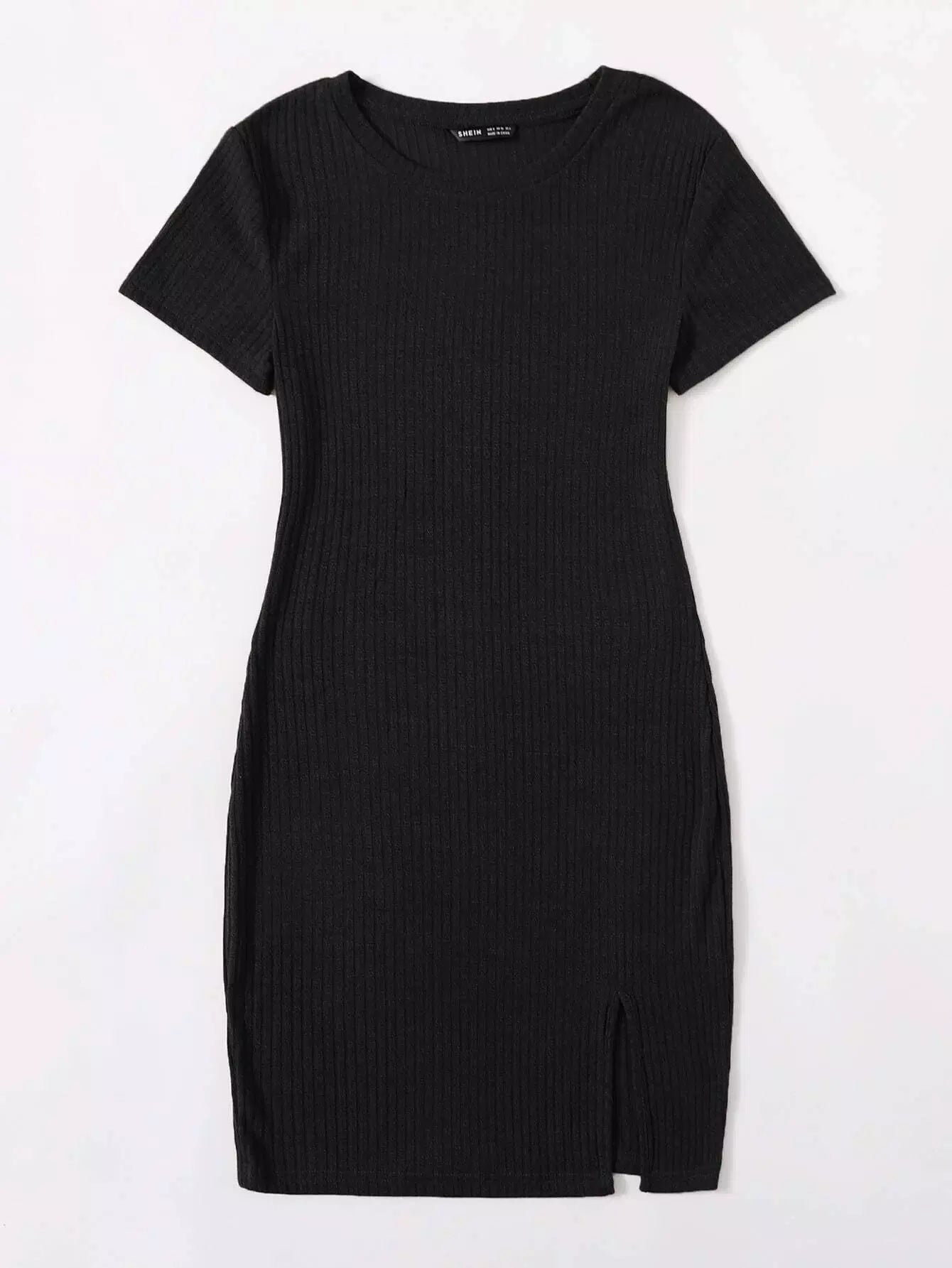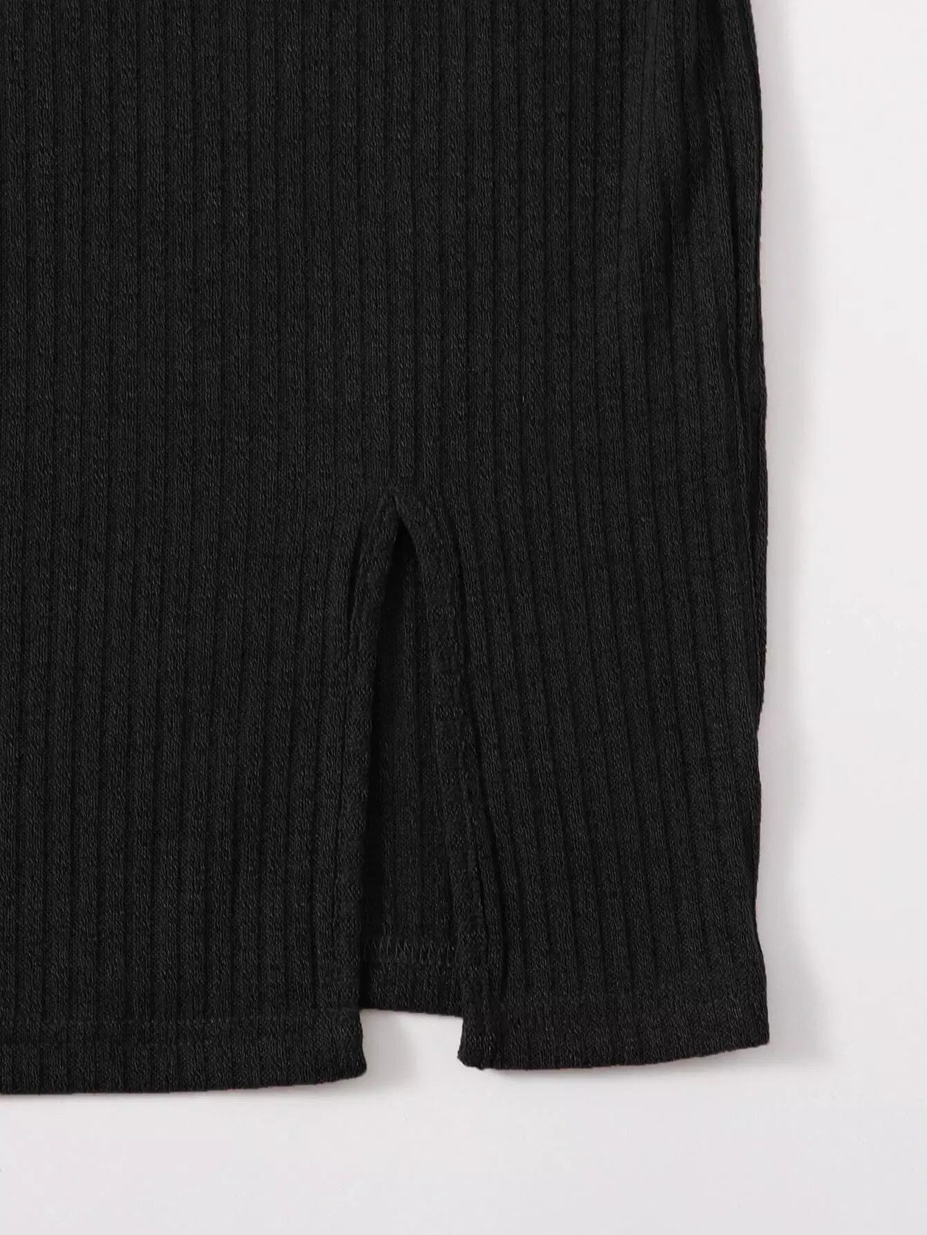 فستان بحياكة ضلع محبوك بحافة منقسمة
