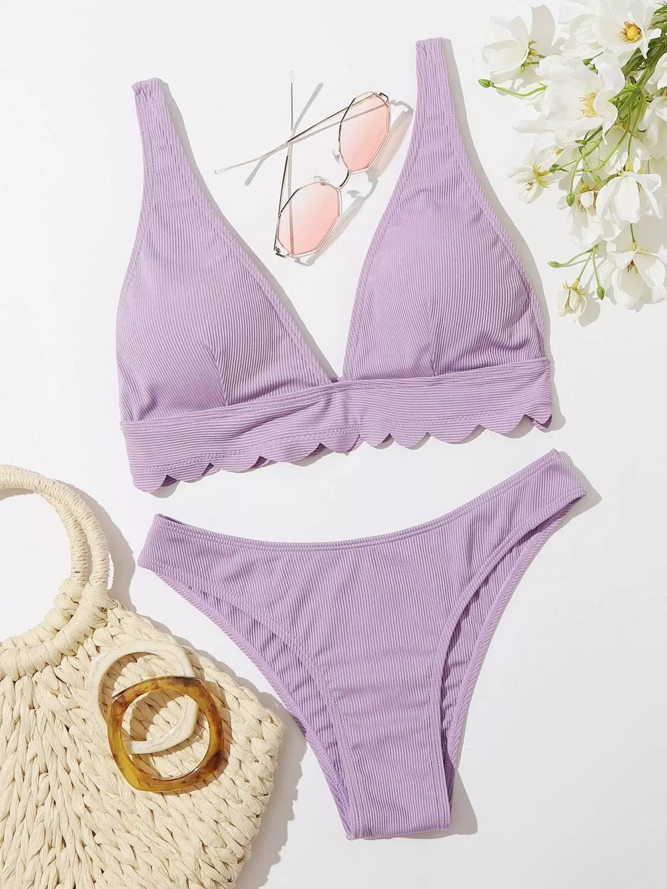 بدلة سباحة بيكيني بحافة ضلع صدفي