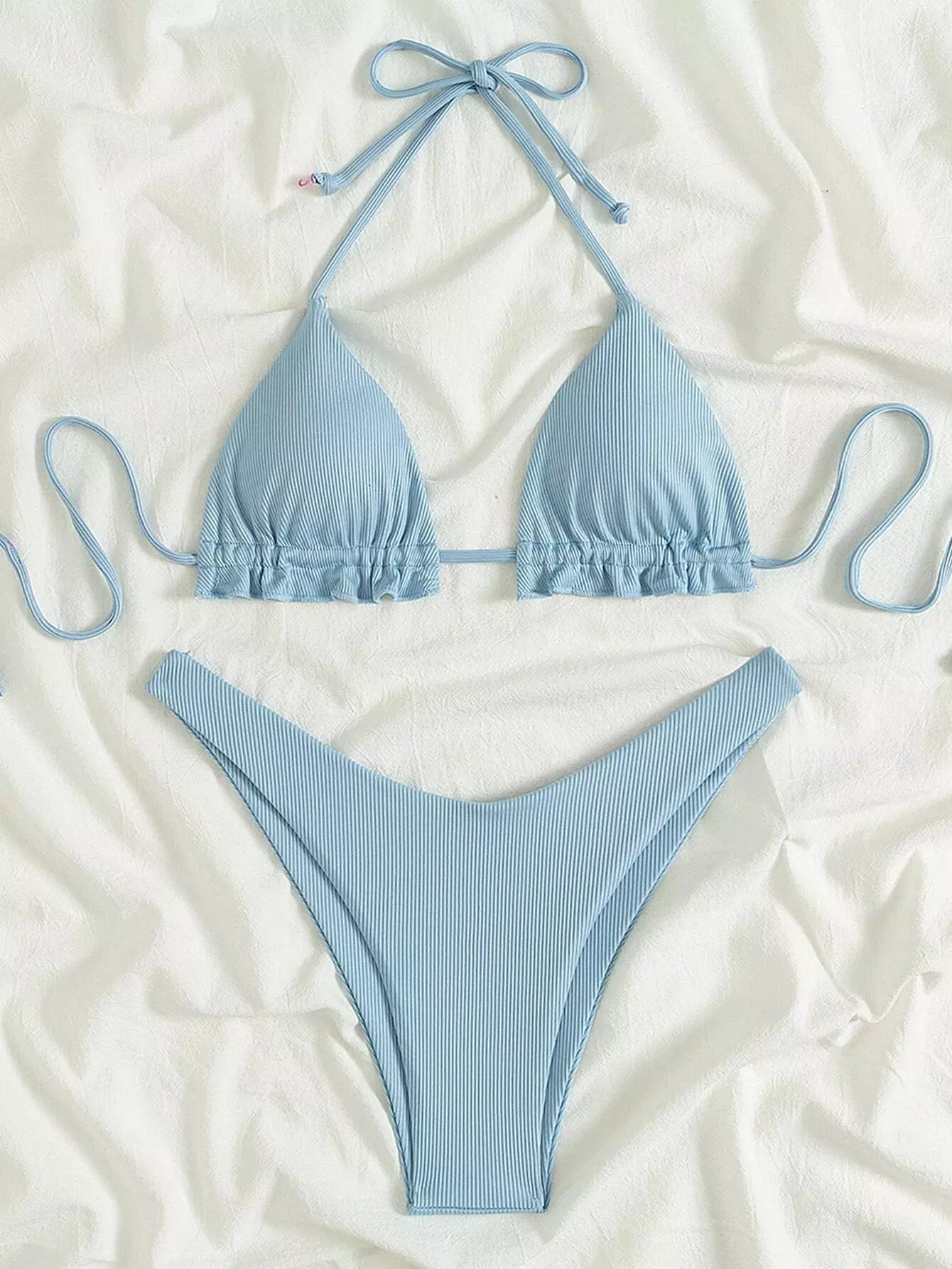 بدلة سباحة بيكيني بيكيني مثلث بحافة كشكش مضلعة