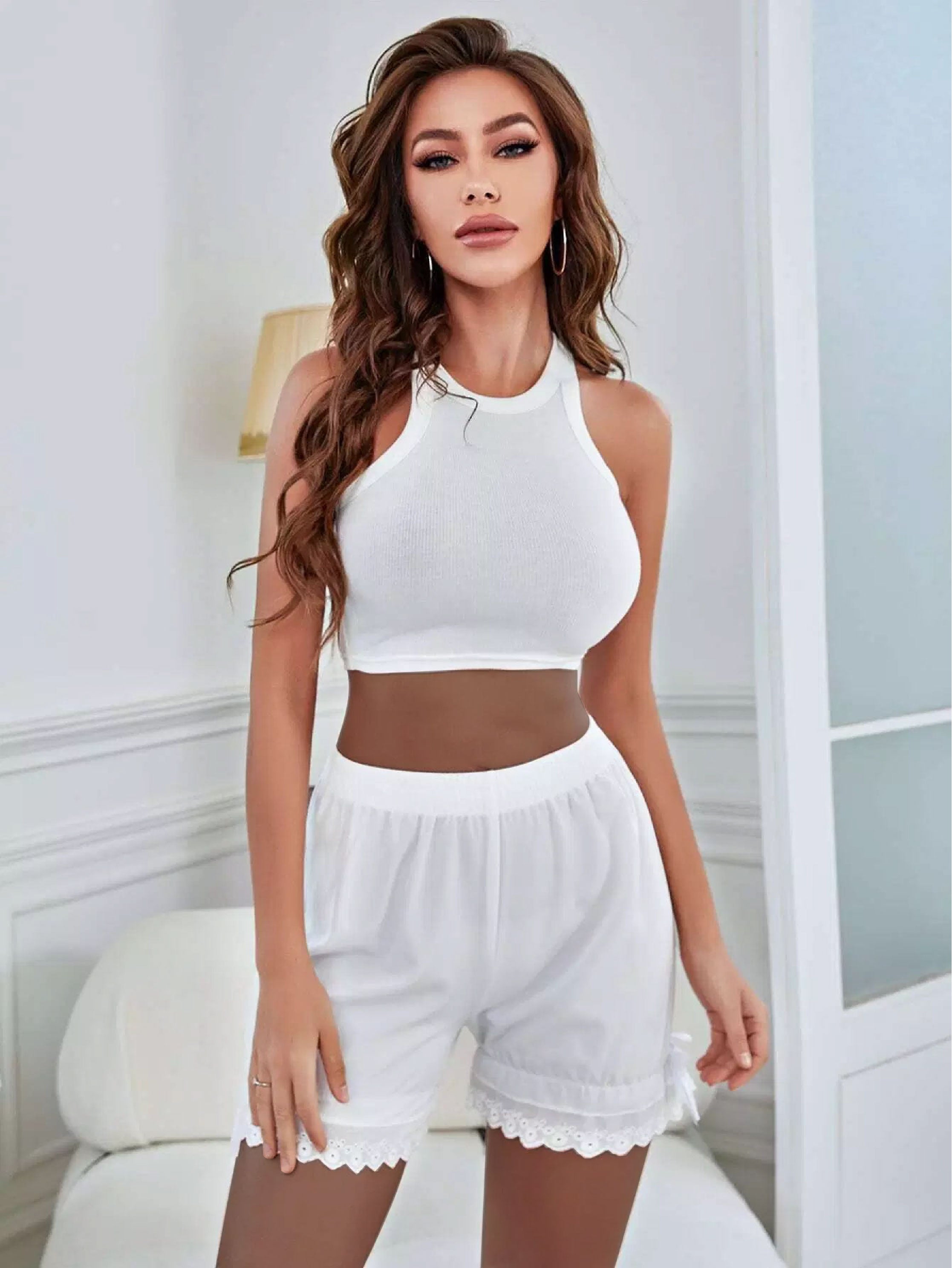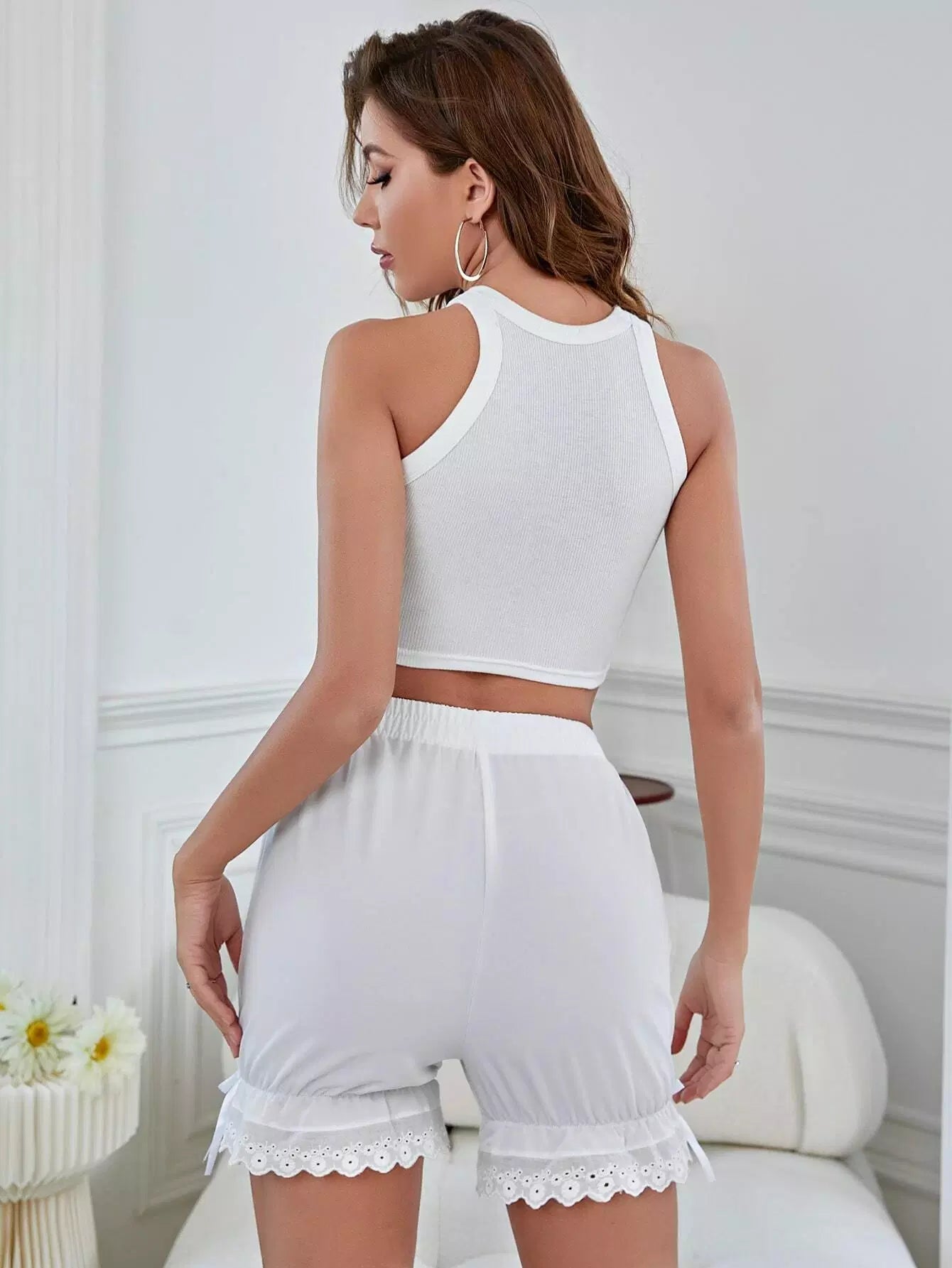طقم استرخاء جانبي مزين بتطريزات مضلعة على شكل عقدة مضلعة